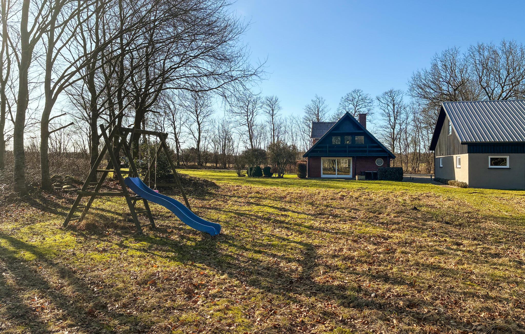 I kan også se frem til dejlige timer udendørs, hvor der er god plads til leg på naturgrunden. Børnene kan gynge, rutsje og udforske haven, mens I hyggesnakker eller sidder med jeres feriebøger. Om aftenen kan I tænde op i grillen og afslutte dagen med en hyggelig middag under åben himmel.