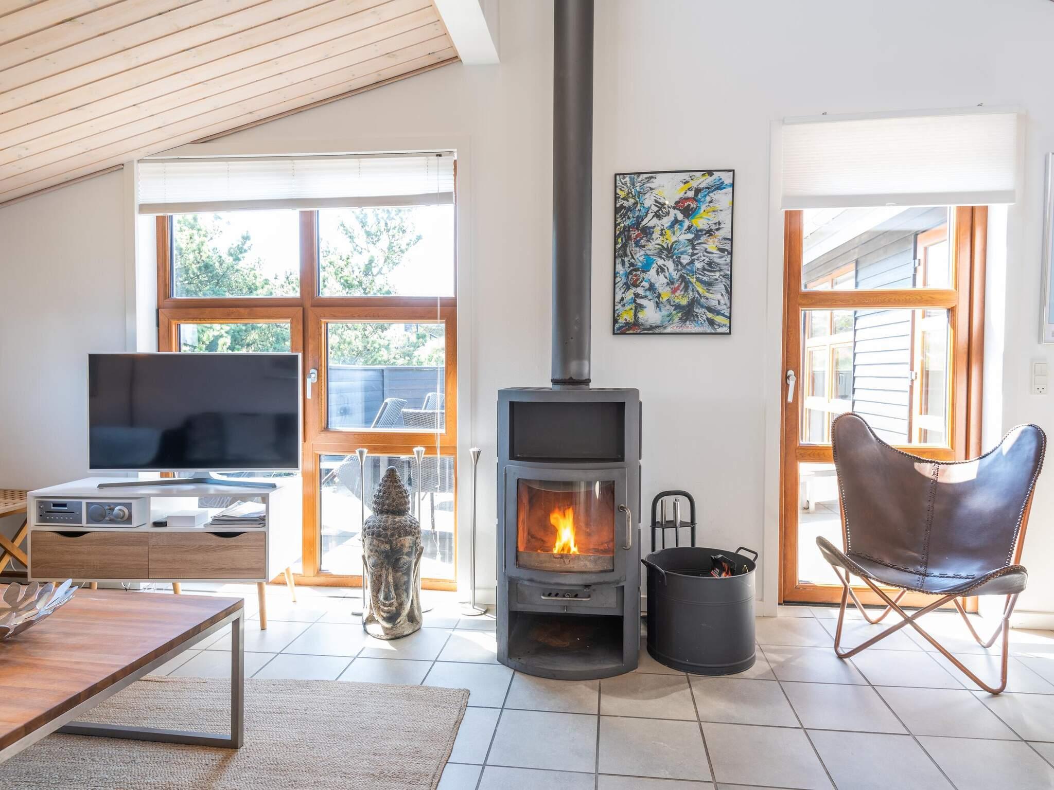 1 Opholdsstue: Brændeovn, radio, cd-afspiller, dvd-afspiller, kabel-tv, høj stol
