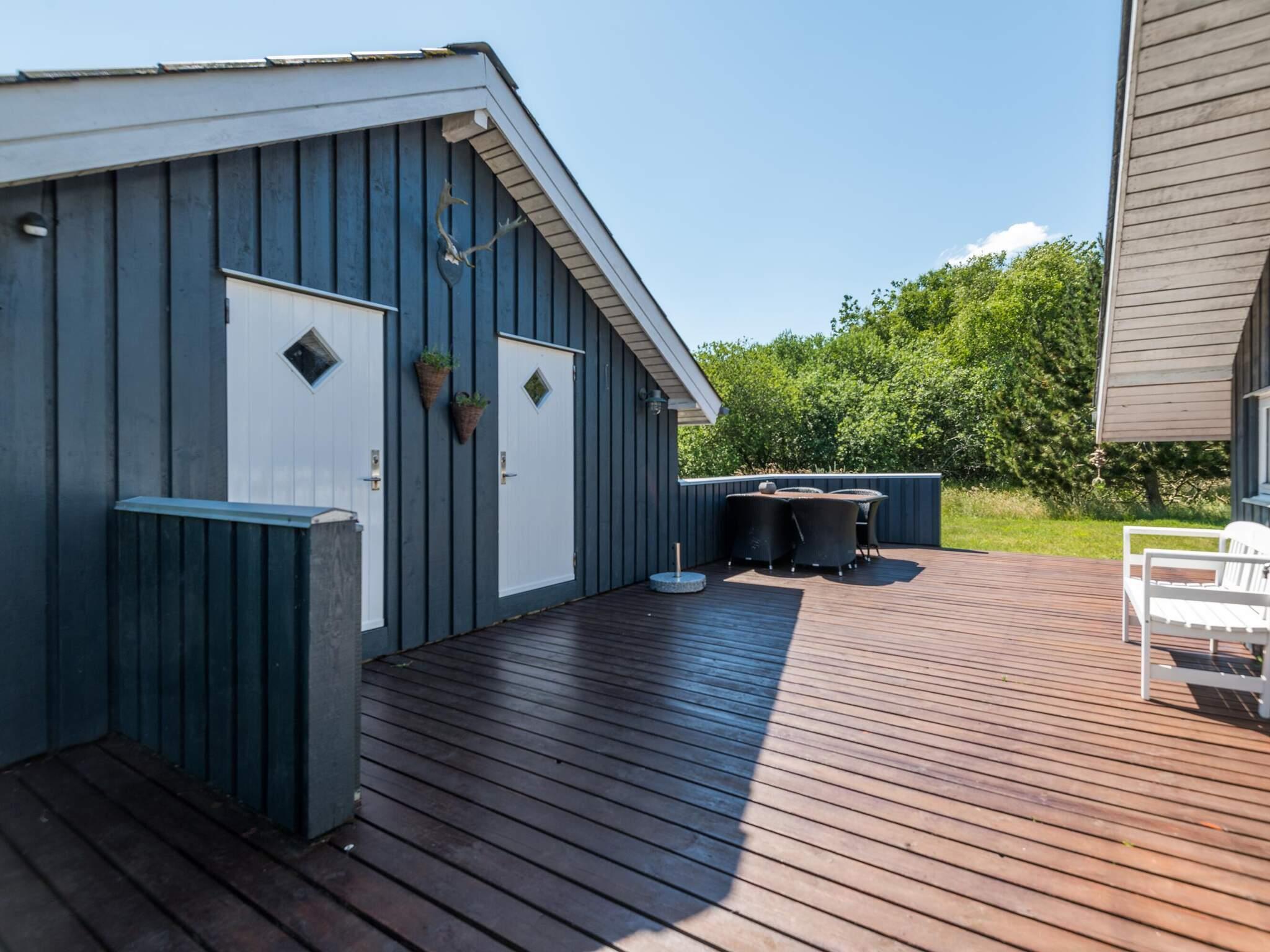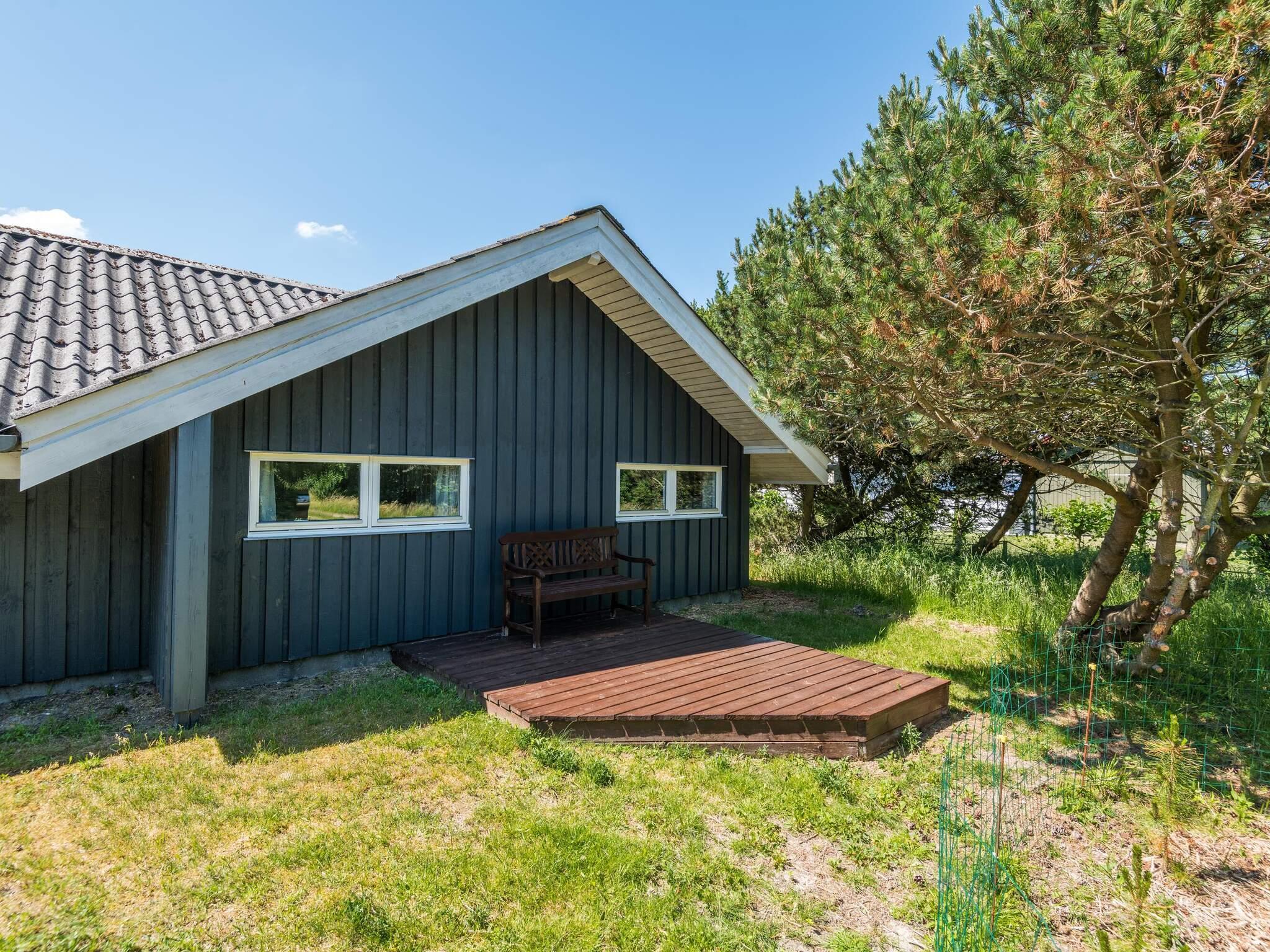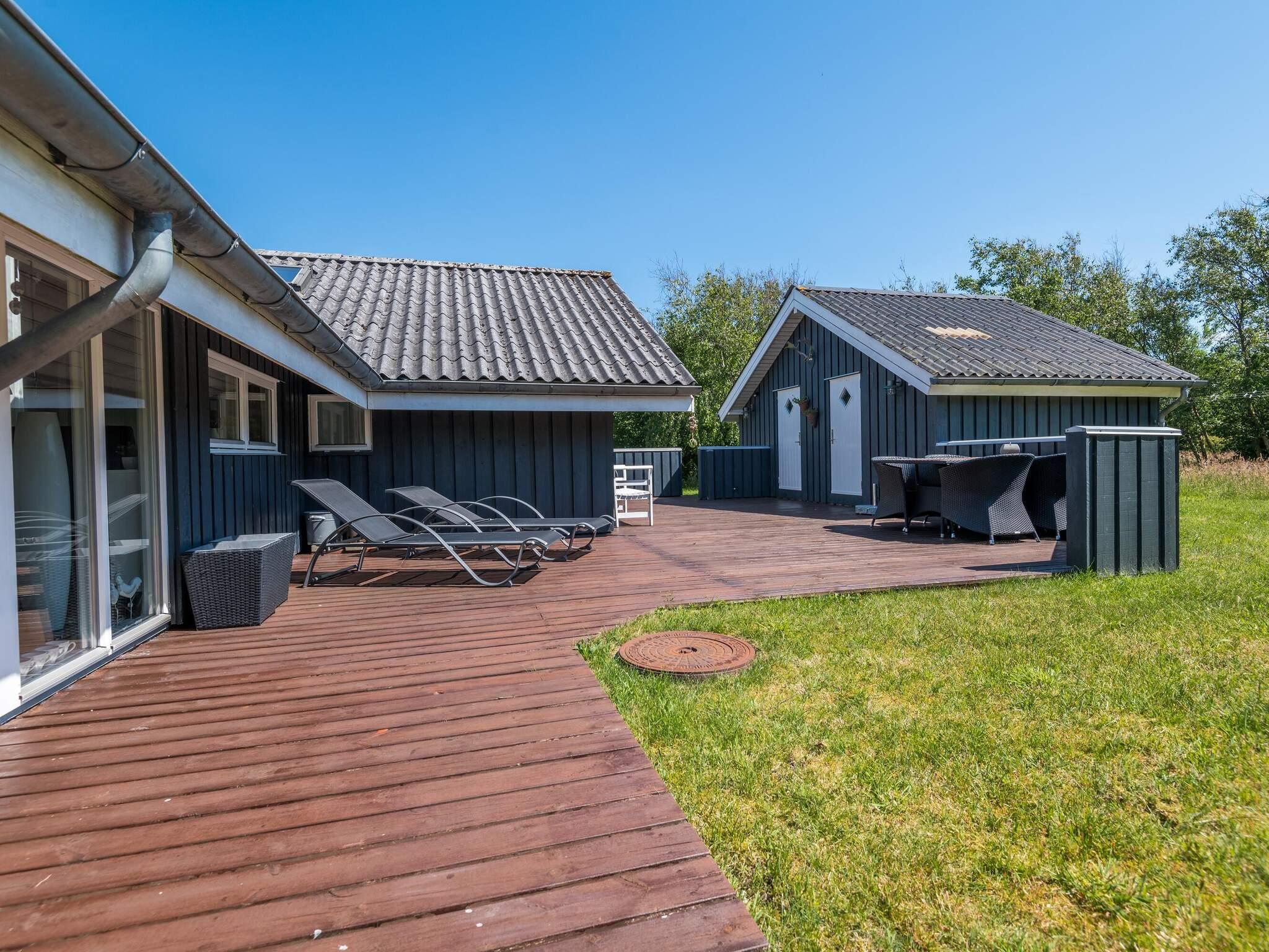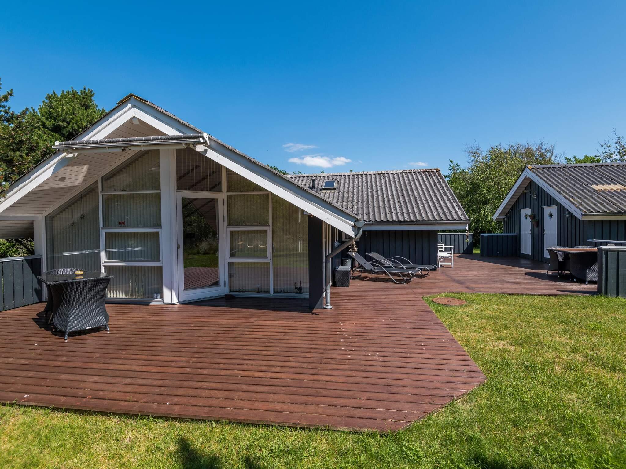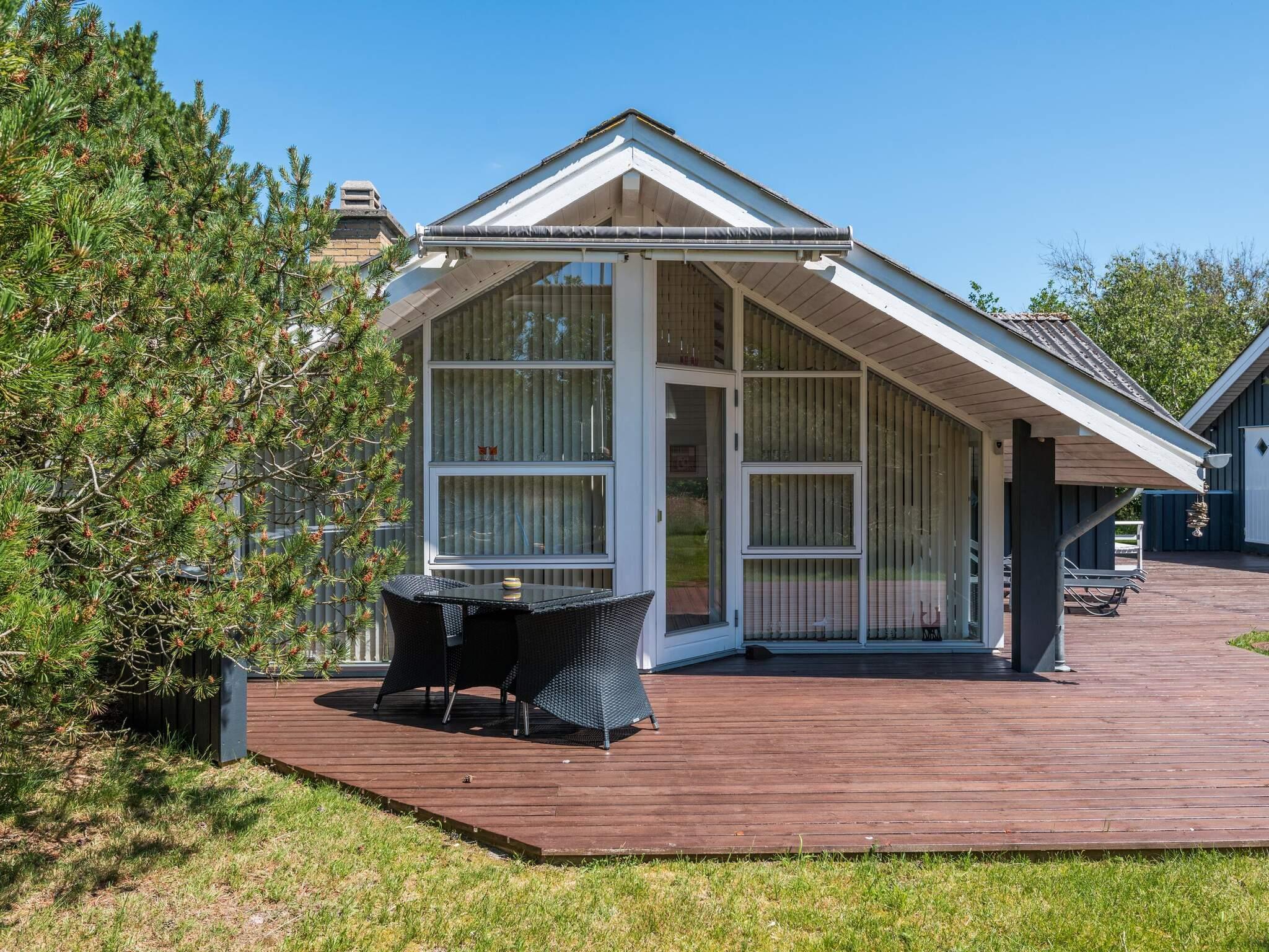 Hyggeligt sommerhus i Rindby på Fanø med ugenert naturgrund, brændeovn og overdækket terrasse, perfekt til afslapning og leg.
