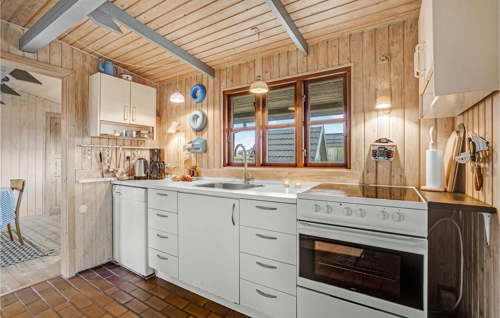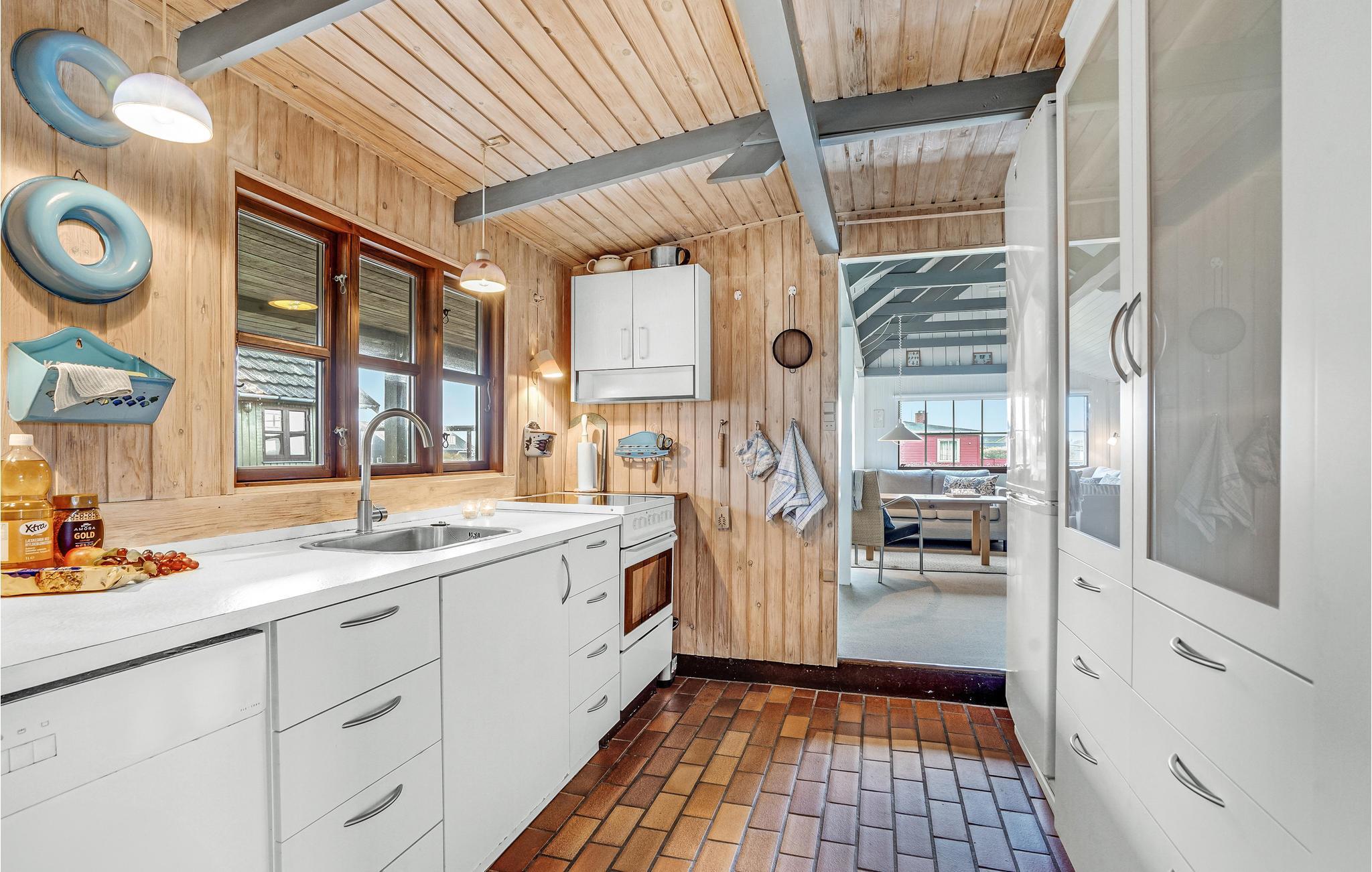 Huset præsenterer sig åbent og hyggeligt og er klassisk indrettet. Her kan I nyde de charmerende rammer og det behagelige lysindfald fra sprossevinduerne, mens I får varmen foran brændeovnen efter en lang gåtur. Der er god plads til madlavningsprojekterne i køkkenet, og samtidig kan børnene hygge sig med brætspil ved spisebordet.