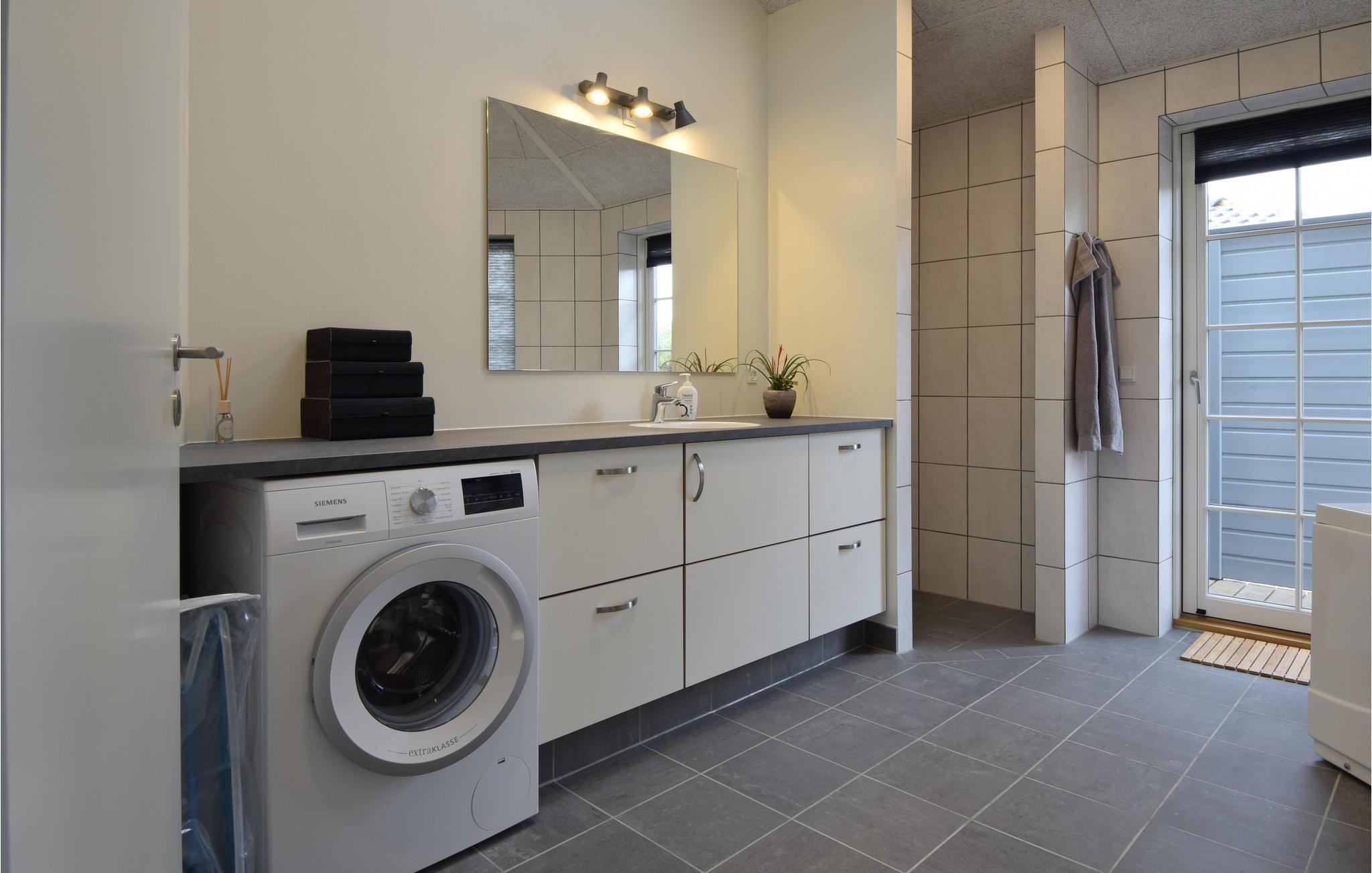 Huset har et meget rummeligt stue/køkkenområde med masser af lys, der strømmer ind gennem de store vinduespartier, samt et godt ovenlys i det spektakulære loft. De 3 flotte soveværelser og alkoven (med forhæng) giver god plads til 8 personer. De 2 dejlige badeværelser har også hver deres charme med skæve vinkler, og fra det ene er der direkte udgang til en udendørs bruser med både varmt og koldt vand, så I efter en tur ved stranden, kan I tage bad udendørs men stadig afskærmet (bruseren er brugbar i sommerhalvåret).