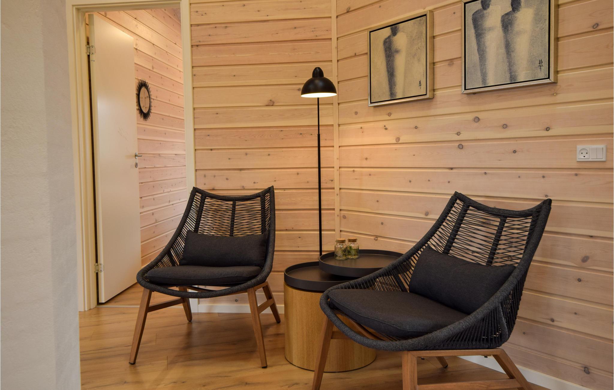 Husets møblering lever helt op til den ekstraordinære arkitektur, hvor der også her er kælet for alle deltajer, så I har et yderst moderne sommerhus, der kombineres med masser af hygge og charme. På husets dejlige terrasse er der udsigt til de omkringliggende klitter, hvor dyrelivet udfolder sig i stor stil. I har god mulighed for at se både rådyr og kaniner rundt om huset. Fanøs flotte, hvide sandstrand ligger i gåafstand fra huset, så om I har lyst til at vandre eller bade ved stranden, så kan den nås indenfor få minutter.