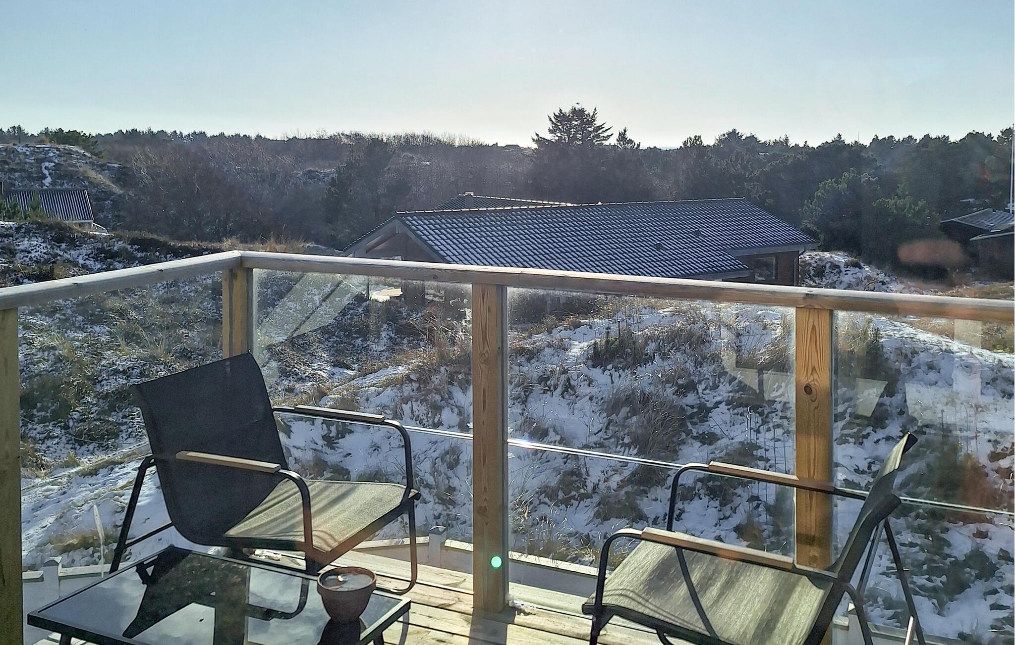 Nyd jeres ferie i dette komfortable feriehus med swimmingpool, spabad og sauna. Her kan I føle jer godt tilpas, og fra stuen på øverste etage kan I nyde udsigten over klitterne og helt ud til havet. Hyg jer med filmaftener på sofaen, med fælles madlavning i køkkenet eller med wellness i saunaen eller svømning i swimmingpoolen.