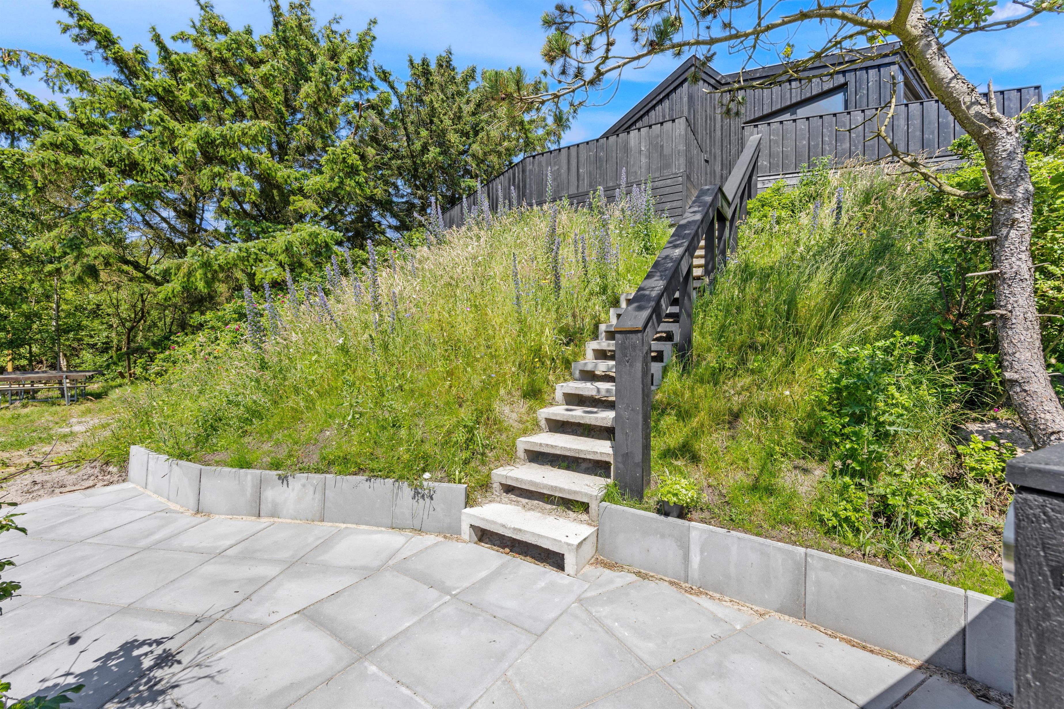 Den hyggelige terrasse ved feriehuset har både en åben og en afskærmet del, så her kan I solbade på de komfortable liggestole eller trække jer tilbage i havemøblerne med en kop nybrygget kaffe. Tænd op i grillen til aften og slut dagen af med et lækkert grillmåltid sammen, imens skyggerne bliver lange. Der er indkøbsmuligheder lige i nabolaget, så I kan supplere med friske varer, hvis I mangler. Bagefter kan I nå en dejlig tur til stranden og opleve solnedgangen i Vesterhavet – det er altid en imponerende oplevelse.