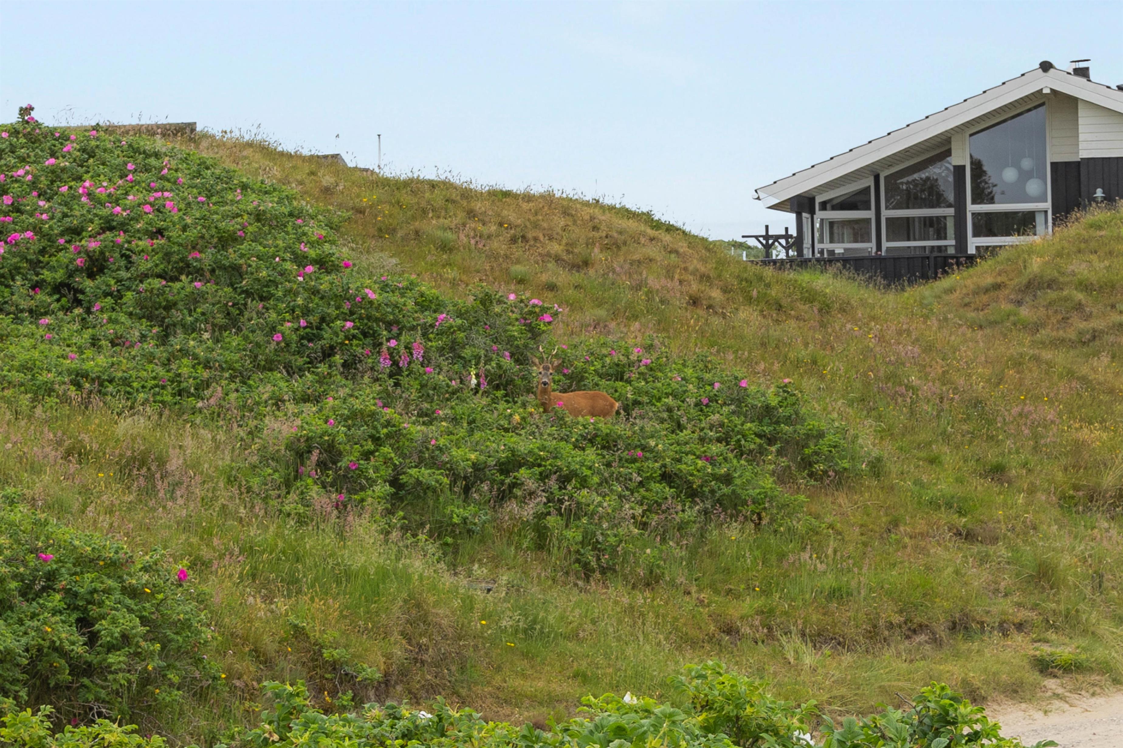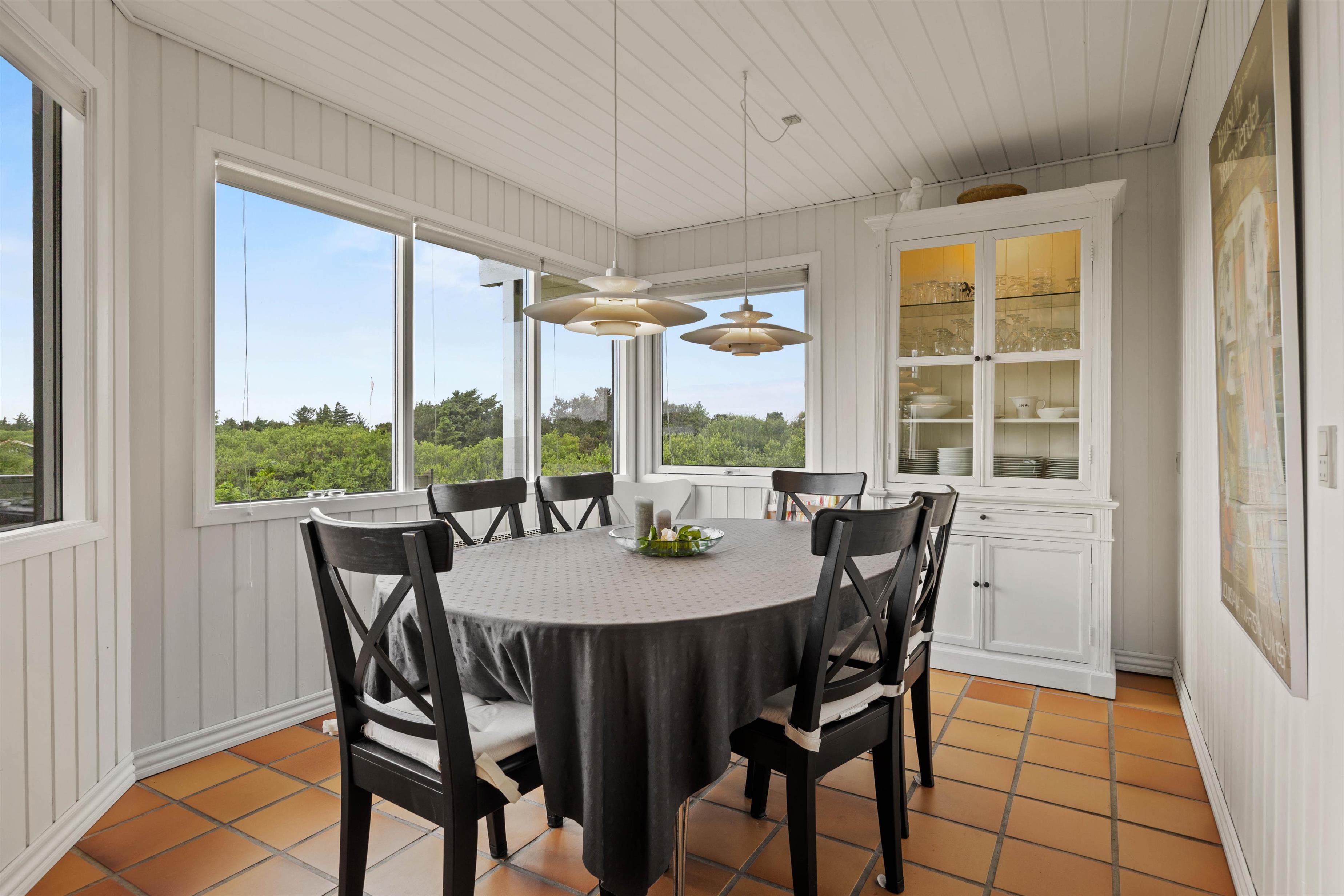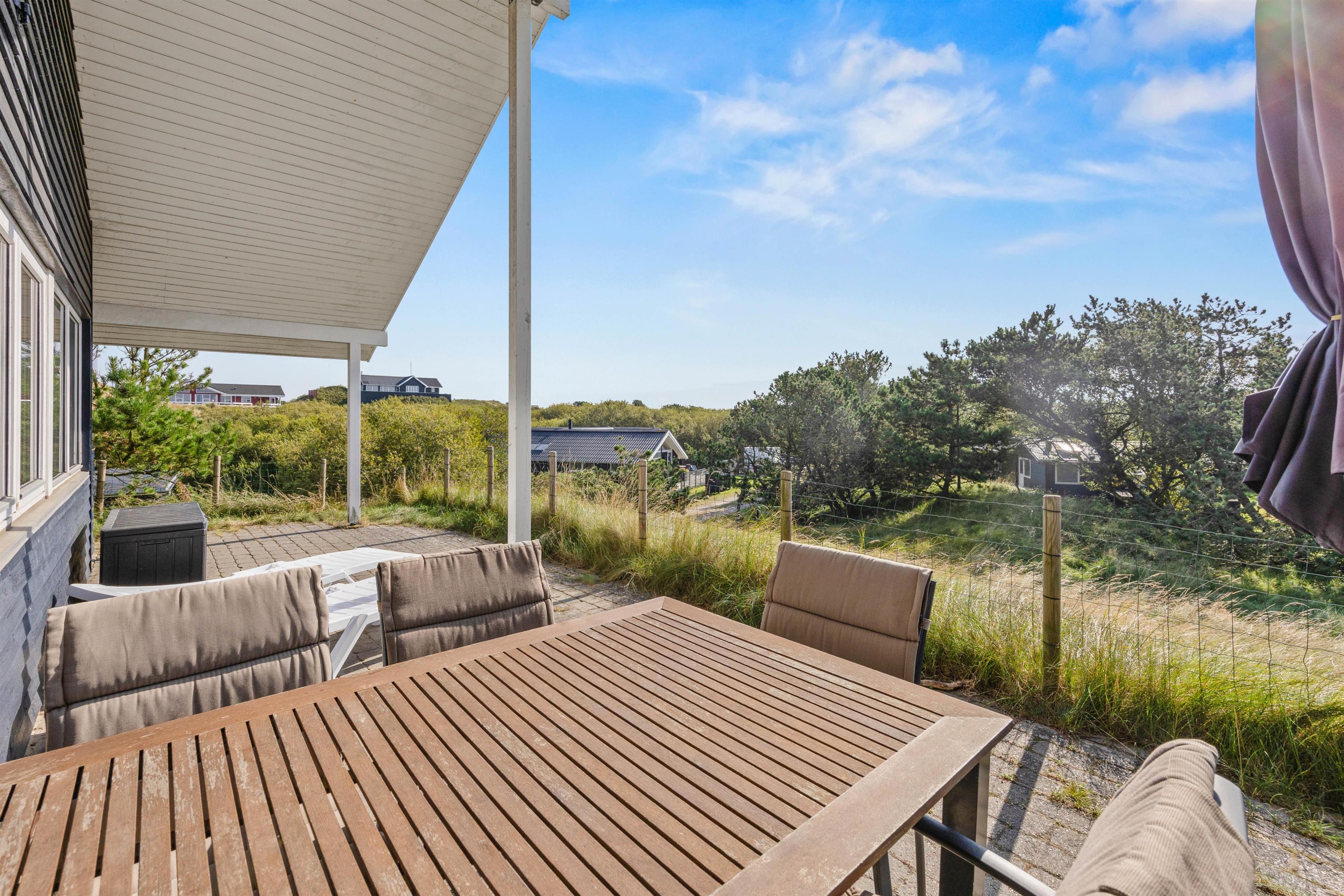 Ferieboligen ligger på en smuk naturgrund, hvor du kan nyde den friske luft og panoramaudsigten. På terrassen finder du også grillfaciliteter og havemøbler, der gør det nemt at nyde det udendørs. Med både en lukket og en overdækket terrasse, kan du altid finde et behageligt sted at sidde, uanset vejret.