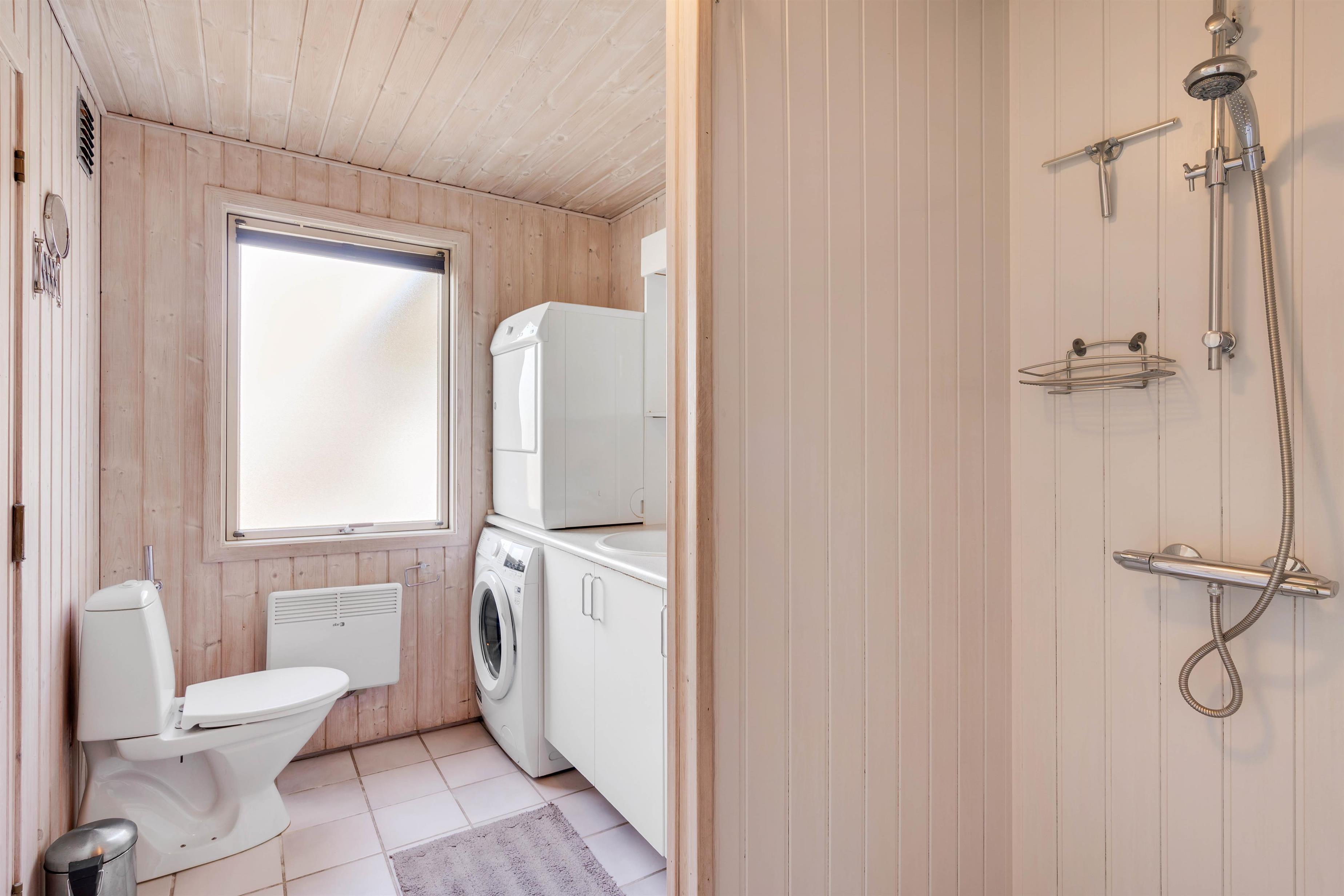 Det store højdepunkt i feriehuset på Store Klit 2 i Rindby på Fanø er uden tvivl saunaen, som I finder på sommerhusets badeværelse. I saunaen kan I blive forkælet med ekstra afslapning i den dejlige varme i løbet af ferien. Har I været ude på en frisk gåtur, er det også skønt med en tur i saunaen efterfølgende, så I kan blive varmet godt igennem igen.