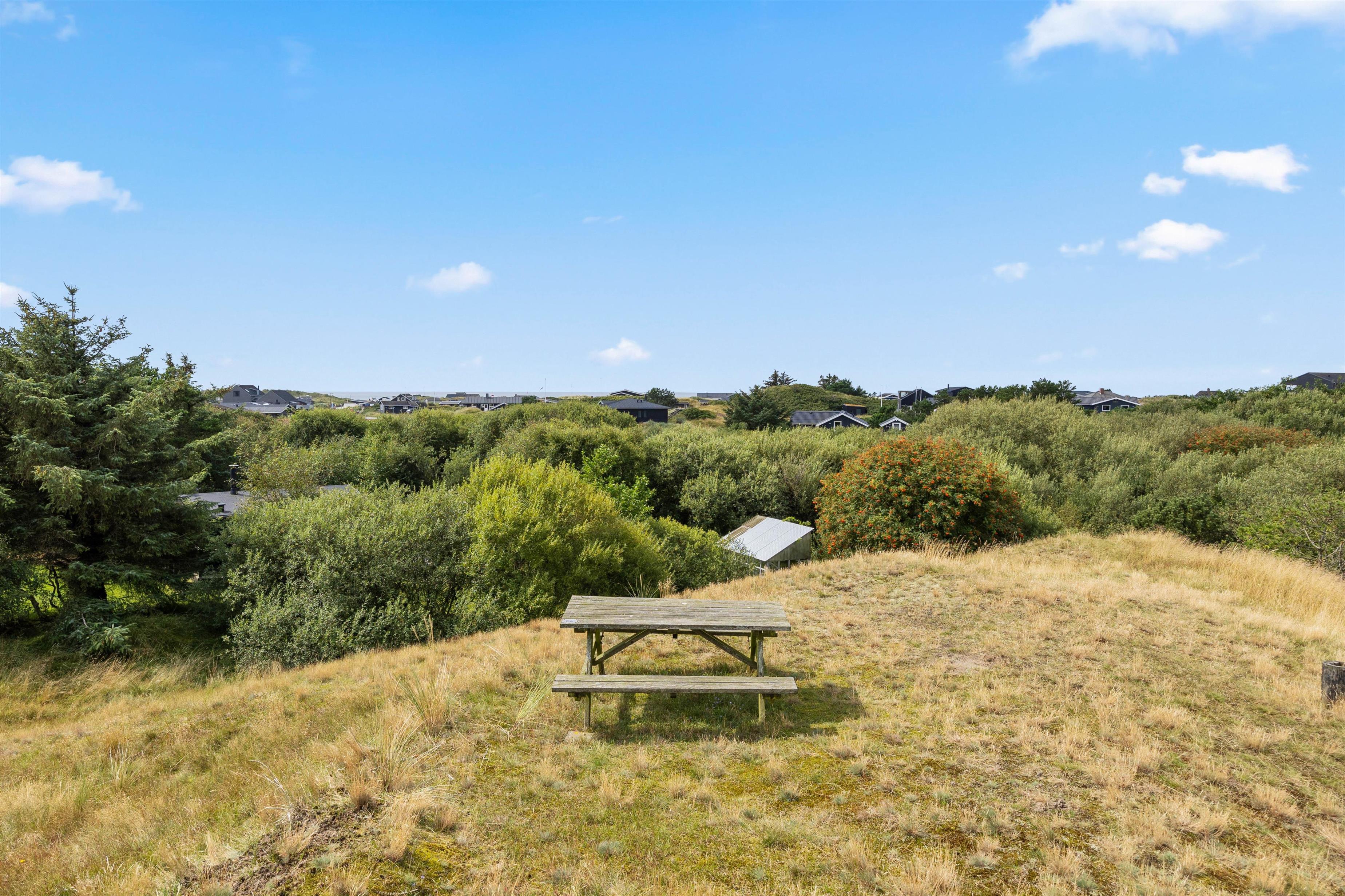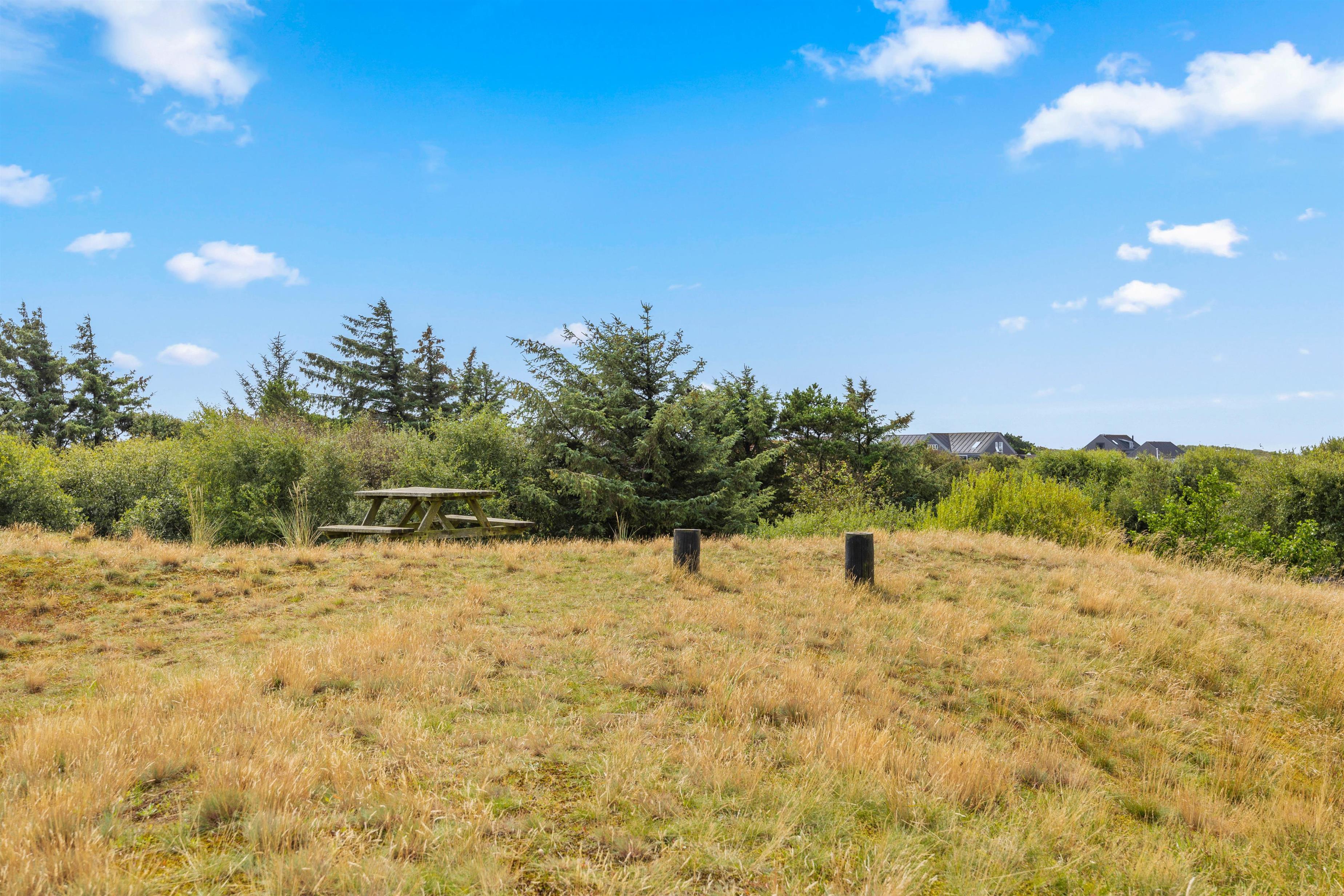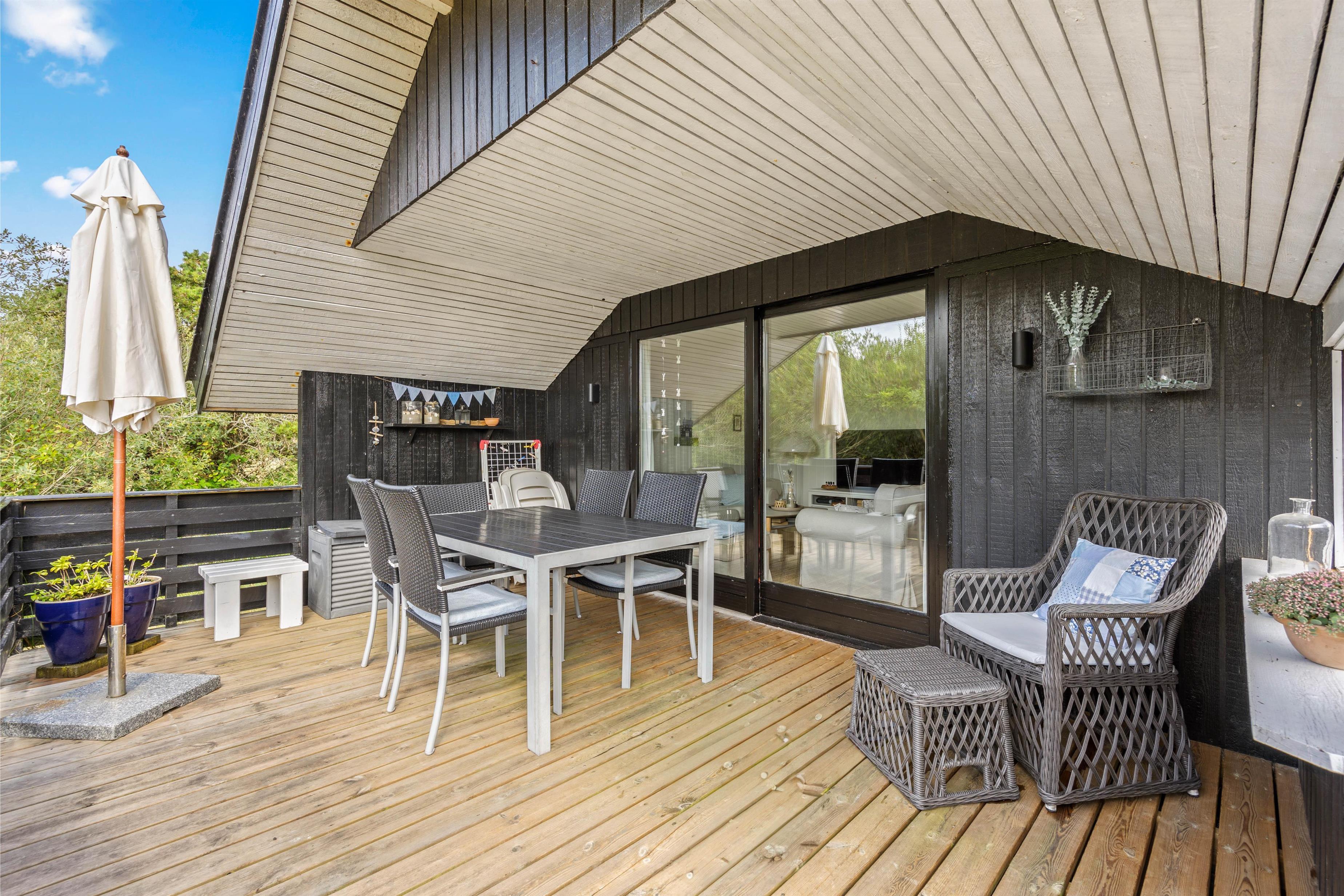 Sommerhuset ligger på en dejlig naturgrund på 1845 m² og har flere hyggelige terrasser, hvoraf nogle er overdækkede eller afskærmede. Her finder du liggestole, havemøbler og naturligvis en grill. Her kan I samles om en kop kaffe eller en grillmiddag – eller bare nyde freden og roen i havemøblerne. Selv om sommerhuset er omgivet af natur, ligger det centralt - der er kun 100 meter til de nærmeste butikker.