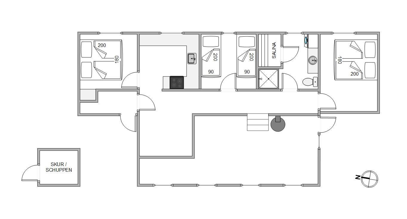 I feriehuset venter jer 3 skønne soverum, hvoraf to er med dobbeltsenge og det sidste med 2 enkeltsenge. Her kan I trække jer tilbage og samle fornyet energi til de resterende feriedage. Badeværelset er med gulvvarme og sauna for ekstra velvære.