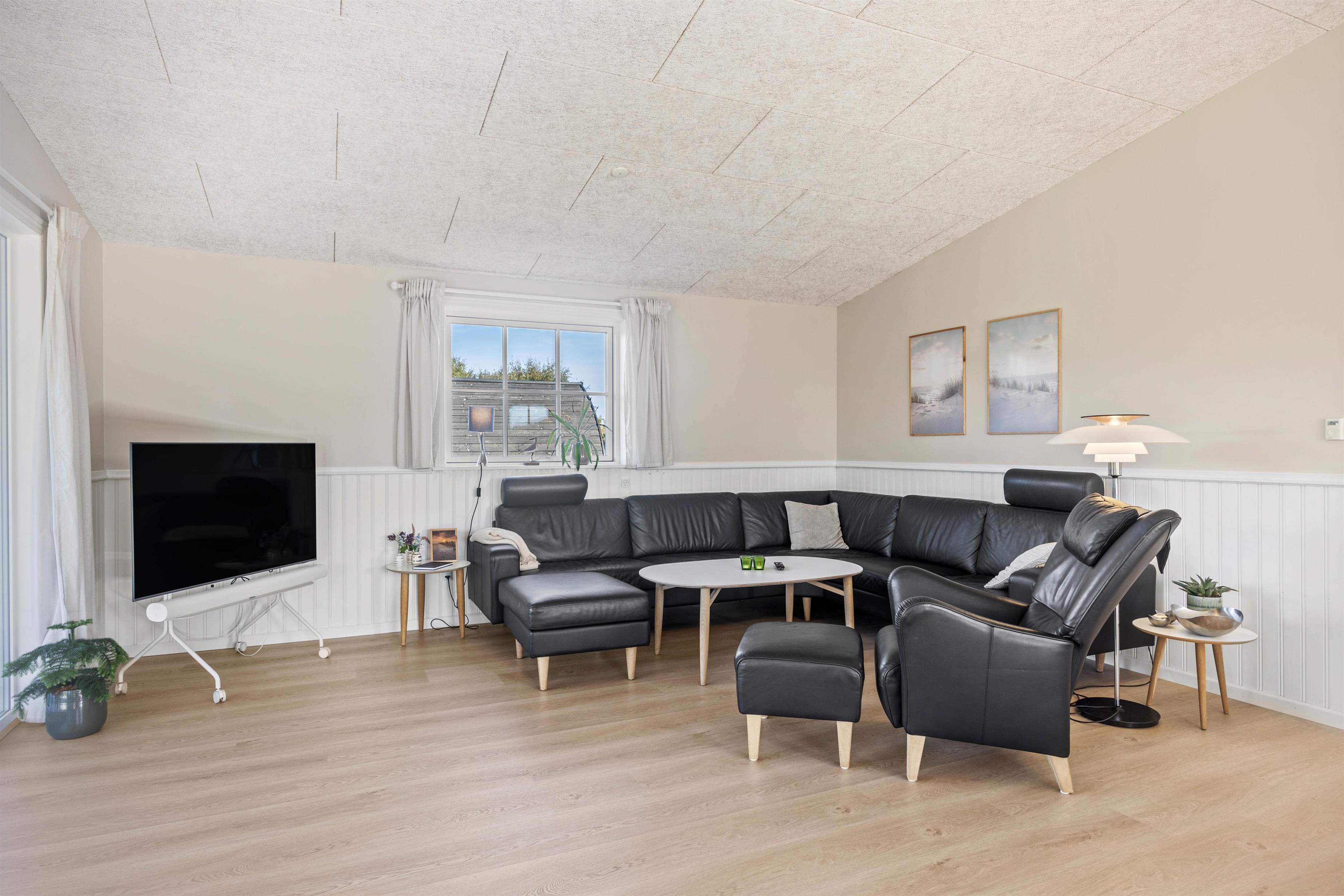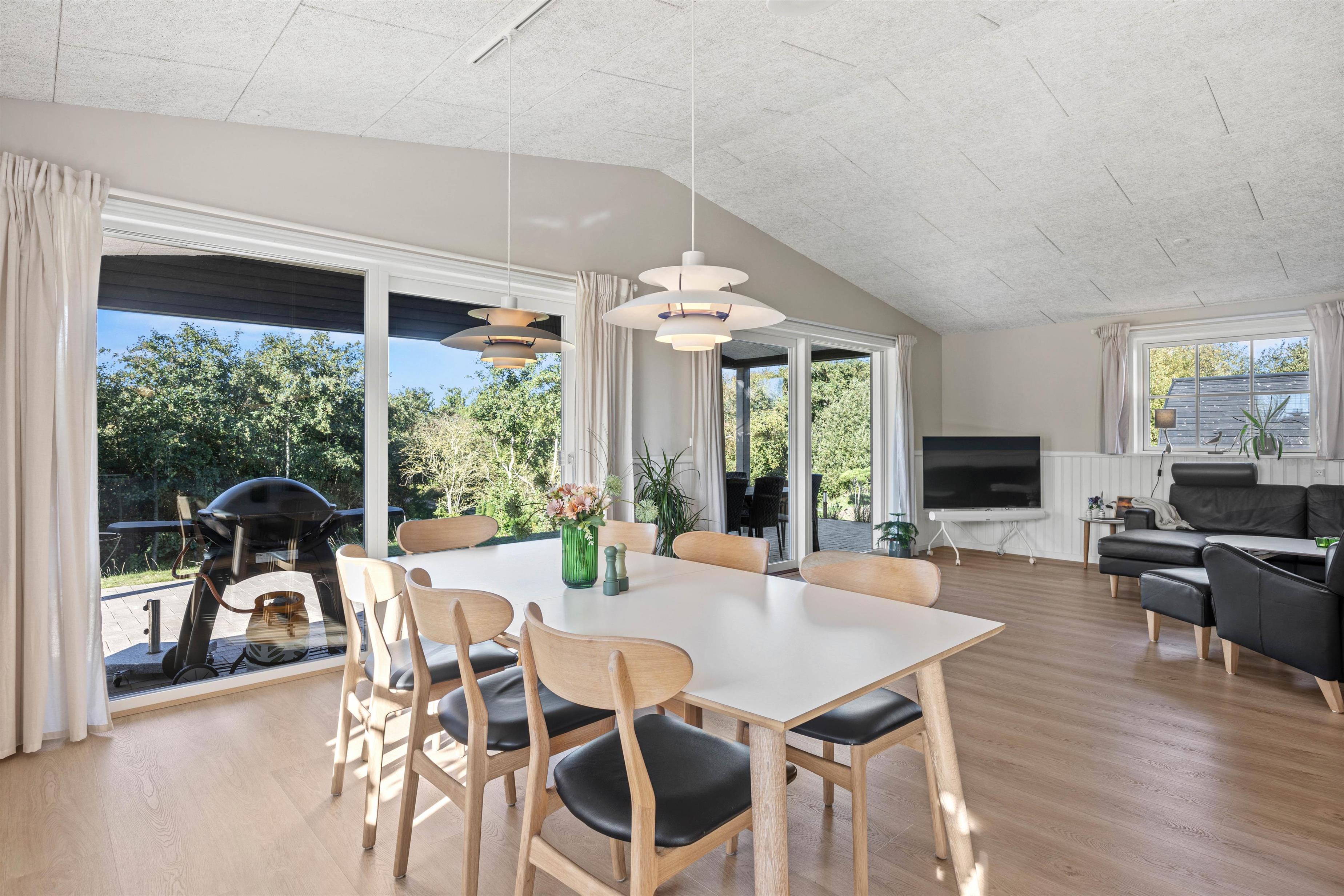 Det rummelige og lyst indrettede feriehus er ideelt at holde ferie i for den store familie eller vennegruppen. Her er højt til loftet, og de tre soverum er indrettet med to dobbeltsenge og to køjesenge. Feriehuset er generelt praktisk og lækkert indrettet med både et badeværelse og et gæstetoilet. Begge med varme i gulvet.