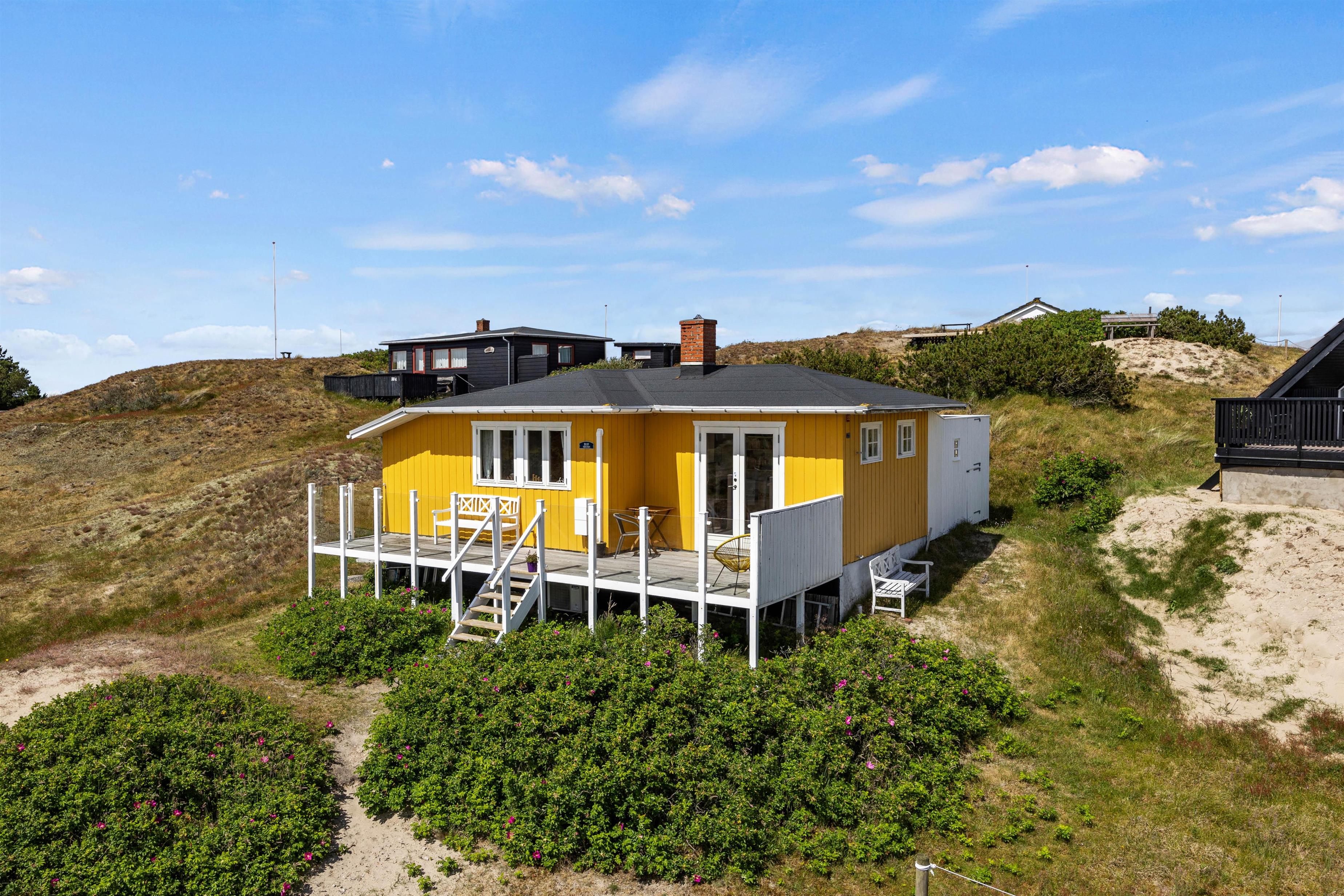 Det lille, charmerende træsommerhus ligger idyllisk mellem klitterne og udstråler hygge allerede, når I træder indenfor. På 55?m² finder I alt, hvad I behøver for en afslappende ferie på Fanø – enkelt, men indrettet med kærlig hånd. Det, der gør dette hus specielt, er beliggenheden: klitterne, lyset og roen. Perfekt til at slappe af og nyde omgivelserne i fulde drag.