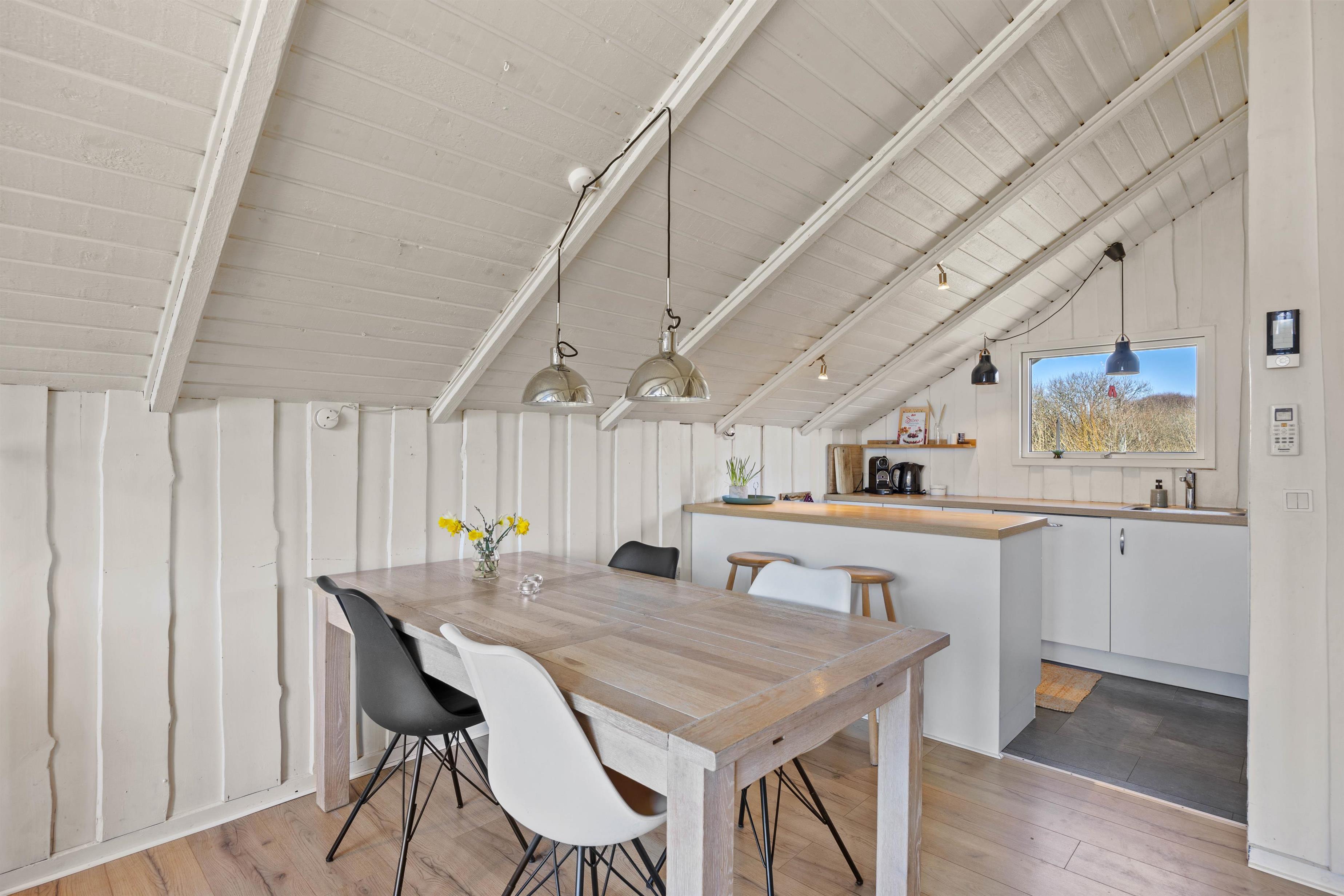 Sommerhuset blev i 2019 delvist renoveret og har blandt andet fået nye gulve, mens badeværelset er renoveret i 2024. Hele feriehuset er lyst og rummeligt, og især køkkenalrummet fremstår med gode, komfortable møbler. Det veludstyrede køkken indeholder alt, I skal bruge for at tilberede måltider til hele familien, samt en opvaskemaskine så opvasken hurtigt og nemt er klaret.