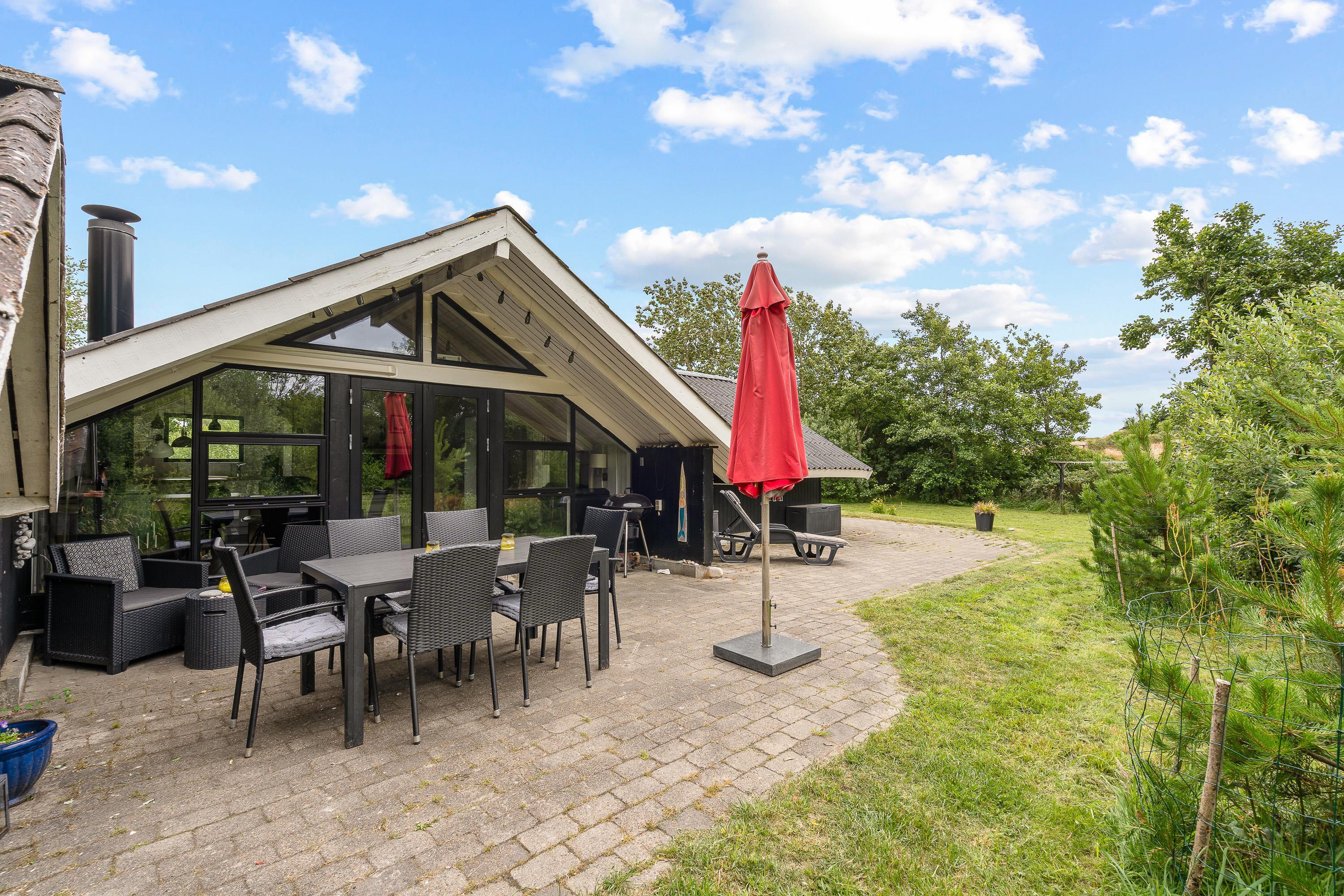Feriehuset på Vagtbjergvej 5 er beliggende på en flot naturgrund med plæne, så familiens mindste og hundene rigtigt kan boltre sig her. Den 1800 m2 store grund har god beplantning og en god terrasse, der løber langs 2 sider af feriehuset. Sæt jer til rette i de komfortable havemøbler og tænd op i grillen. Her er stilen lagt for hyggelige timer på de lune sommeraftener.