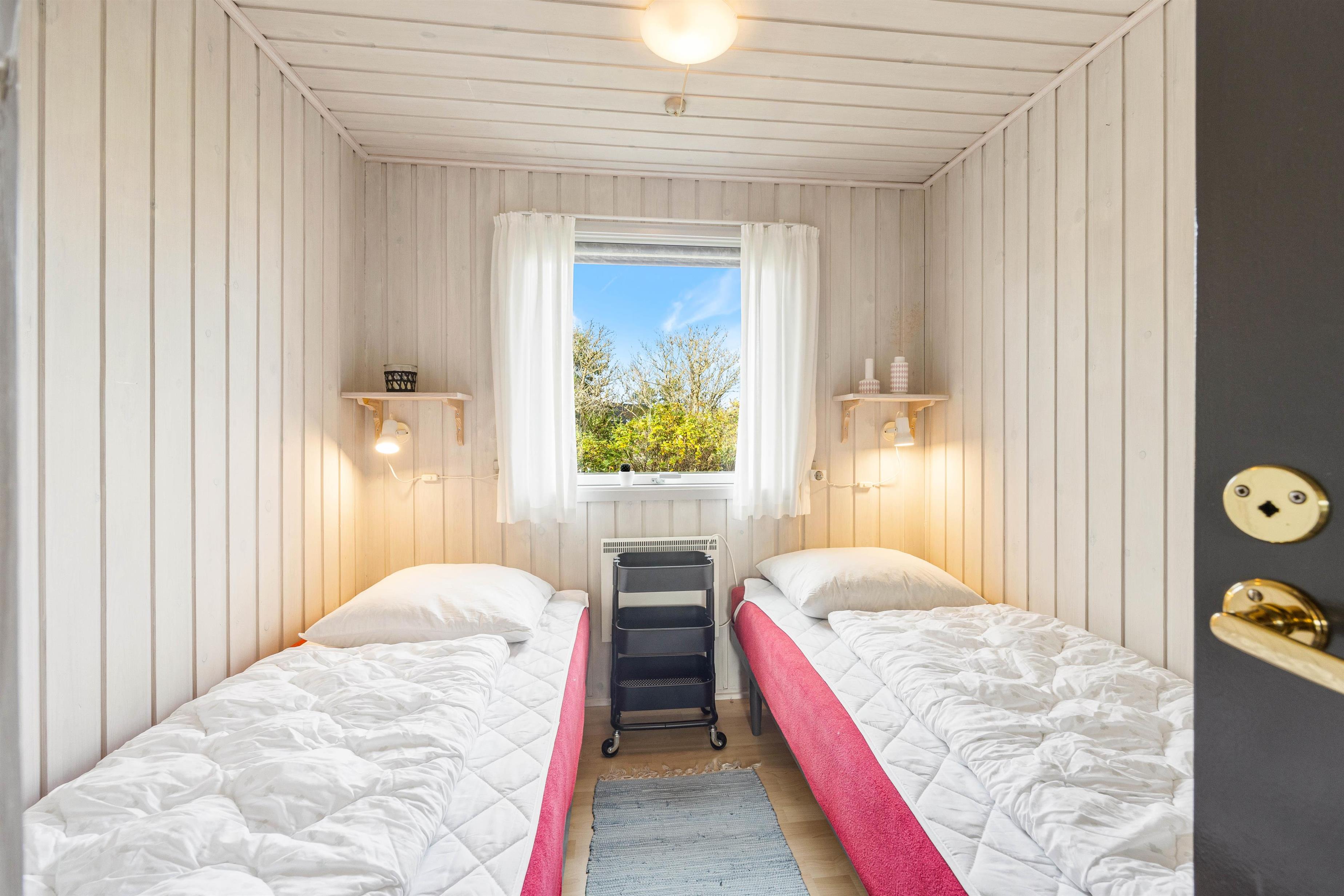 Når I bliver trætte og skal lade op til flere hyggelige feriedage, så byder feriehuset på tre soveværelser, 1 med dobbeltseng og 4 enkeltmandssenge.