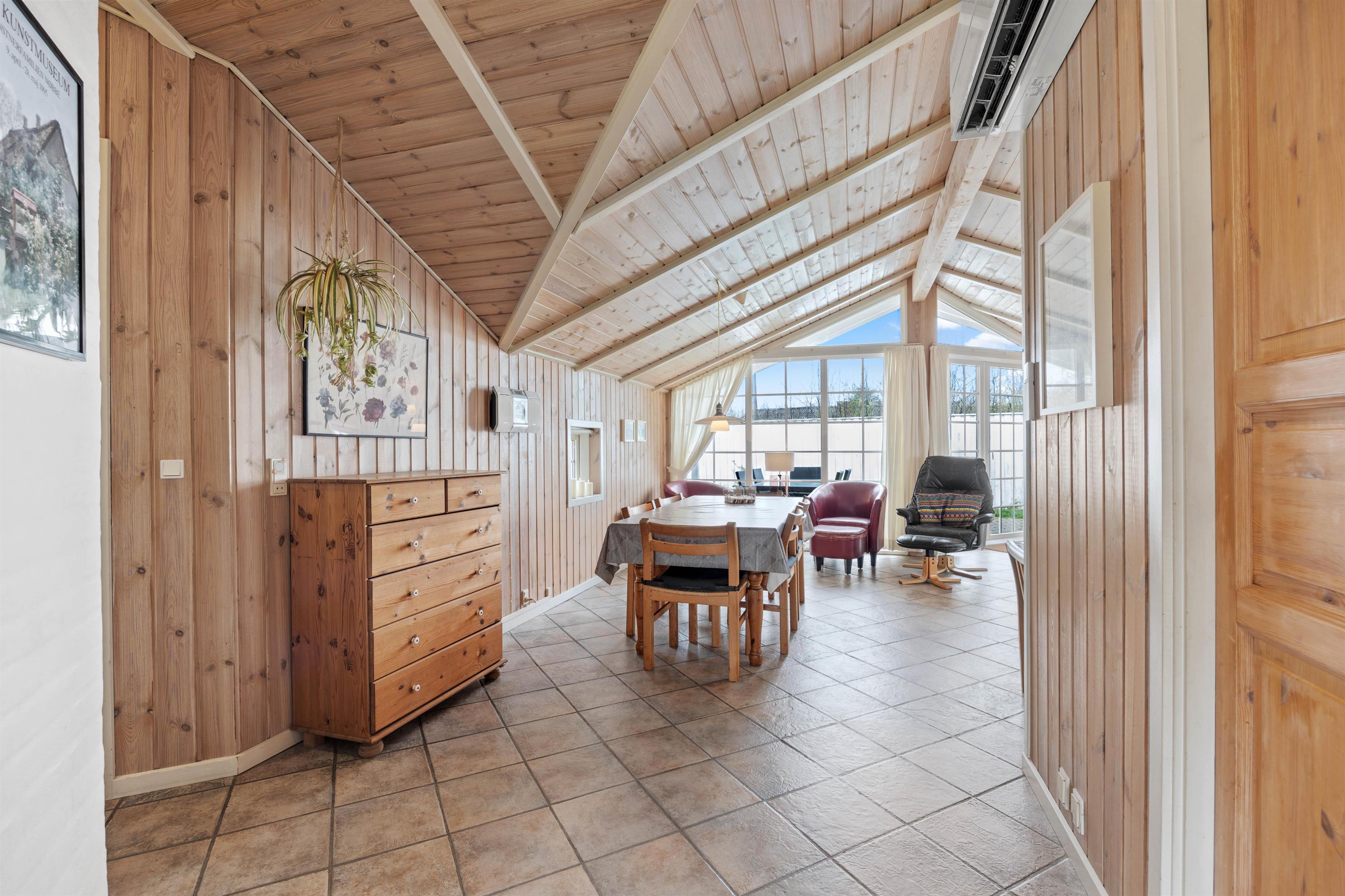 I stuen kan I hygge jer sammen foran ilden i brændeovnen. Se en film sammen, eller måske er det tid til at læse en god bog igen? Her kan alle hygge sig sammen og alligevel individuelt. Ved spisebordet er der plads nok til at spille et brætspil eller lave krea-ting sammen. Køkkenet har alt, hvad I behøver for at forkæle hinanden med lækre hjemmelavede retter. Den omkostnings- og energibesparende varmepumpe sørger for behagelige temperaturer i sommerhuset.