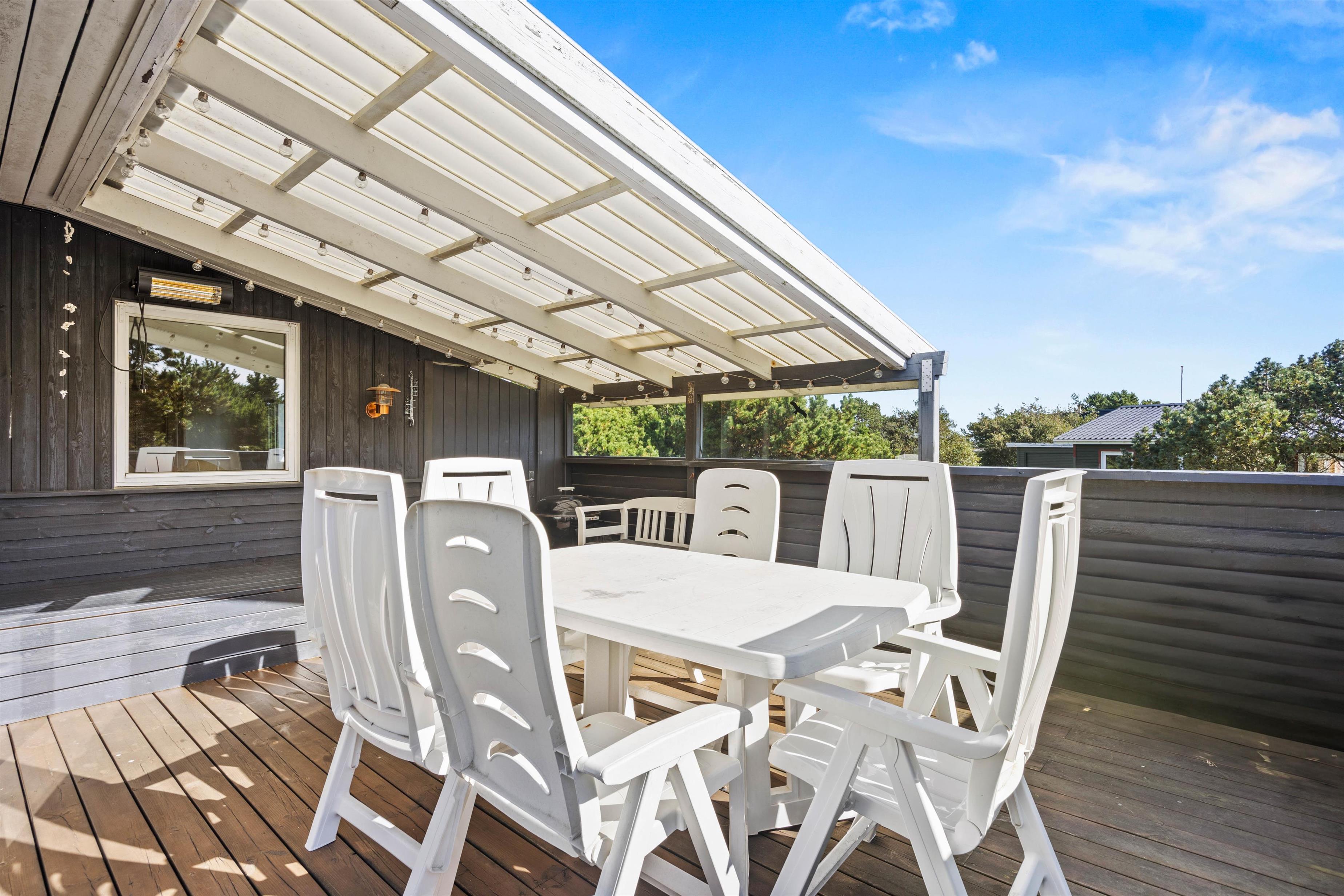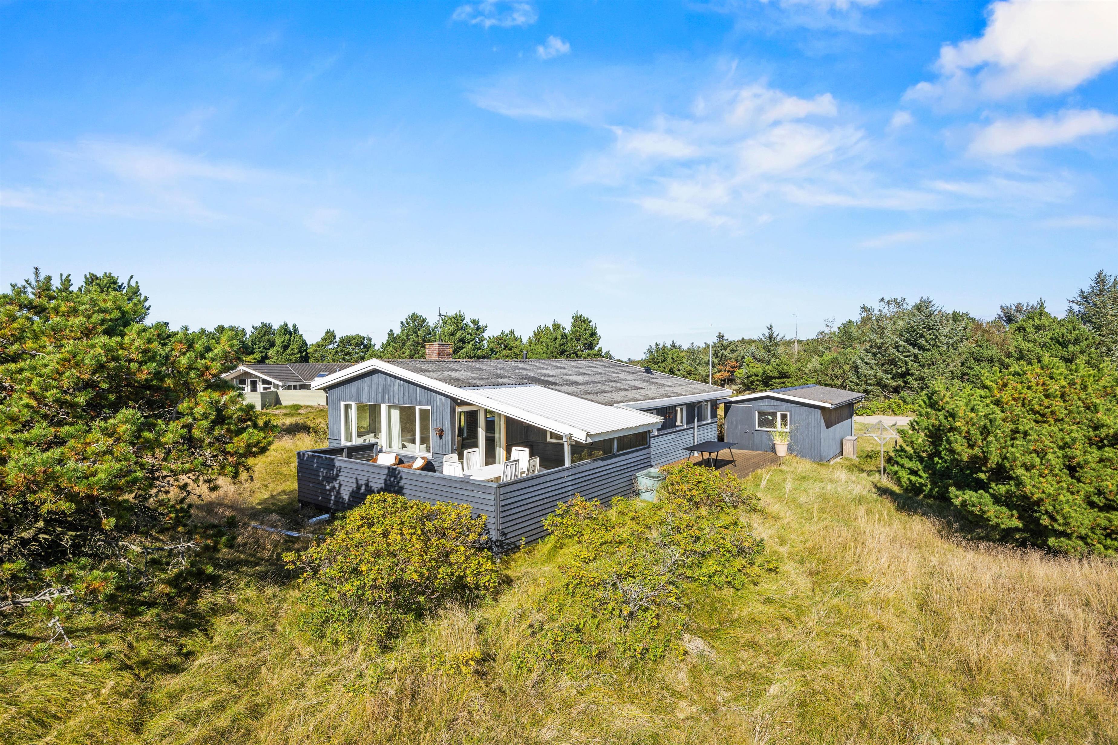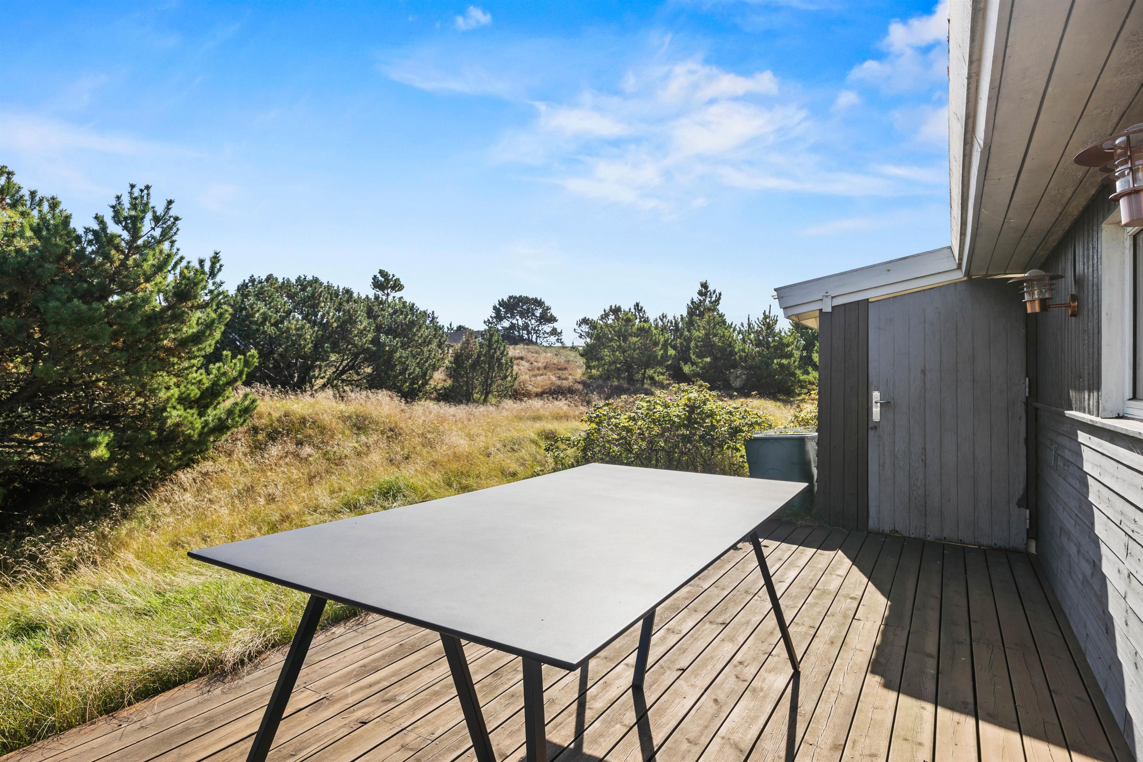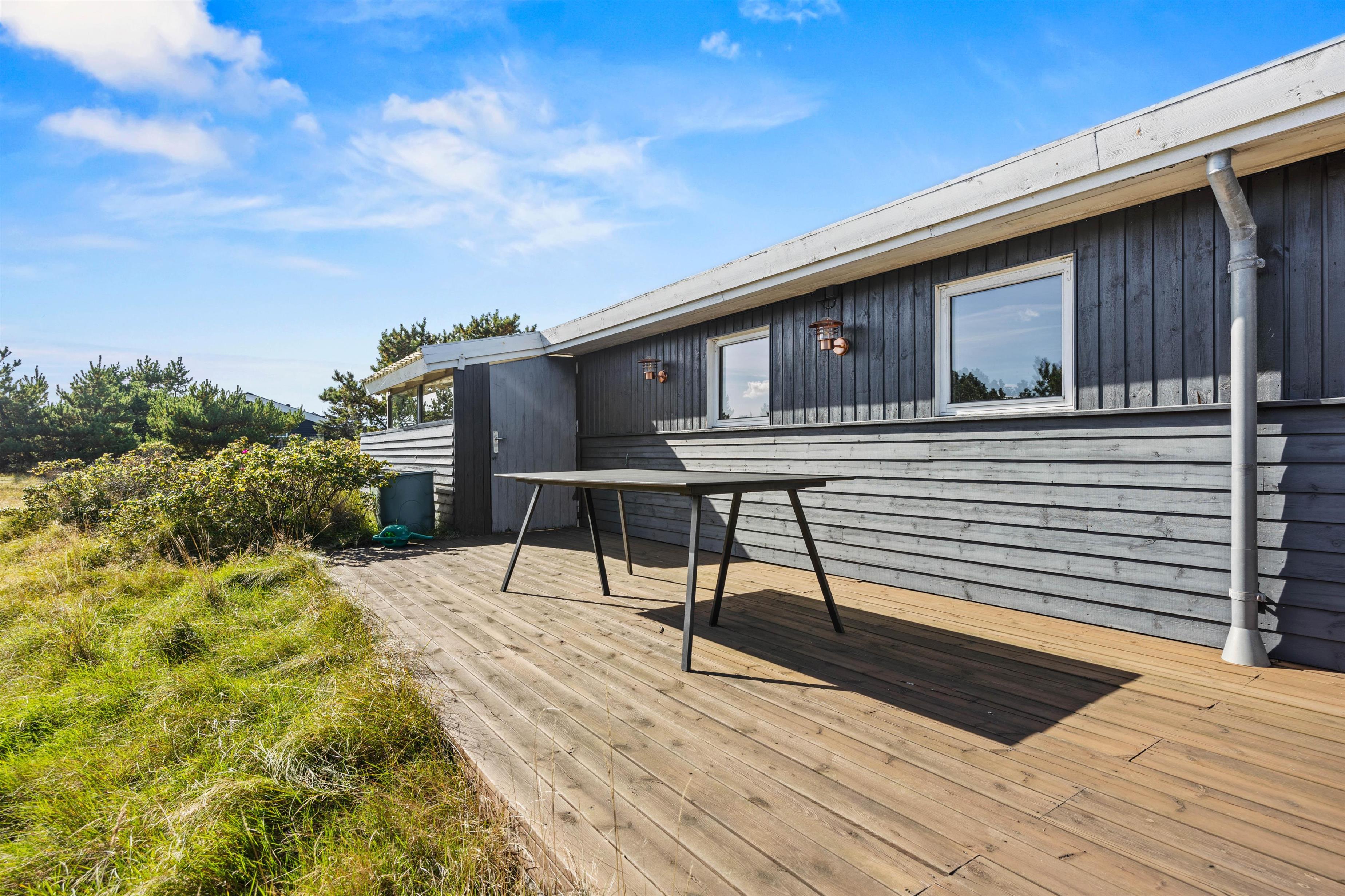 Sommerhusets naturgrund på godt 2350 m2 giver plads til udendørs aktiviteter, og du kan også nyde vesterhavsluften fra terrassen, som har både et åbent-, et lukket- og overdækket afsnit. Havemøbler og grill gør det muligt at tilbringe lange, afslappede aftener udendørs, mens du nyder det naturskønne område og solnedgangen.