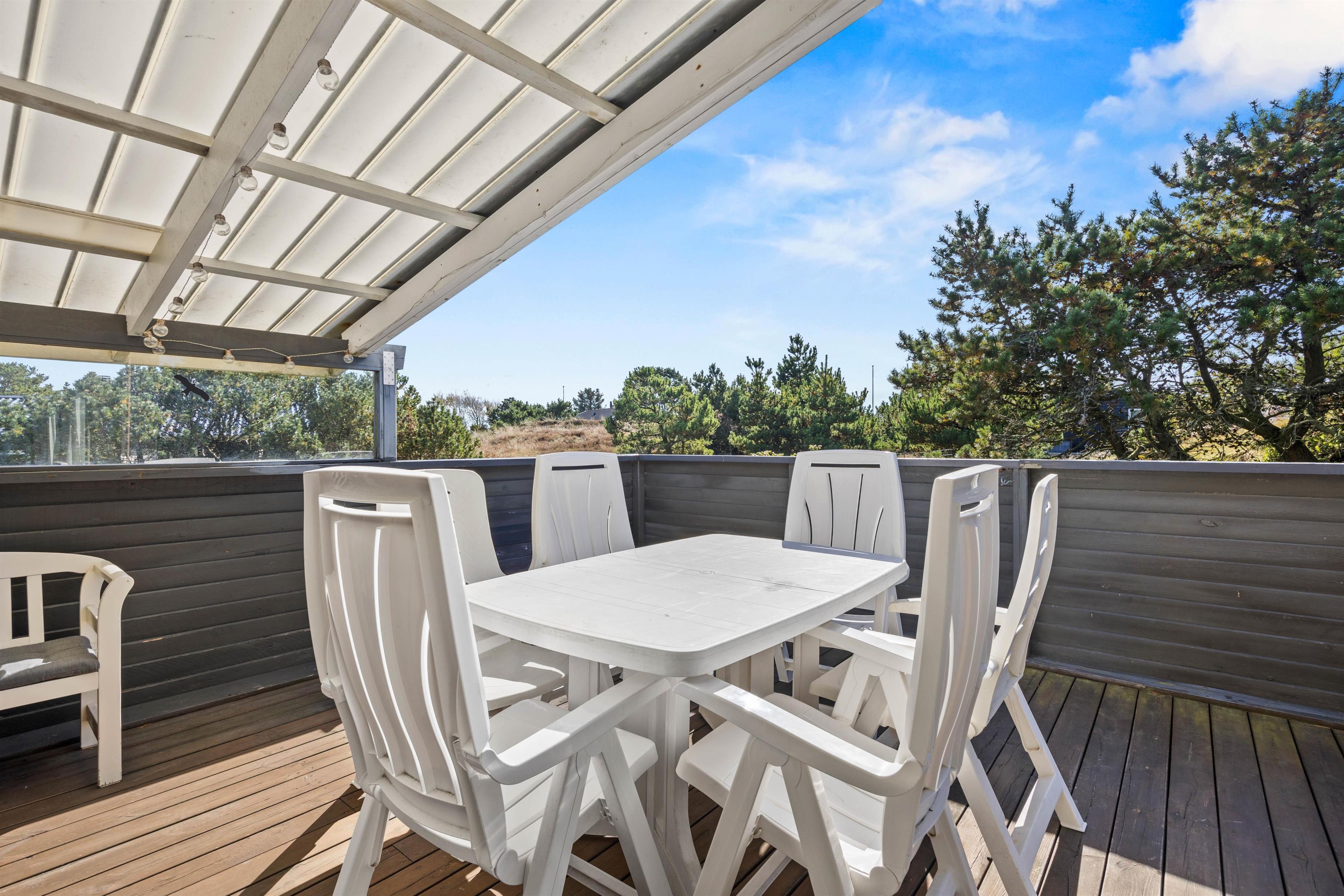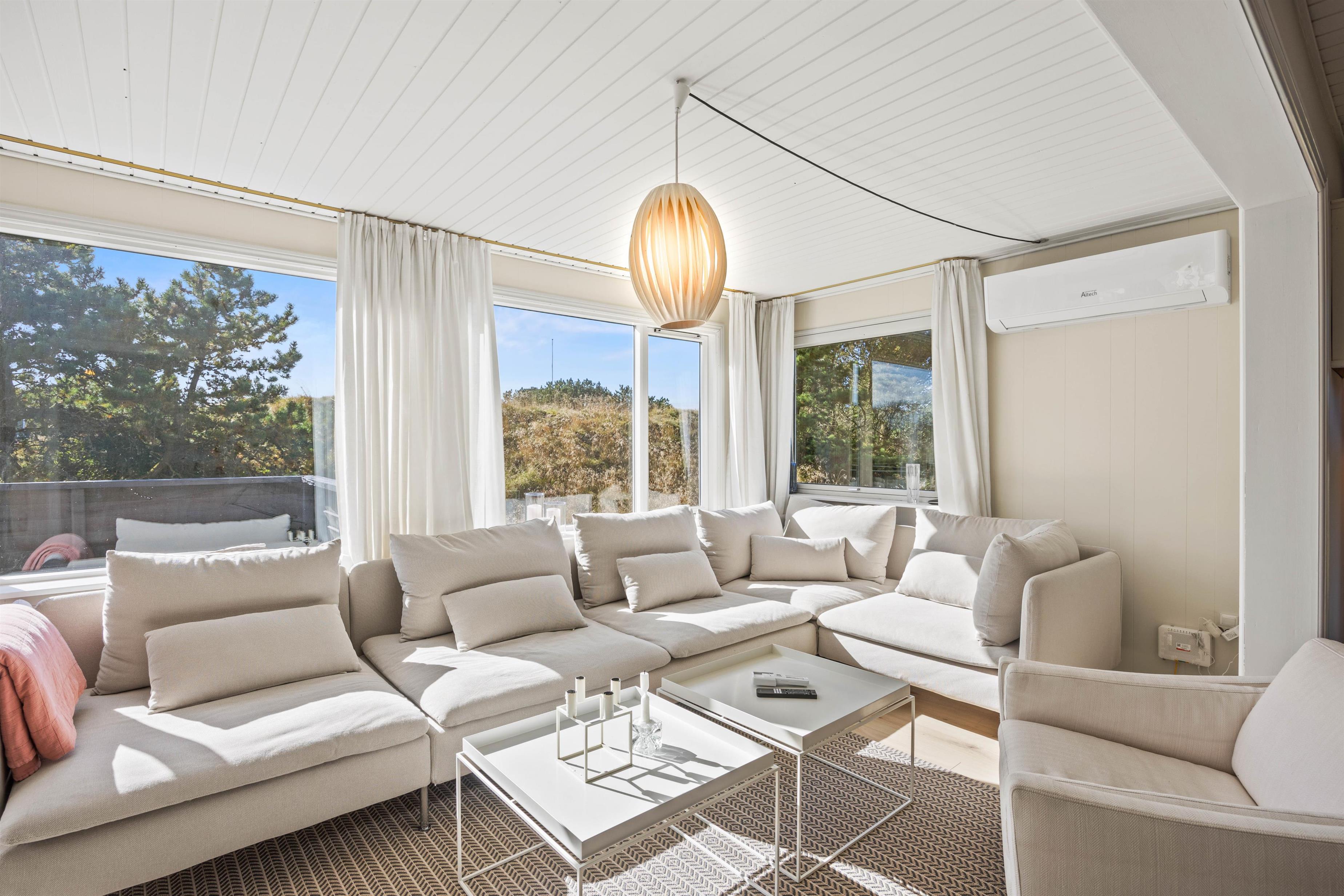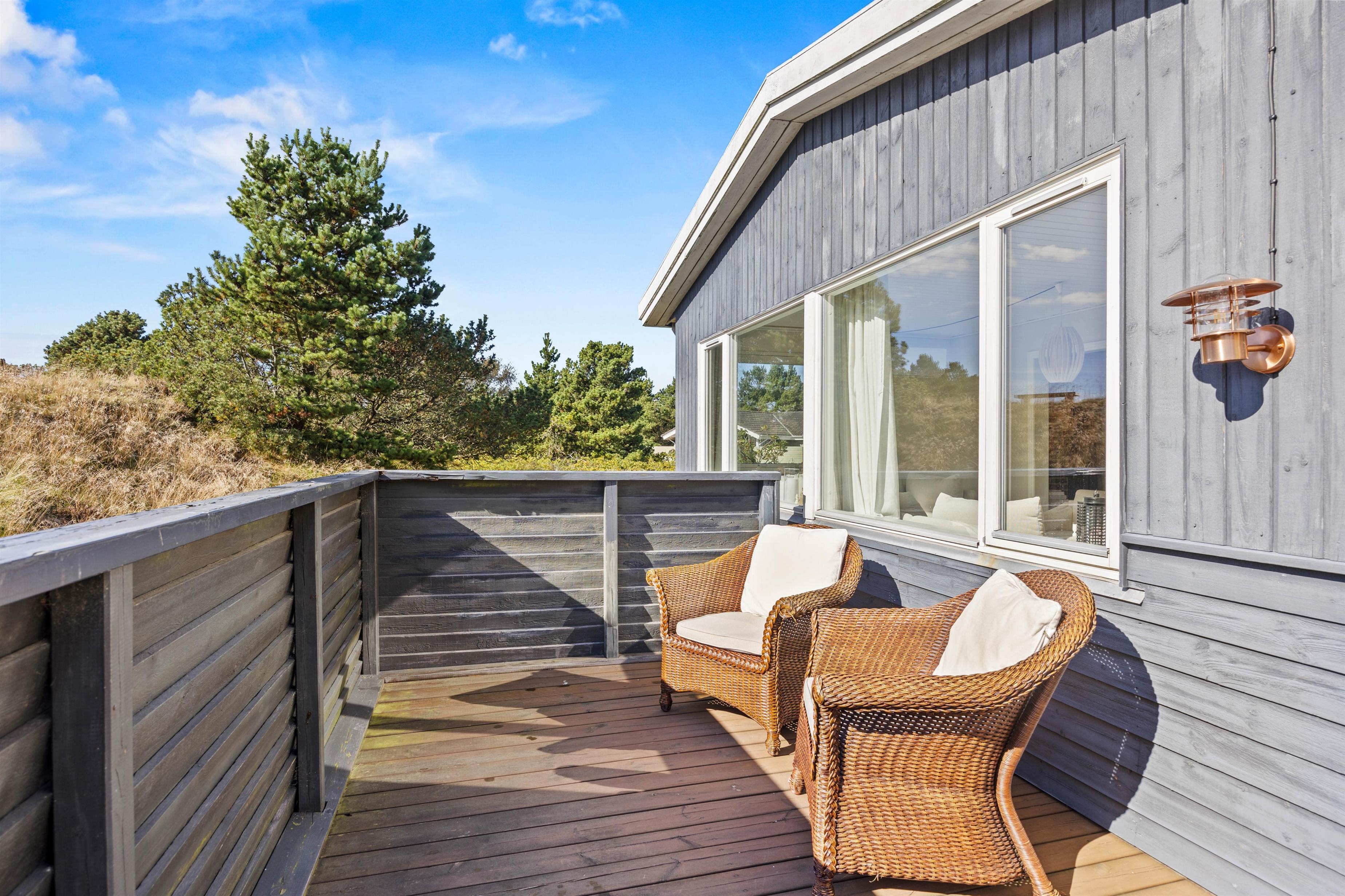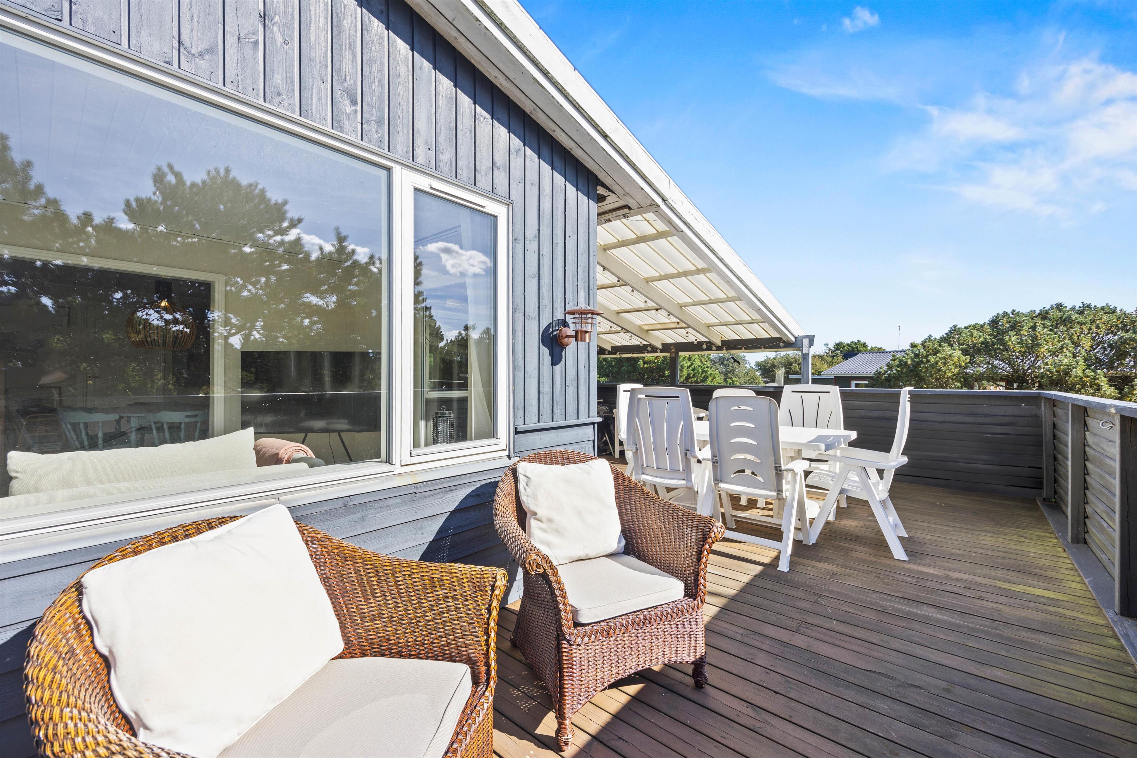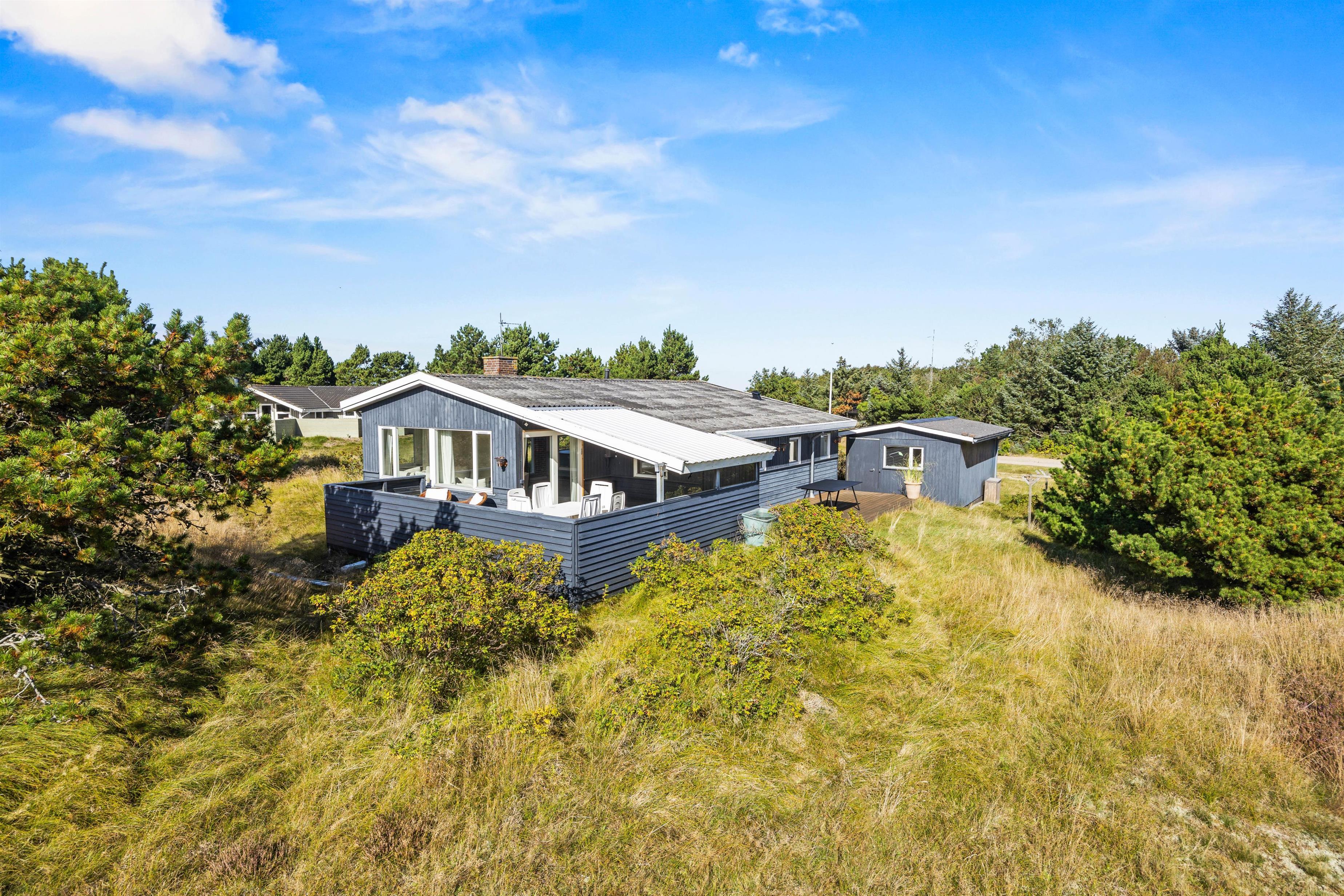 Sommerhusets naturgrund på godt 2350 m2 giver plads til udendørs aktiviteter, og du kan også nyde vesterhavsluften fra terrassen, som har både et åbent-, et lukket- og overdækket afsnit. Havemøbler og grill gør det muligt at tilbringe lange, afslappede aftener udendørs, mens du nyder det naturskønne område og solnedgangen.