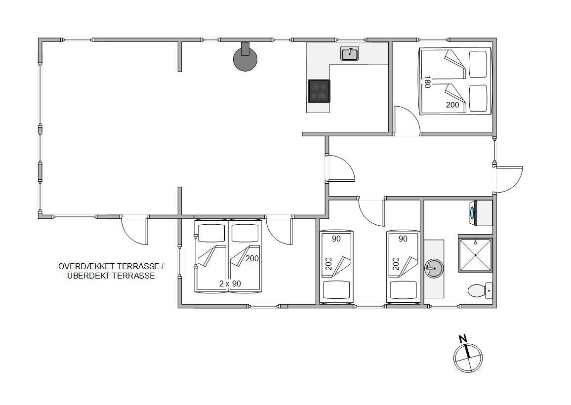 Køkkenet indeholder alt, hvad I behøver for at tilberede lækre måltider på ferien, herunder induktionskomfur og opvaskemaskine. De 3 rummelige soverum indeholder 2 komfortable dobbeltsenge og 2 enkeltsenge, så I kan indrette jer efter behov.