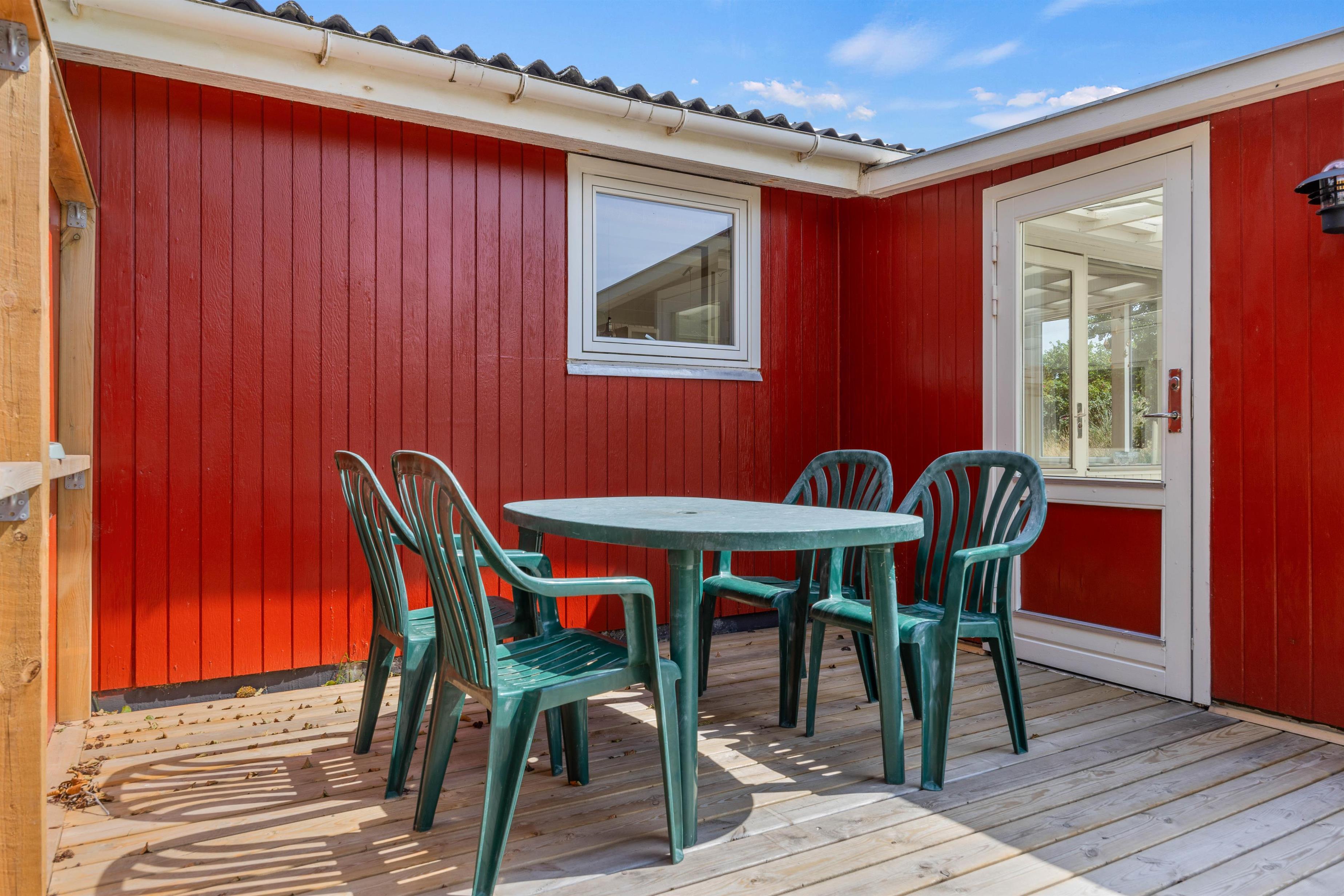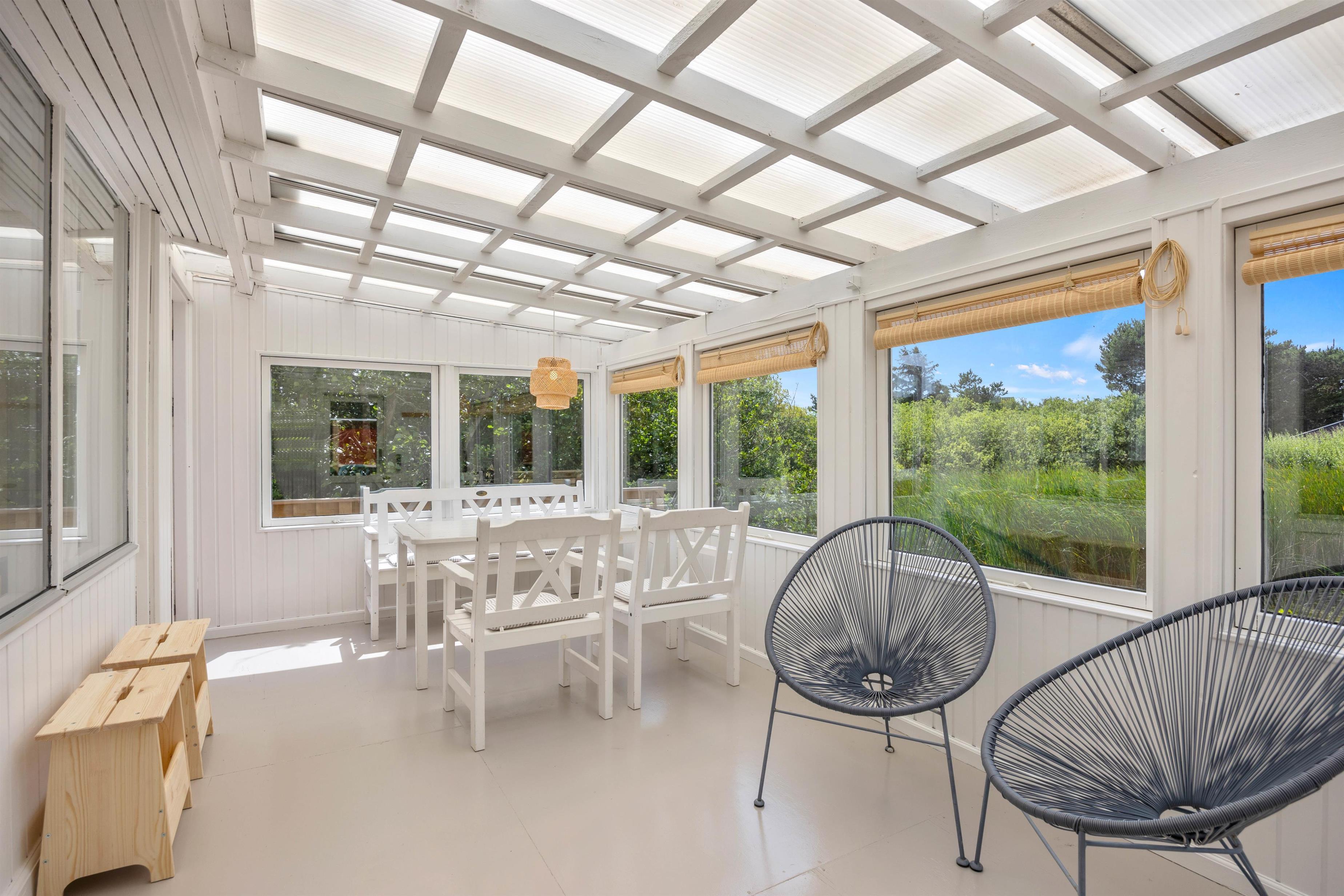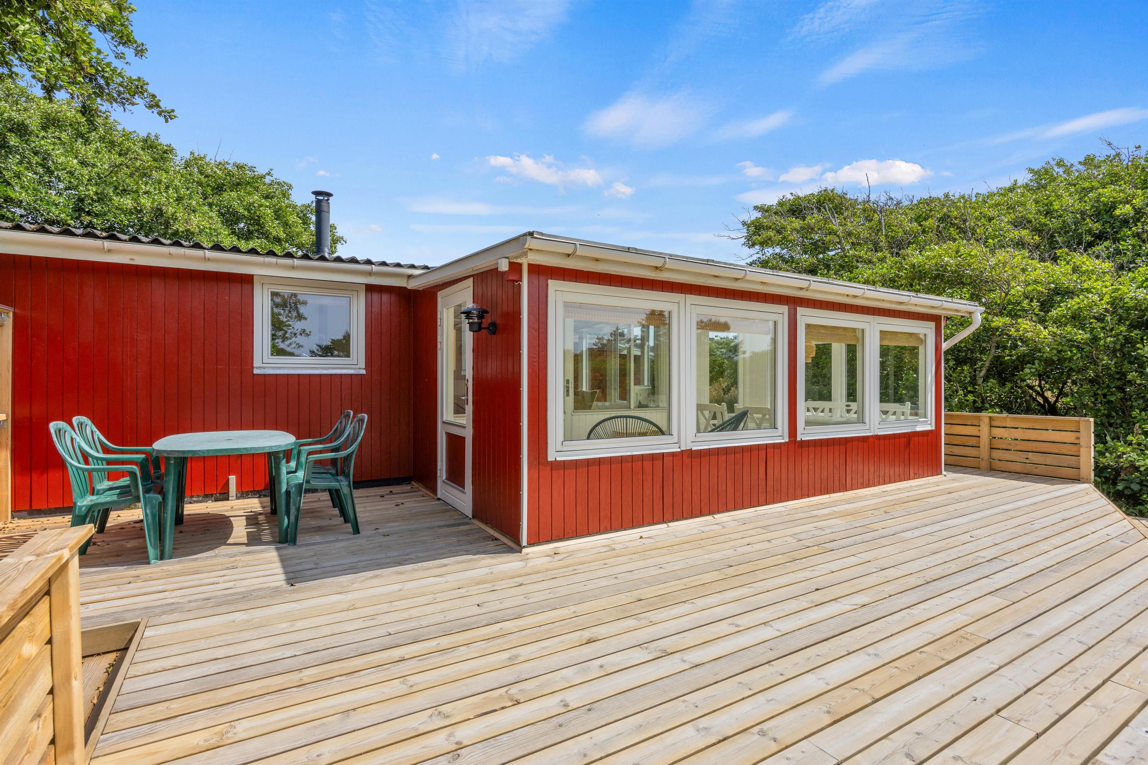 Fra den åbne terrasse har I den dejligste udsigt over både søen og naturgrunden. Her kan I solbade i liggestolene eller trække jer tilbage i havemøblerne med en drink eller en kop kaffe. Med kun 600 m til Vesterhavet vil en daglig gåtur dertil hurtigt blive et tilbagevendende punkt på ferie-dagsordenen. Her er skønt ved både ebbe og flod. Tænd op i grillen til aften, og nyd et lækkert grillmåltid sammen, imens skyggerne bliver lange. Her I mere energi, og lyst til endnu en ferieoplevelse, kan I bagefter gå til stranden og opleve solnedgangen i Vesterhavet som afslutning på dagen.