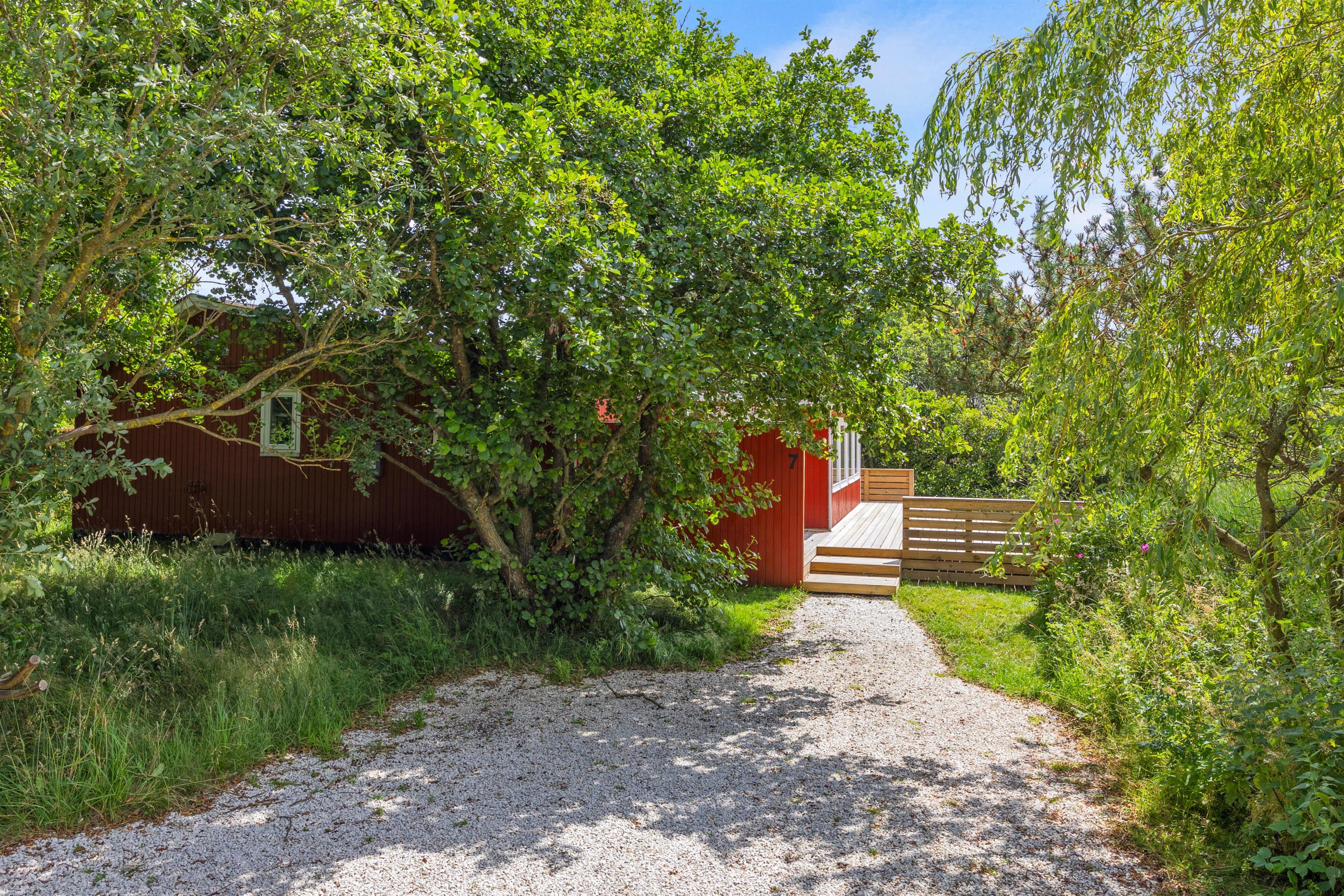 På Strandgårdsvej 7 finder I det røde, hyggelige sommerhus, idyllisk beliggende på en naturgrund med en lille sø. Her kan den lille familie nyde feriestemningen og følge årets gang i naturen. De 67 kvadratmeter er lyst og venligt indrettet med tre soverum og badeværelse med bruser. I stuen er der brændeovn og åbent køkkenområde med en bænkekrog samt en dejlig udestue. Fra udestuen har I den skønneste udsigt over søen, og her kan I hygge jer til langt ud på aftenen. Slutrengøring er inkluderet i prisen, så den behøver I ikke at bekymre jer om.
