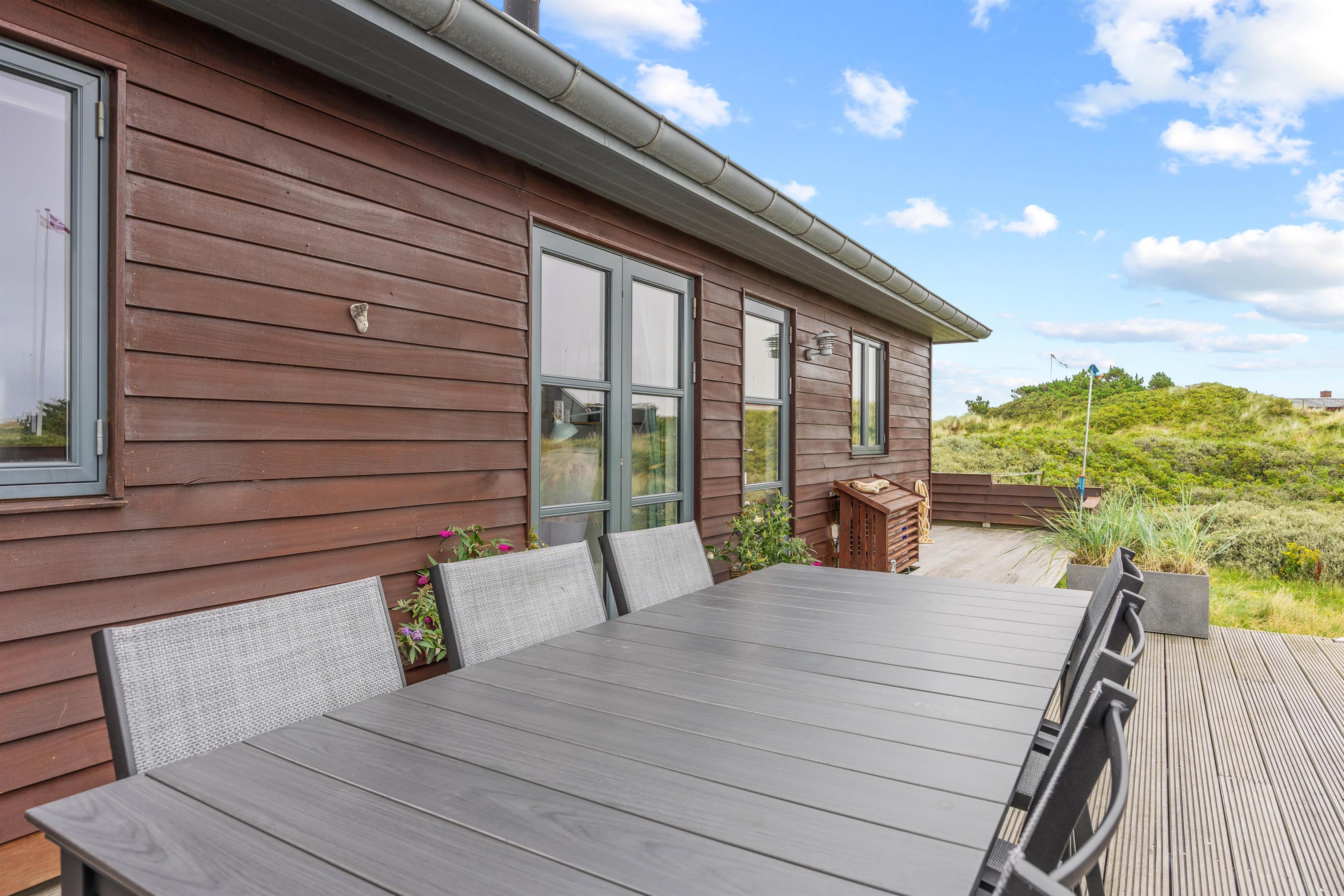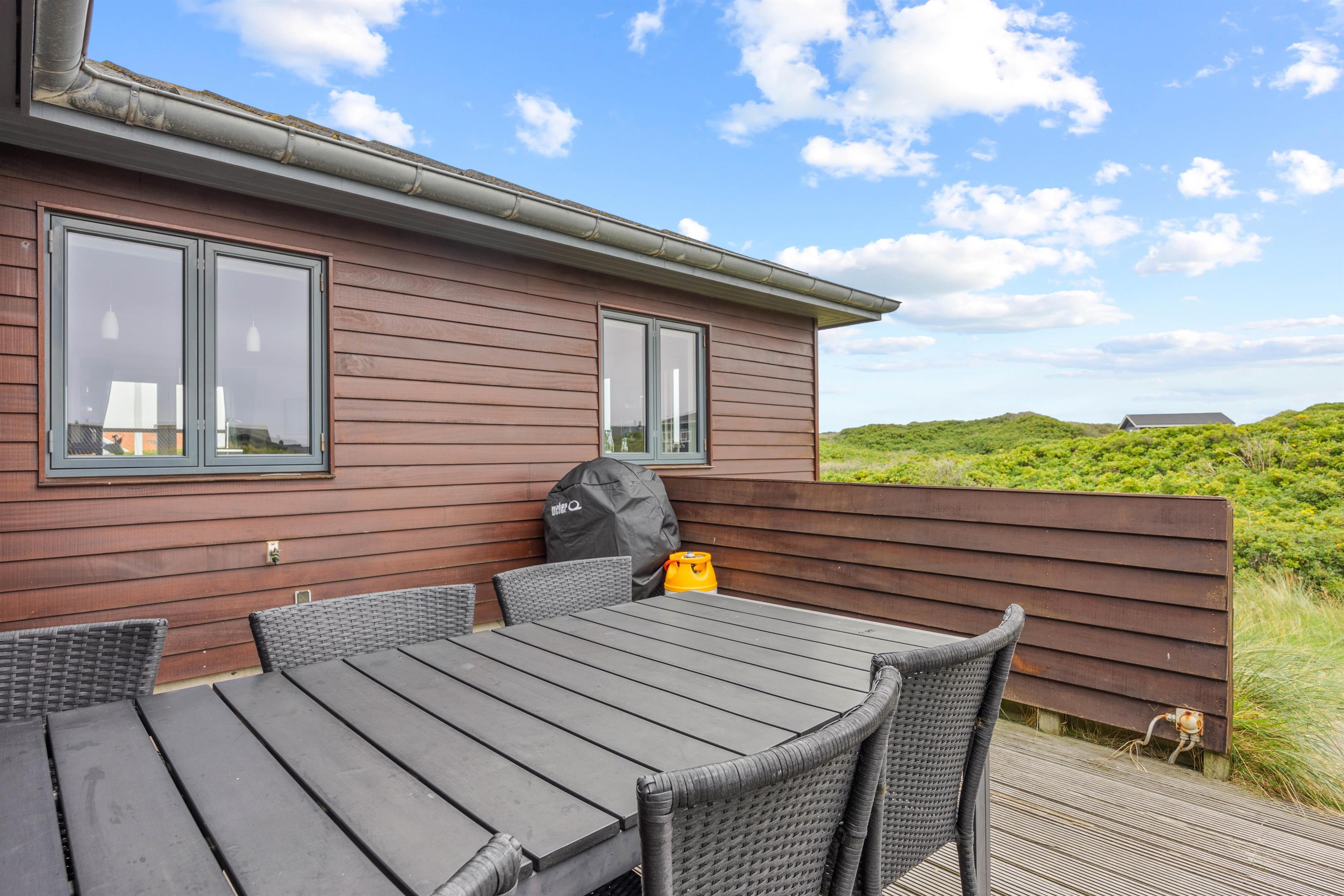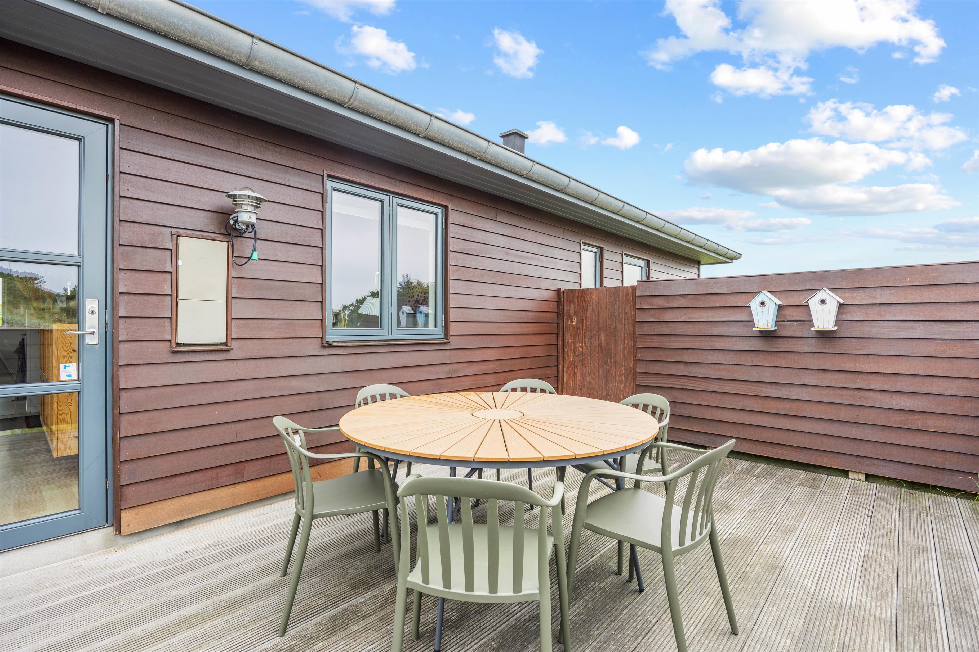 Udendørs byder sommerhuset på en stor, dejlig terrasse, hvor I kan tilbringe de solrige feriedage. Om morgenen kan I sidde på den østvendte del af terrassen med dagens første kop kaffe, mens resten af feriehuset stadig sover.