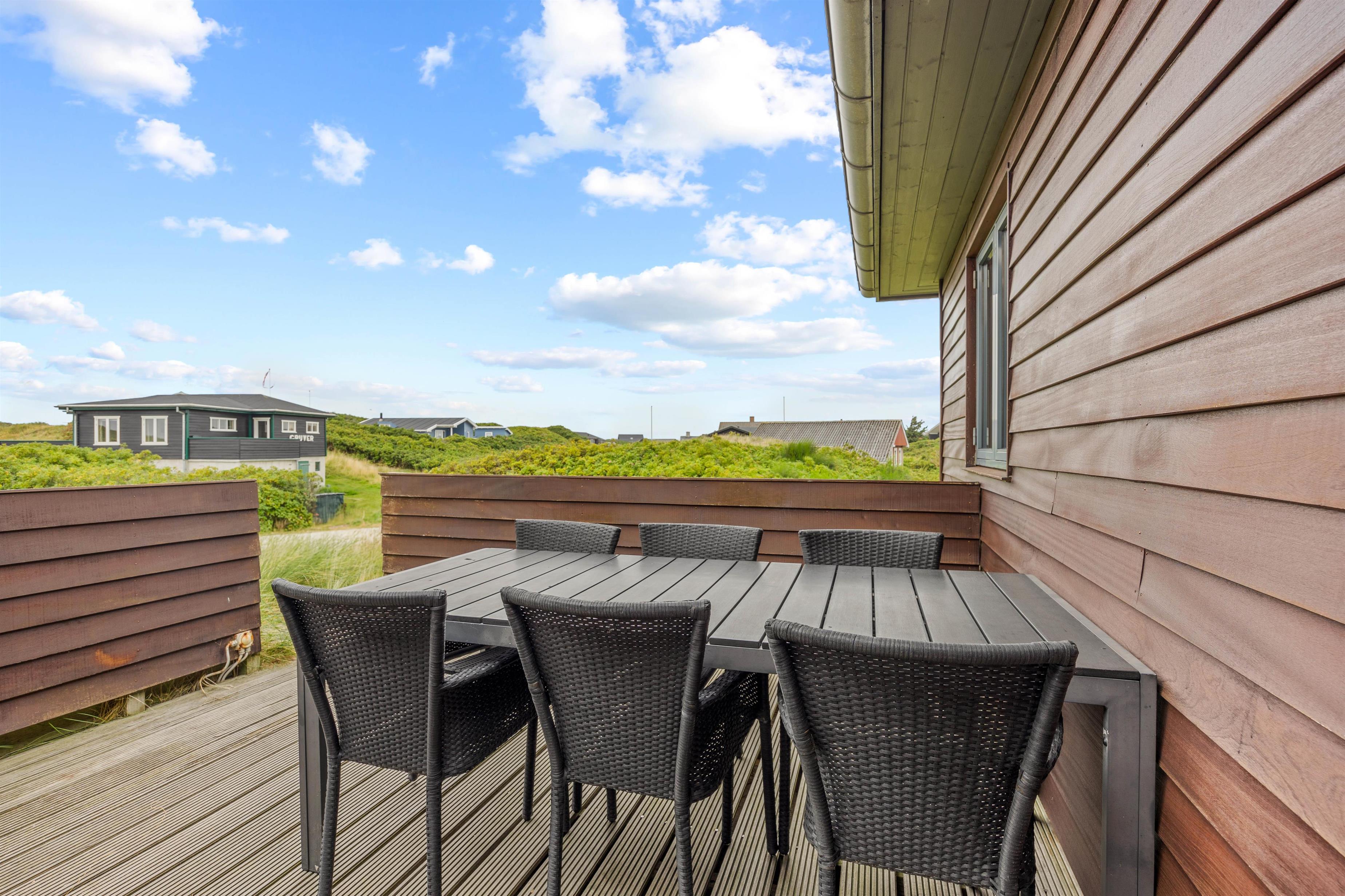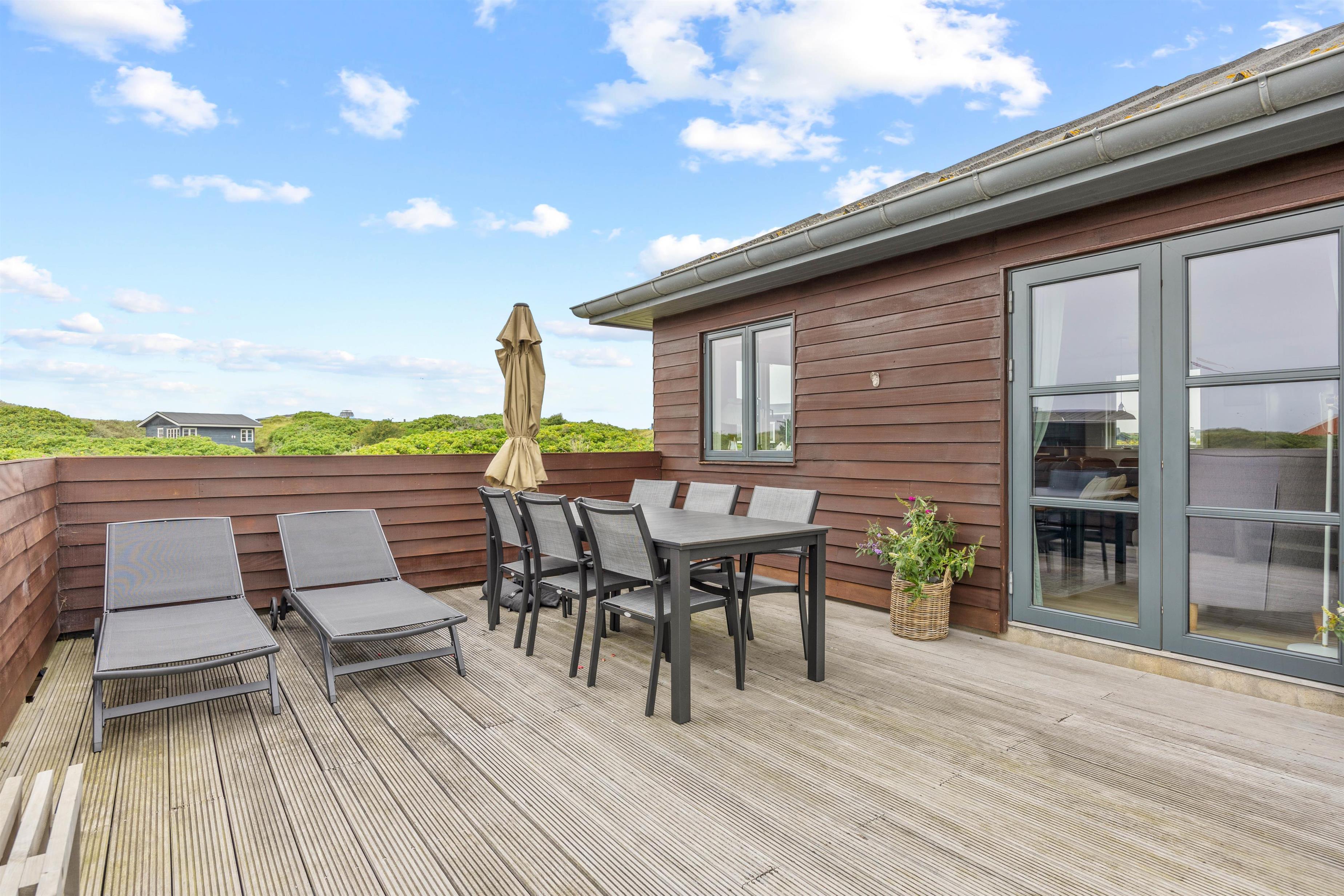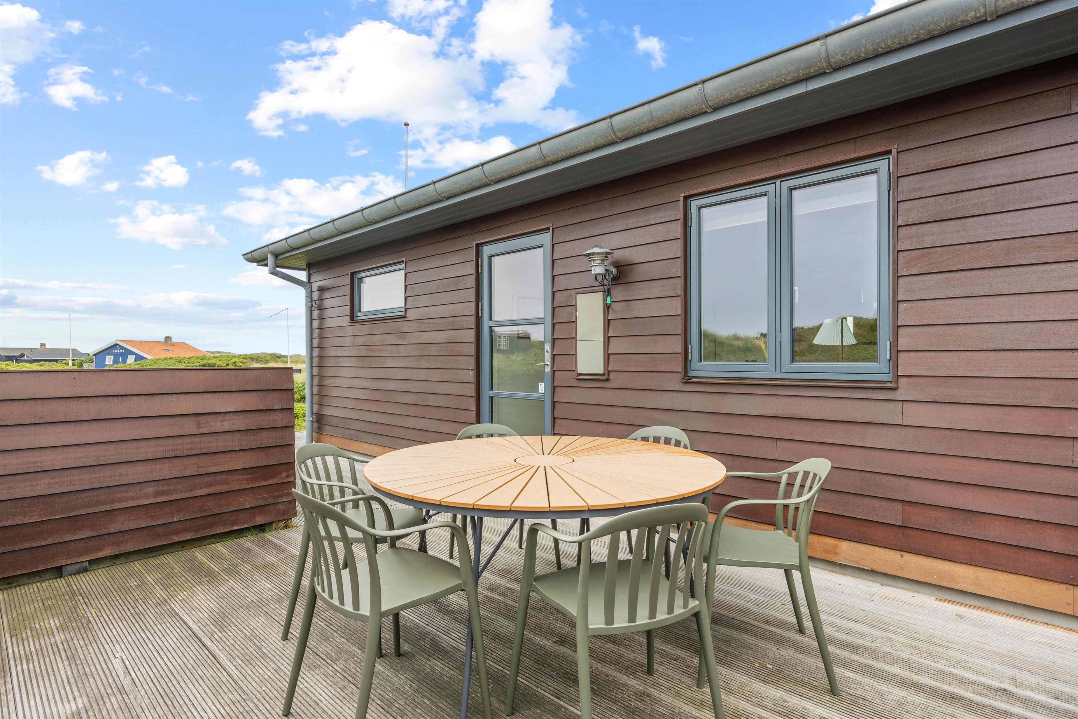 Udendørs byder sommerhuset på en stor, dejlig terrasse, hvor I kan tilbringe de solrige feriedage. Om morgenen kan I sidde på den østvendte del af terrassen med dagens første kop kaffe, mens resten af feriehuset stadig sover.