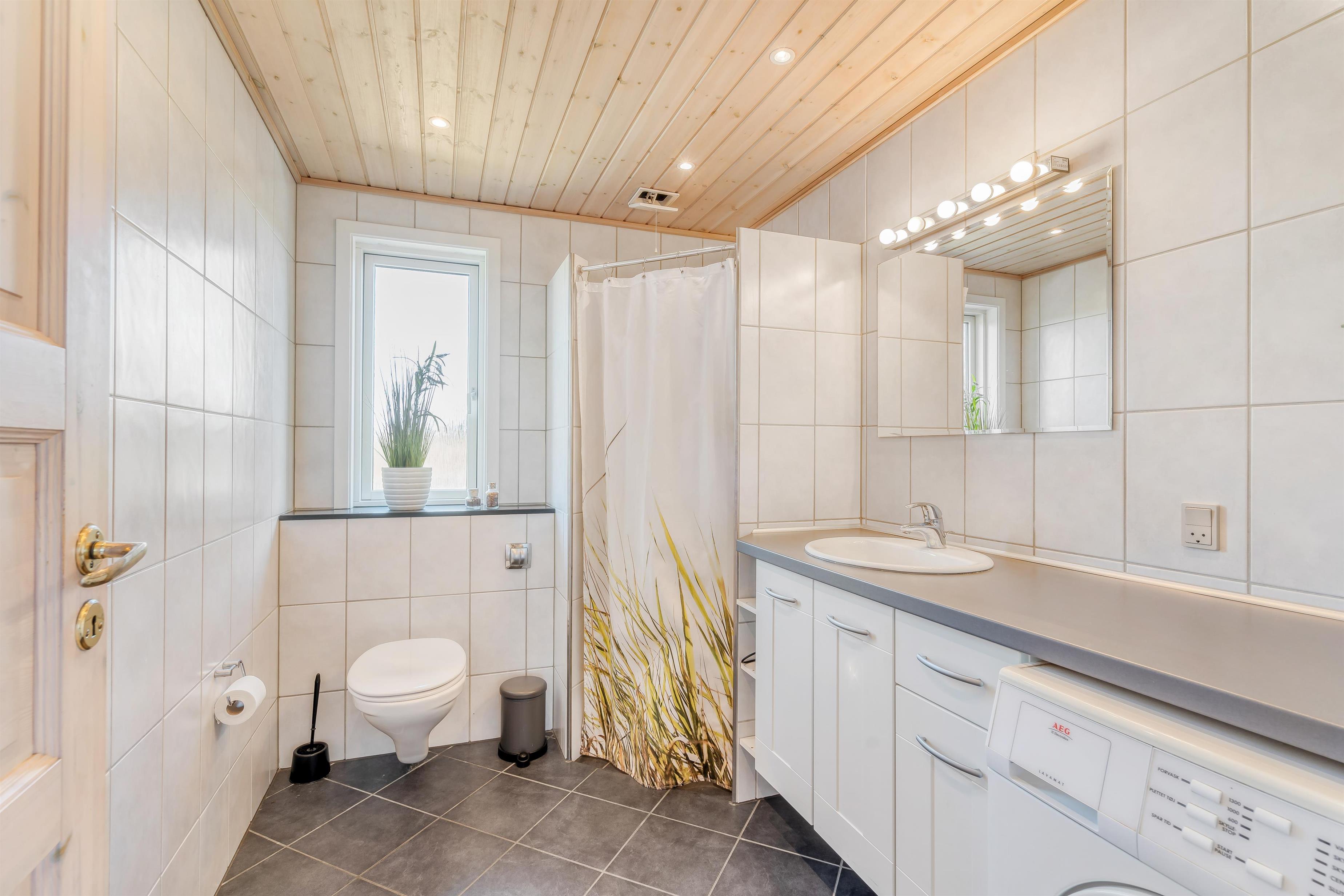 På sommerhusets 100 kvadratmeter finder I desuden 3 gode soveværelser, som I kan fordele jer på, når det er tid til at gå til køjs. 2 af soveværelserne er indrettet med en dobbeltseng hver, og det tredje soveværelse er indrettet med 2 enkeltsenge. Fra morgenstunden slipper I for kolde fødder, da badeværelset har gulvvarme.