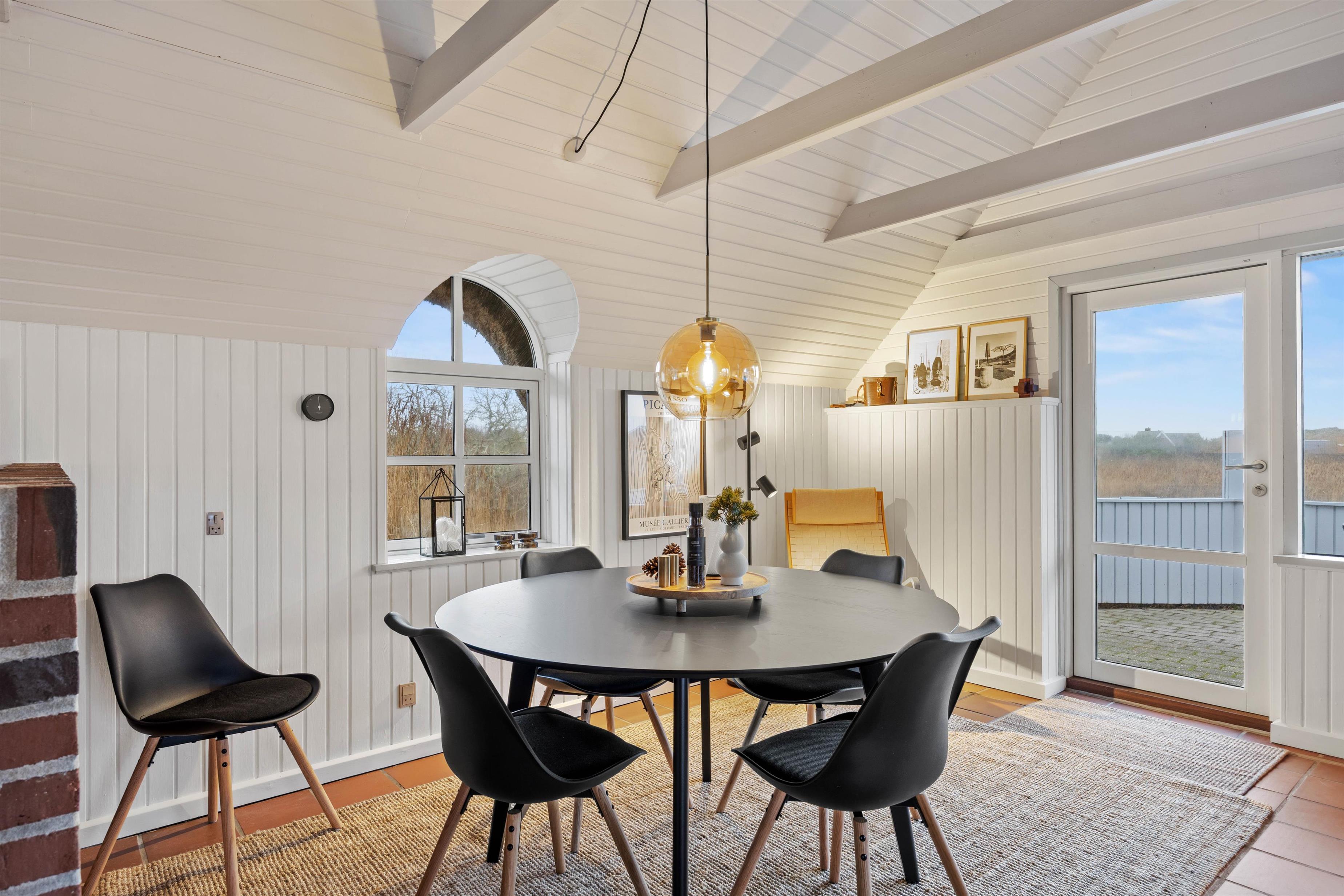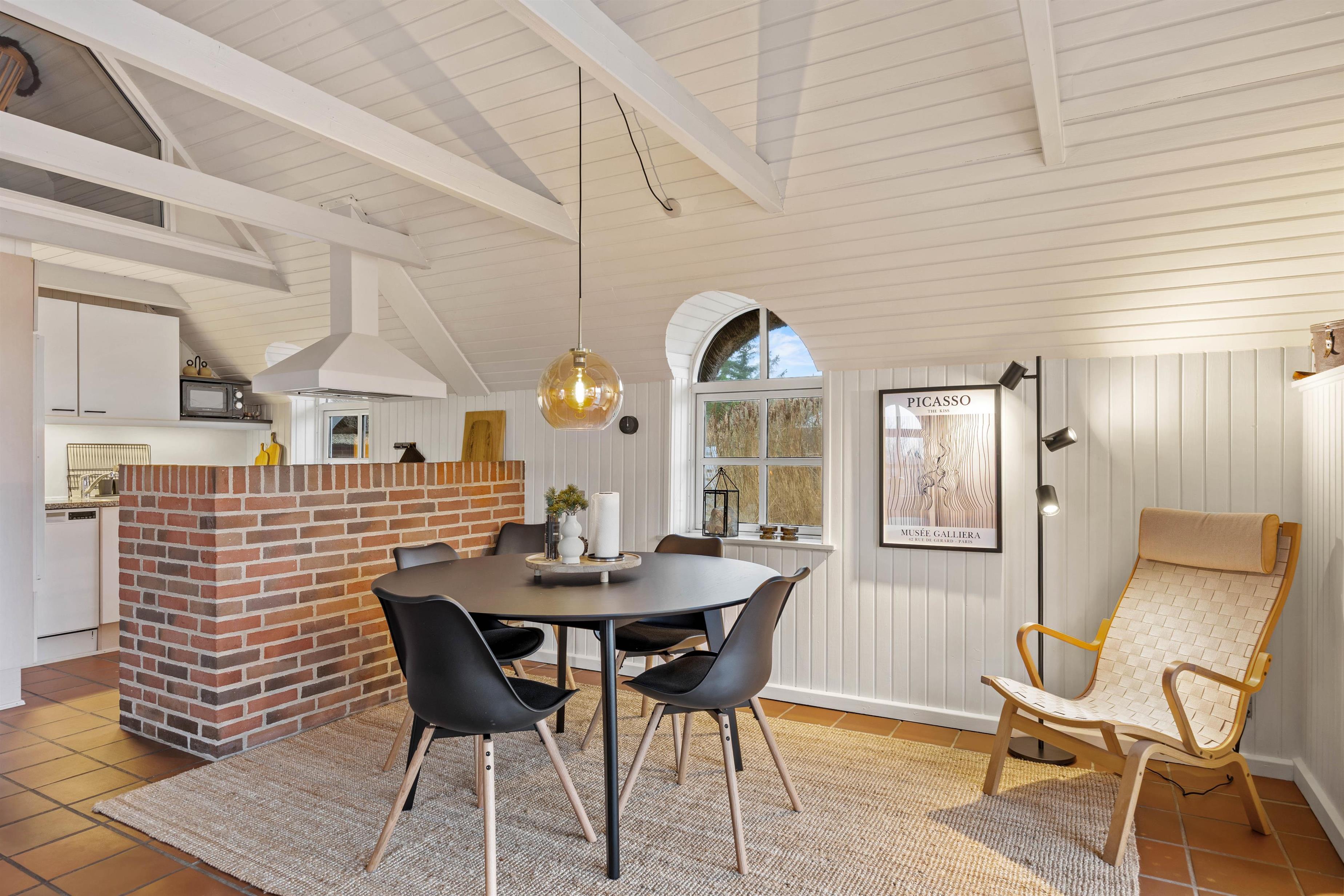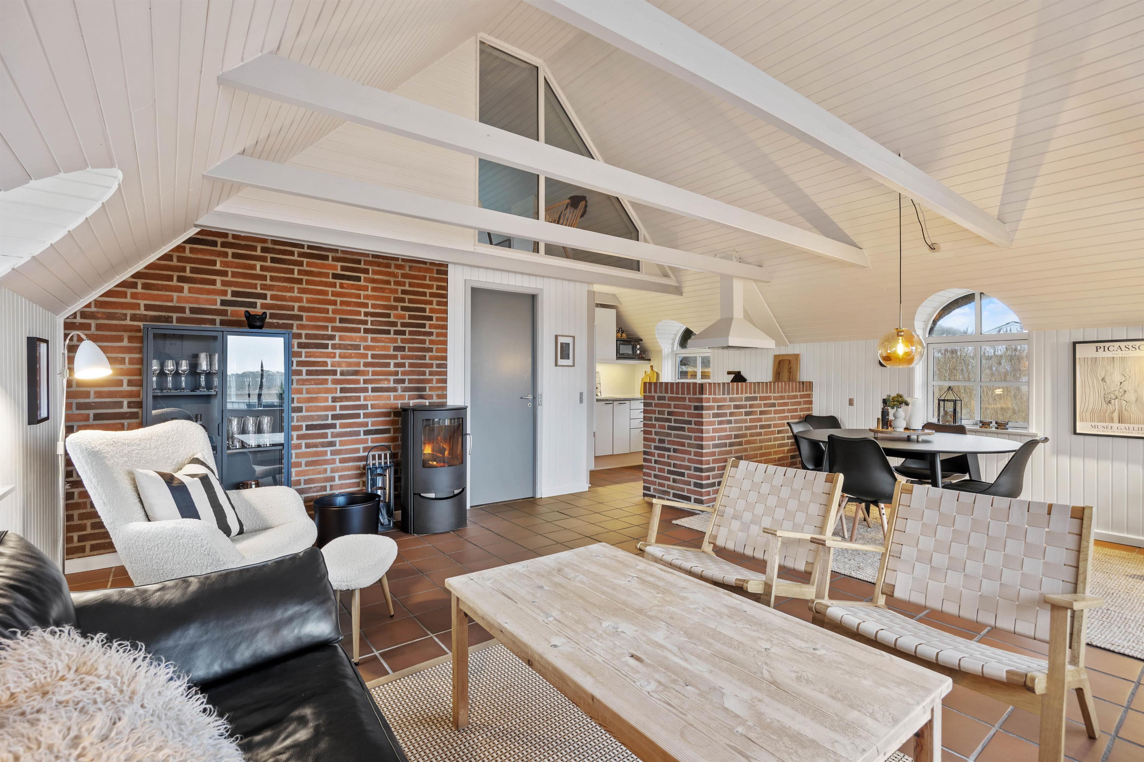 Sommerhuset på Paradisvej 42 har plads til 6 personer og egner sig perfekt til familier eller 2 par, der rejser sammen. I opholdsstuen møder jer en lys og varm atmosfære, som bliver endnu mere hyggelig, når brændeovnen tændes – især efter en dag i den friske luft. Luft-til-luft-varmepumpen sikrer et behageligt indeklima året rundt, og den moderne indretning giver jer en dejlig feriefornemmelse fra første øjeblik. Opholdsstuen er desuden udstyret med en Chromecast, så I nemt kan streame jeres yndlingsfilm og serier. I køkkenet finder I alt, hvad I behøver til afslappede feriedage, inklusiv en opvaskemaskine, der gør det praktiske lettere.