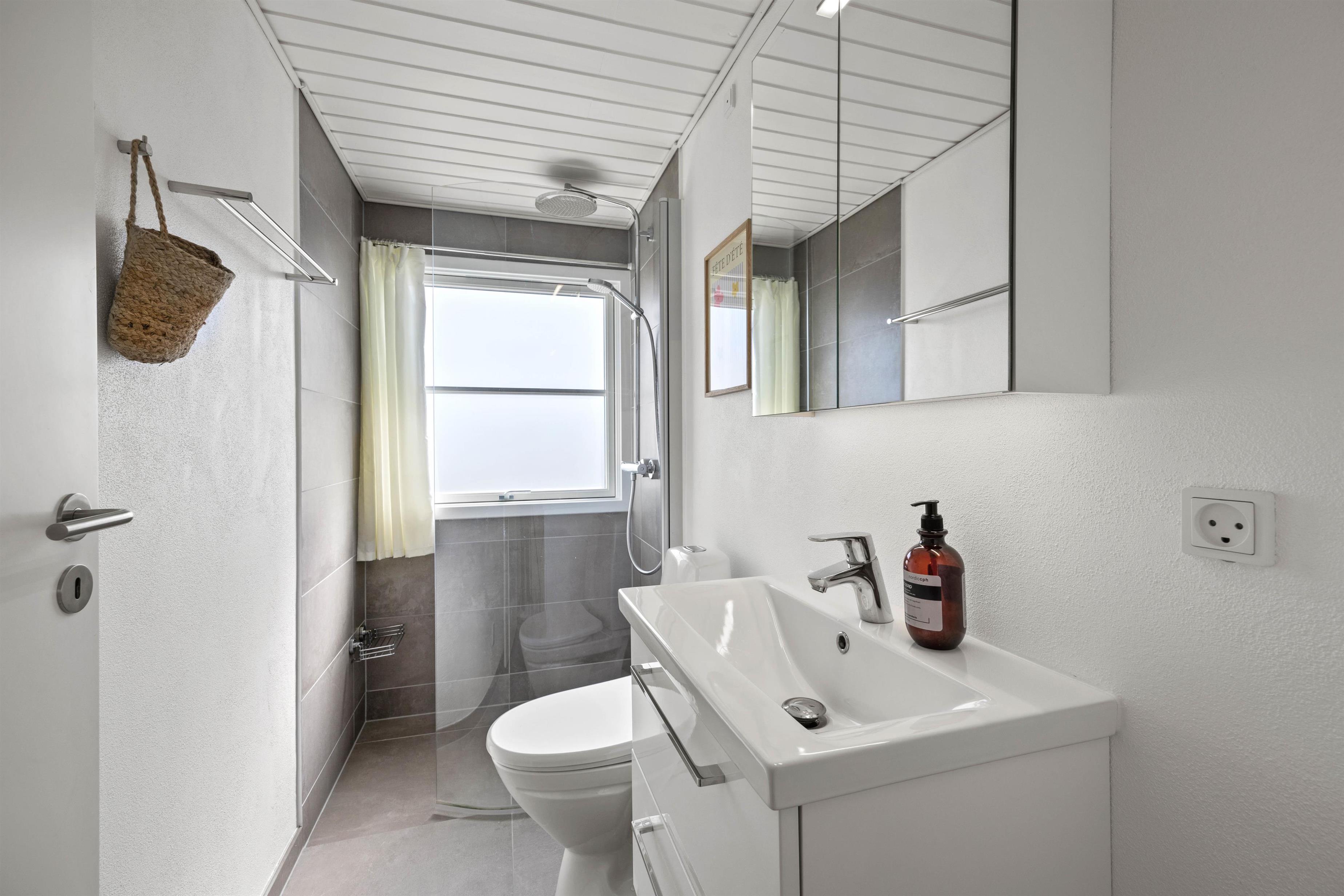 Som feriedagen lakker mod enden, og I trænger til at samle ny energi til kommende feriedage, så venter der i sommerhusets 3 soveværelser, 2 komfortable dobbeltsenge og 2 enkeltsenge. Når I står op om morgenen, skal I ikke bekymre jer om kolde fødder på badeværelset, der i øvrigt er holdt i en lys og moderne stil, for her er der indlagt gulvvarme.