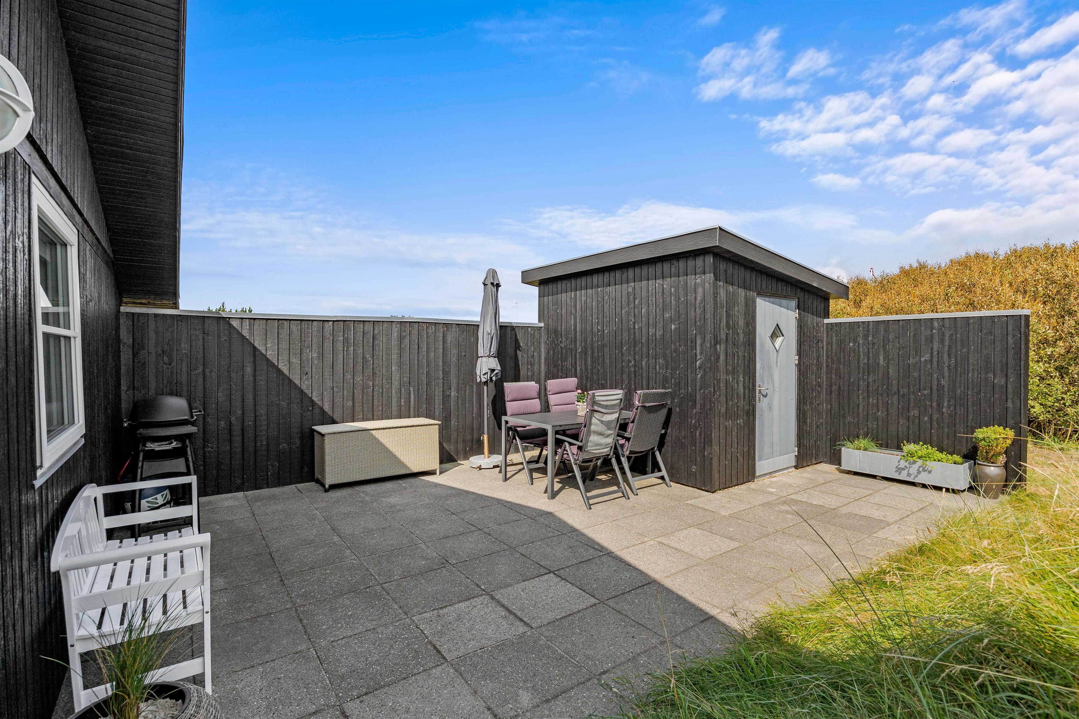 På terrasserne, hvoraf en del er delvist overdækket og en anden afskærmet, kan I finde jer til rette i havemøbler og liggestole på en god plads i solen, mens børnene leger på den natursmukke grund. Her er mange muligheder og flere hyggekroge at nyde udelivet på i ferien.