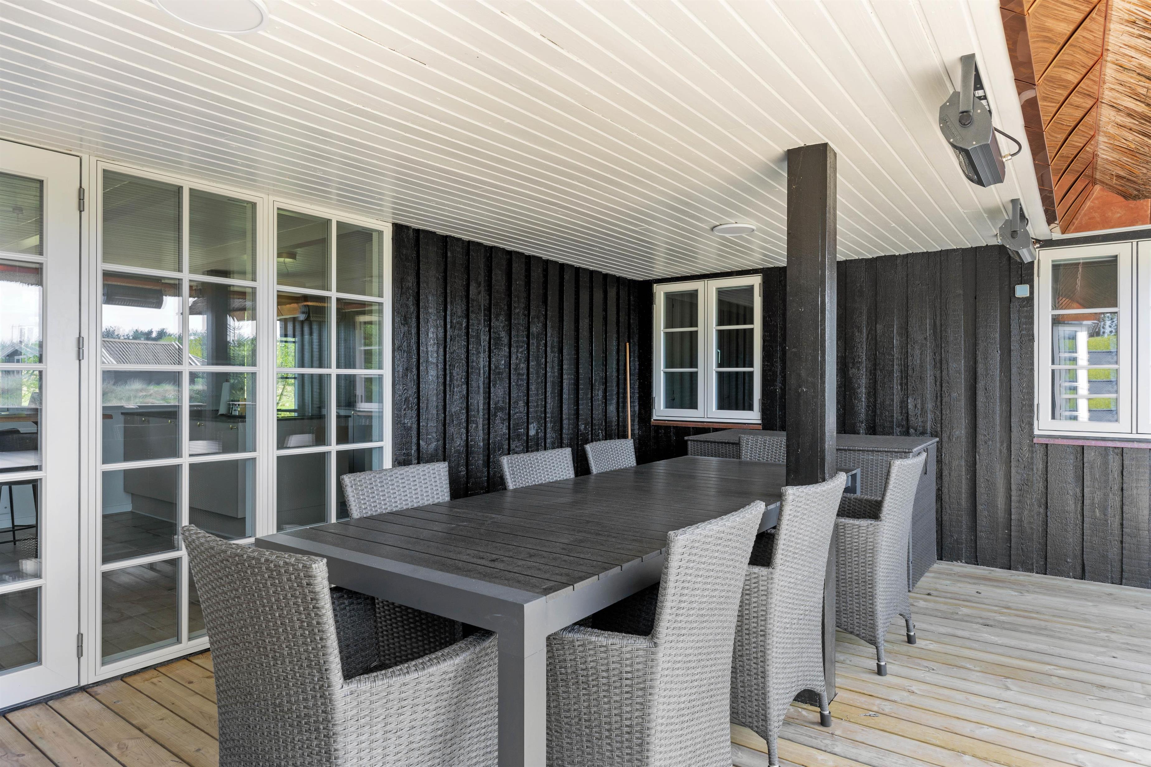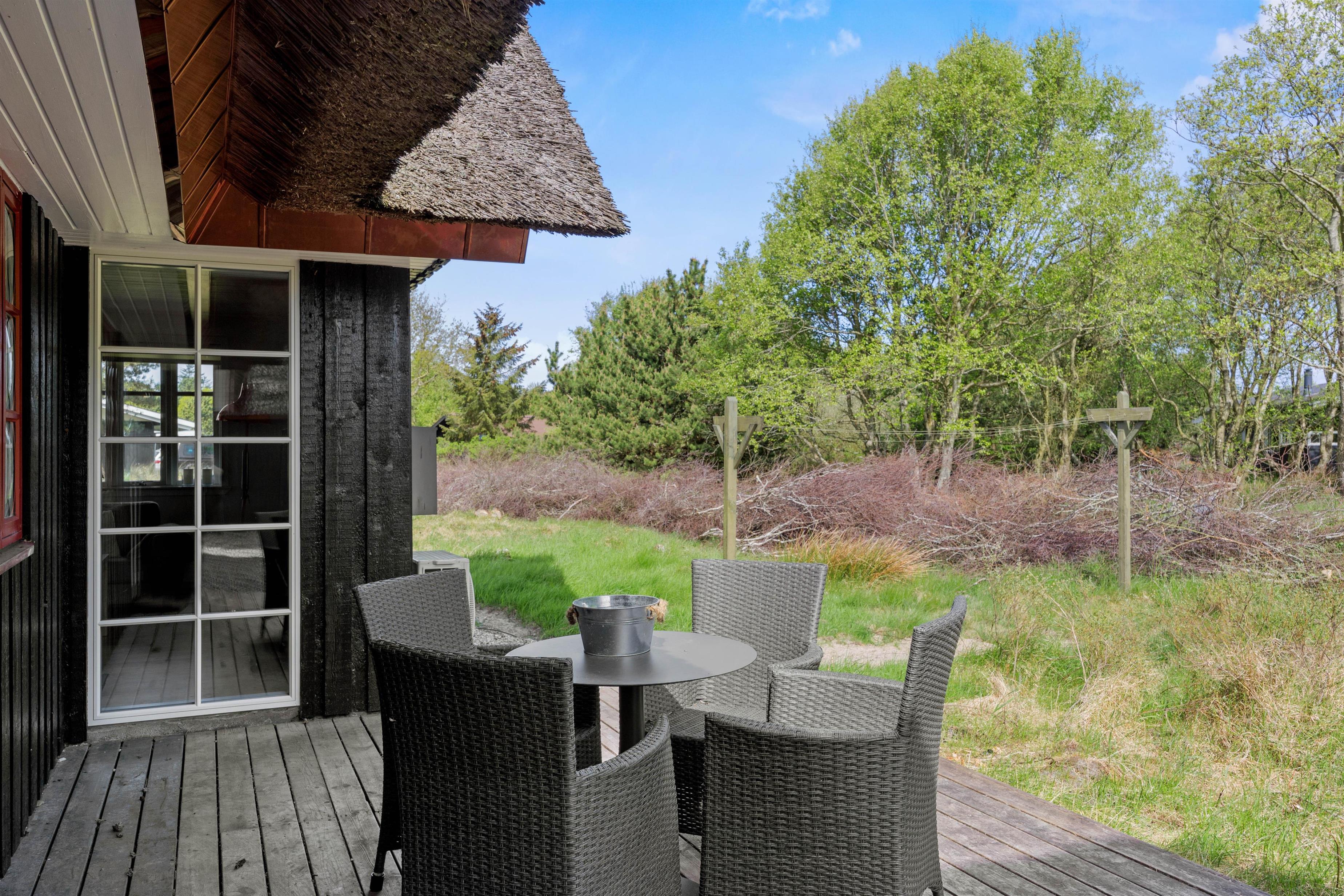 På terrassen kan I nyde de varme sommerdage, læne jer tilbage i havemøblerne eller læse en god krimi i skyggen. En del af terrassen er nemlig overdækket. Fuldend aftenen med en lækker middag, som med fordel kan tilberedes på sommerhusets gasgrill. Efter maden kan I se den smukke solnedgang på stranden 1000 meter fra jeres ferieadresse.