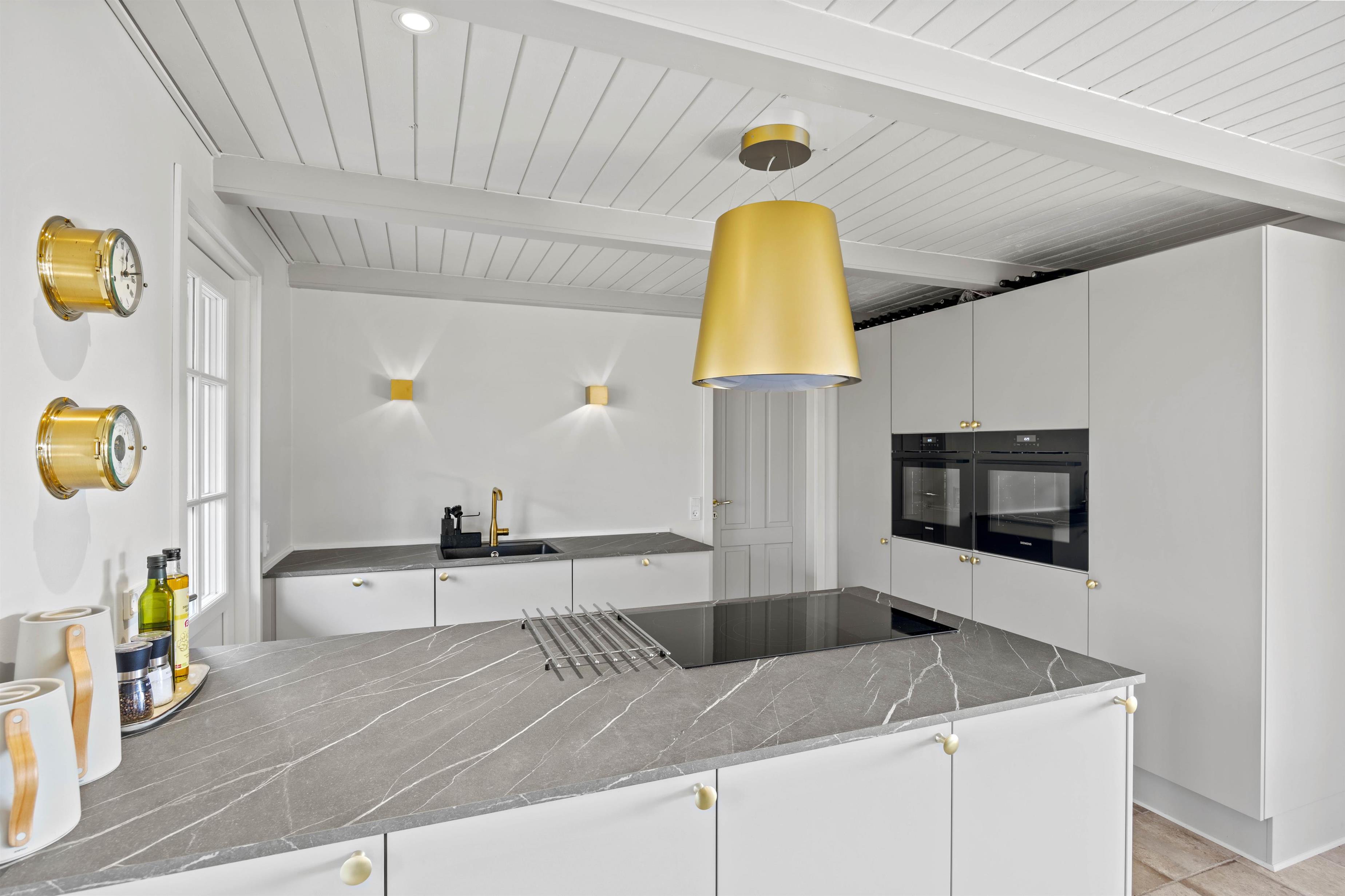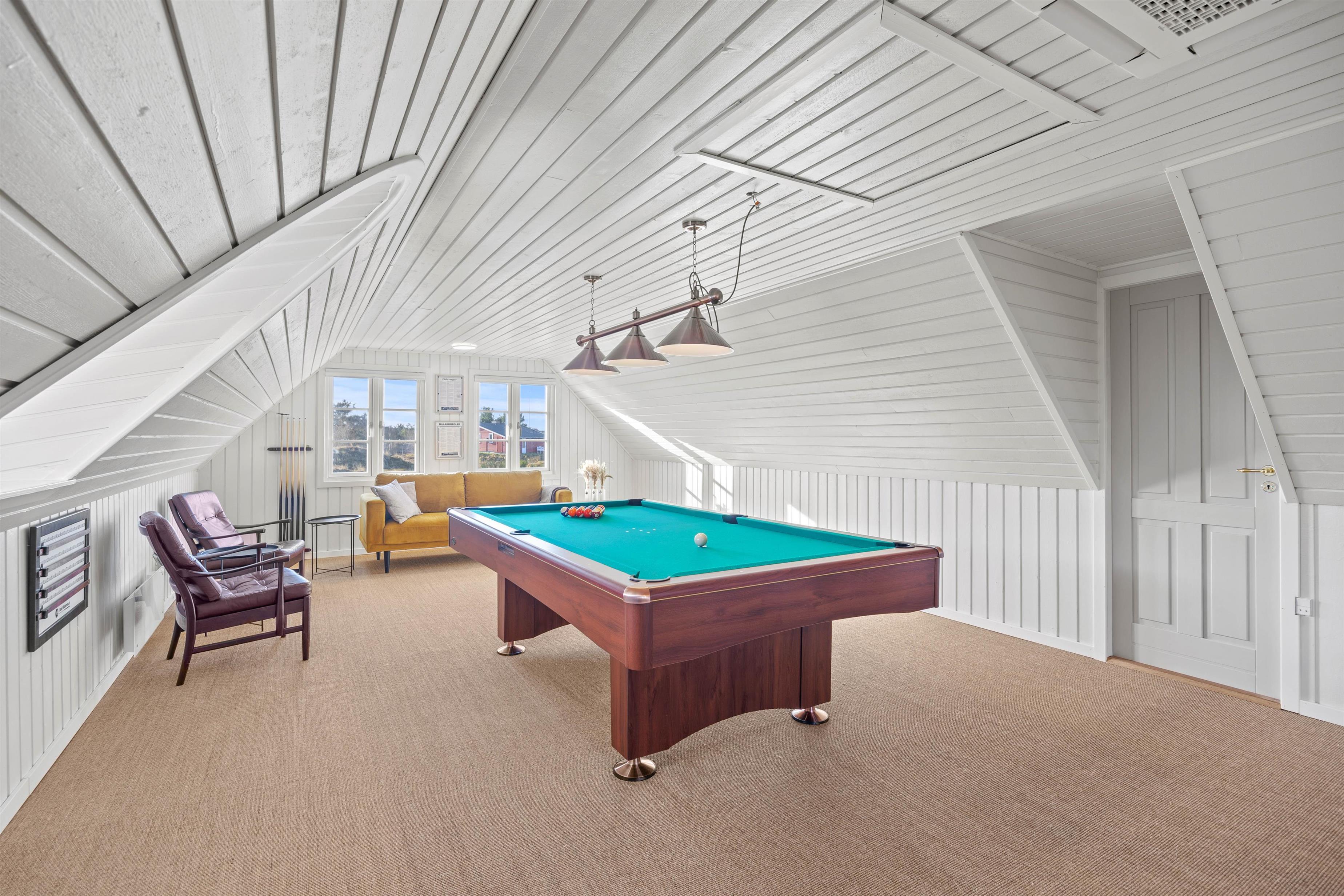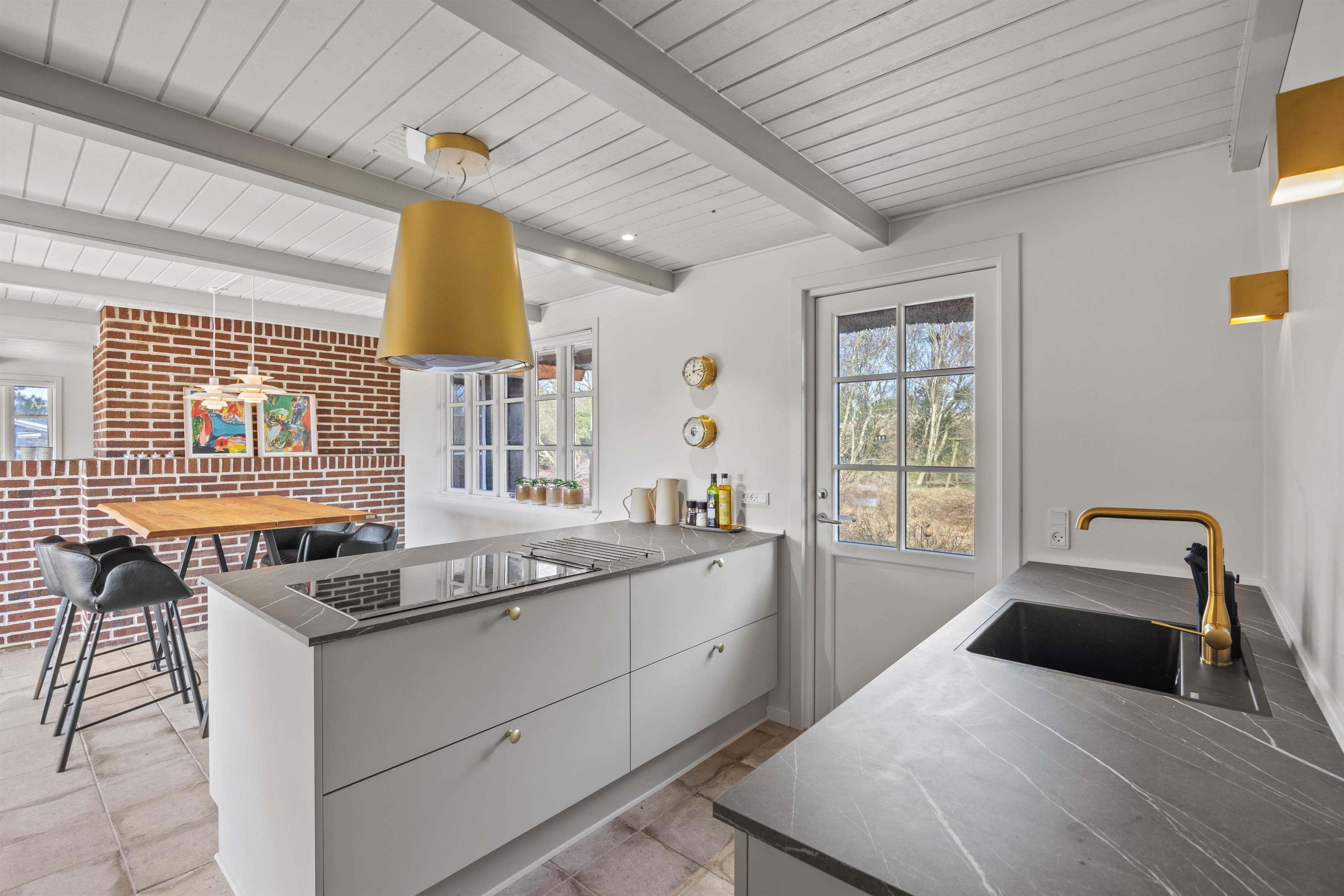 Feriehusets samlingspunkt er det store alrum, der forener køkken og stue. Her er en smagfuld indretning og afslappende atmosfære. I det funktionelle køkken, kan der tilberedes dejlig mad, som samler familien omkring det lange spisebord. Afslut aftenen med en hyggelig brætspilsaften, på sofaen eller måske med et spil pool i aktivitetsrummet? Med både billard- og bordtennis bord er I lovet mange timers sjov, mens I kan få glæde af saunaen efter en lang gåtur på stranden.