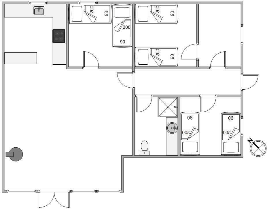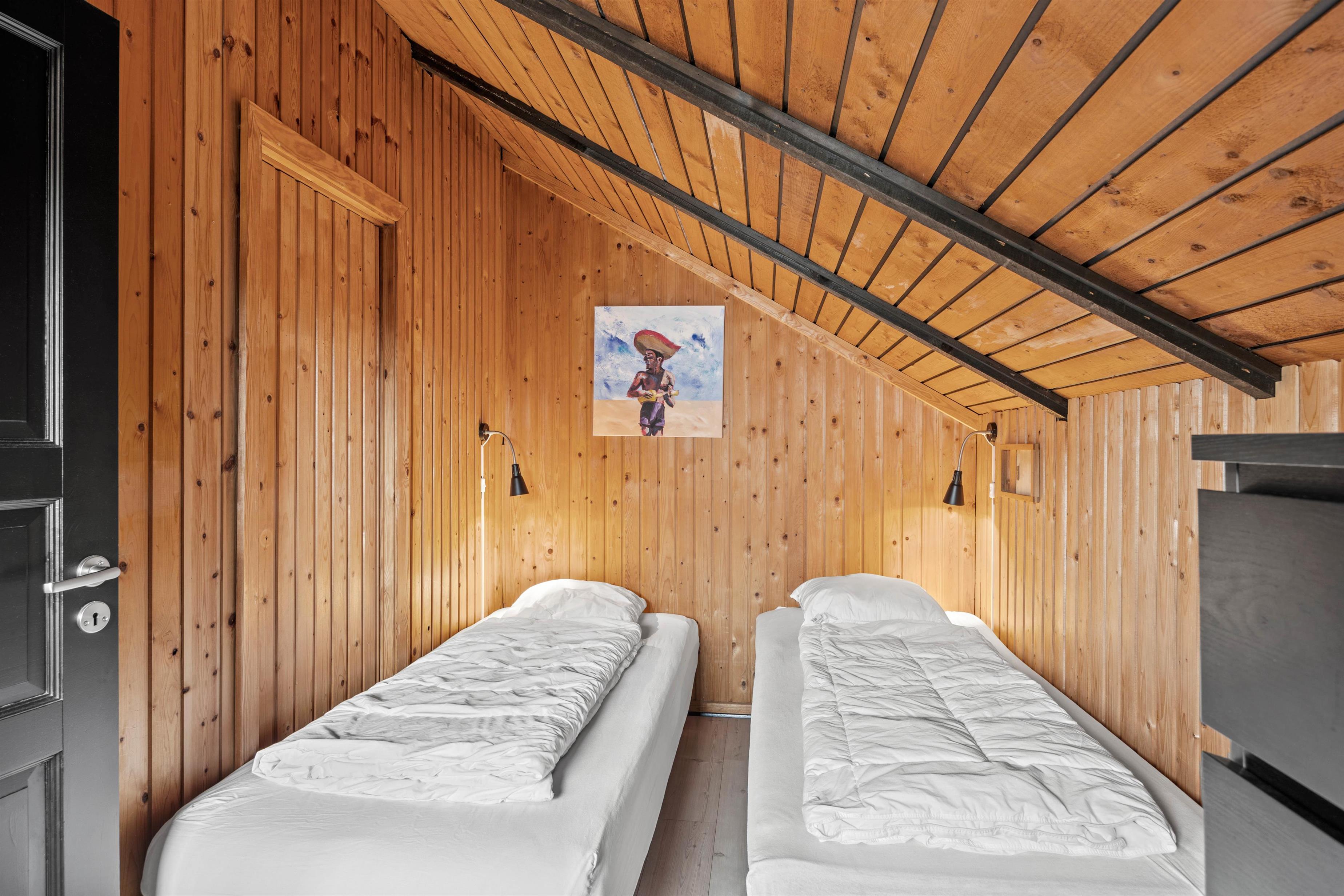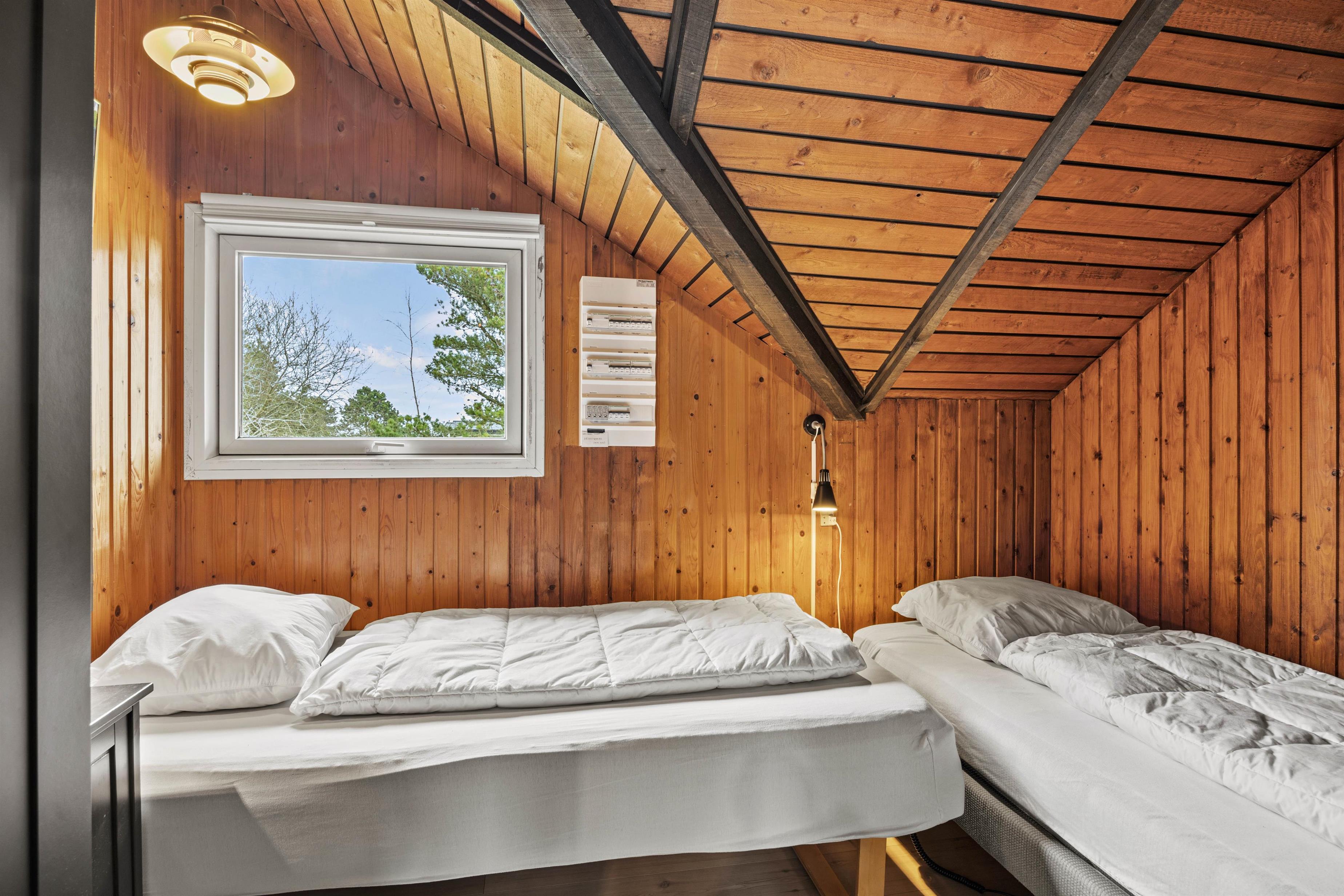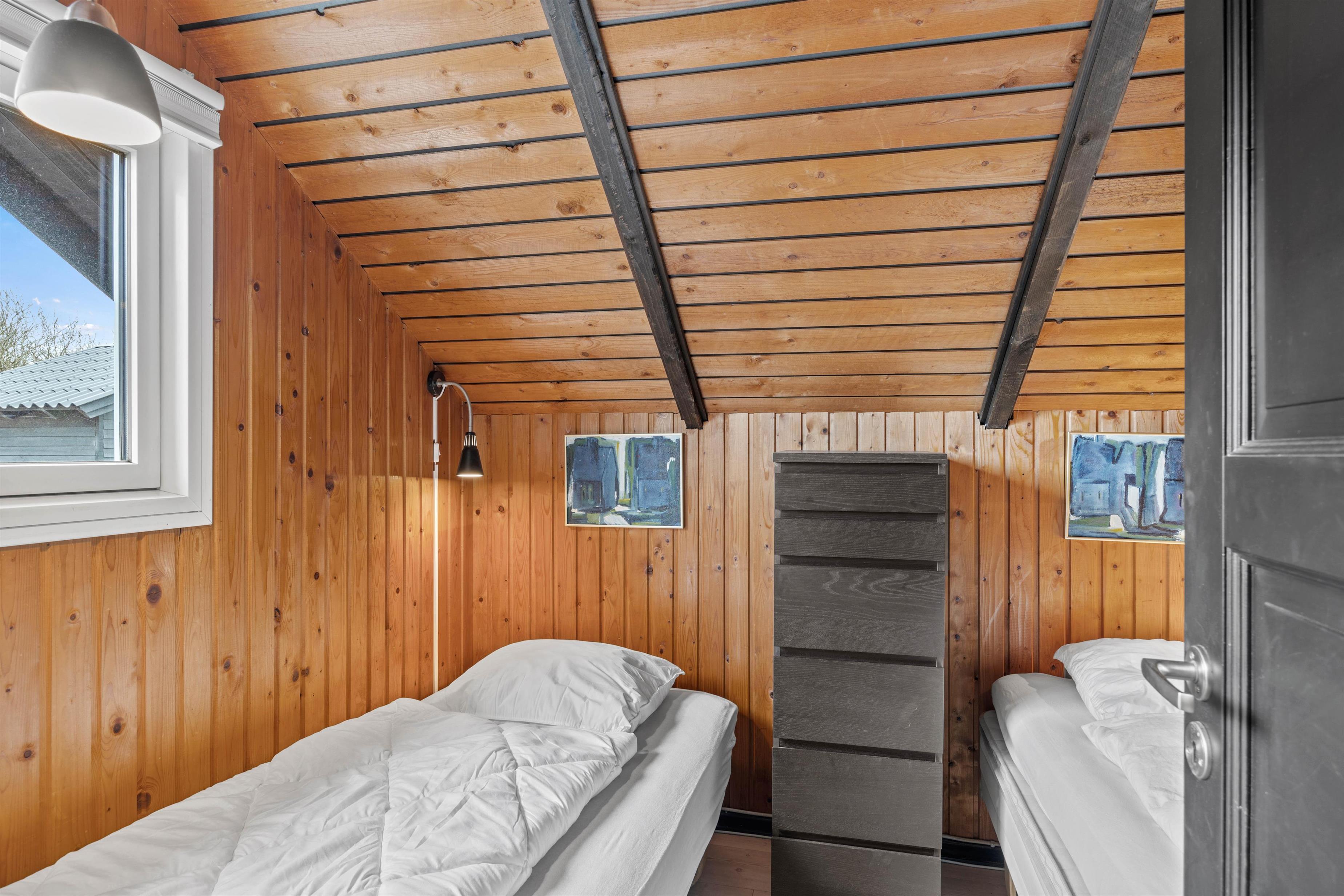 Sommerhuset rummer 6 sovepladser fordelt på 3 soverum, som alle er indrettet med gode enkeltsenge. Badeværelset byder på gulvvarme, som sikrer jer en behagelig og lun start på dagen, uanset årstiden.