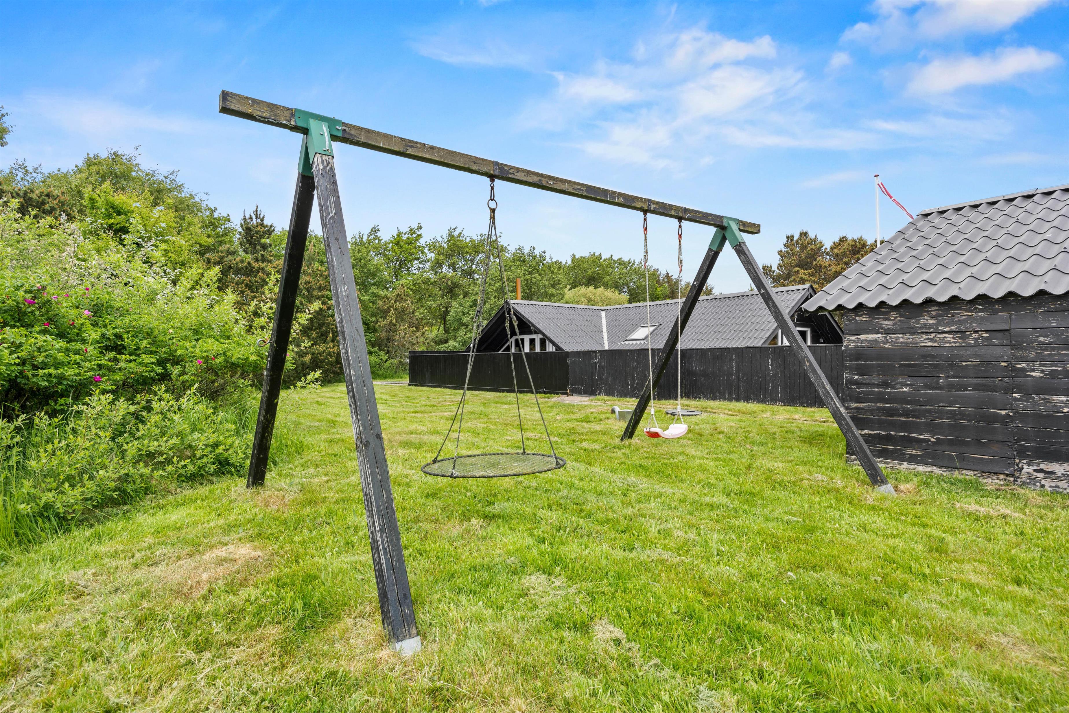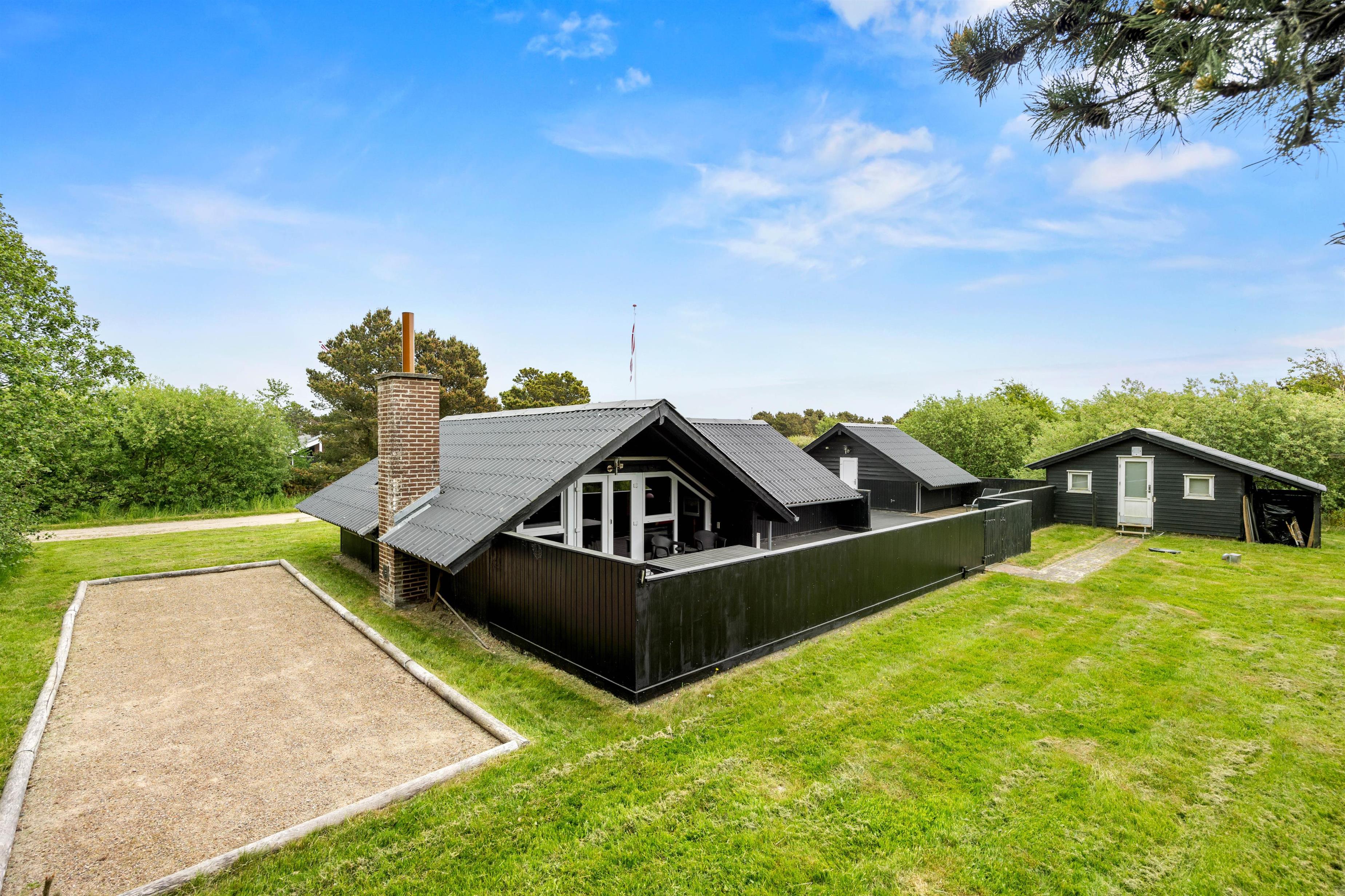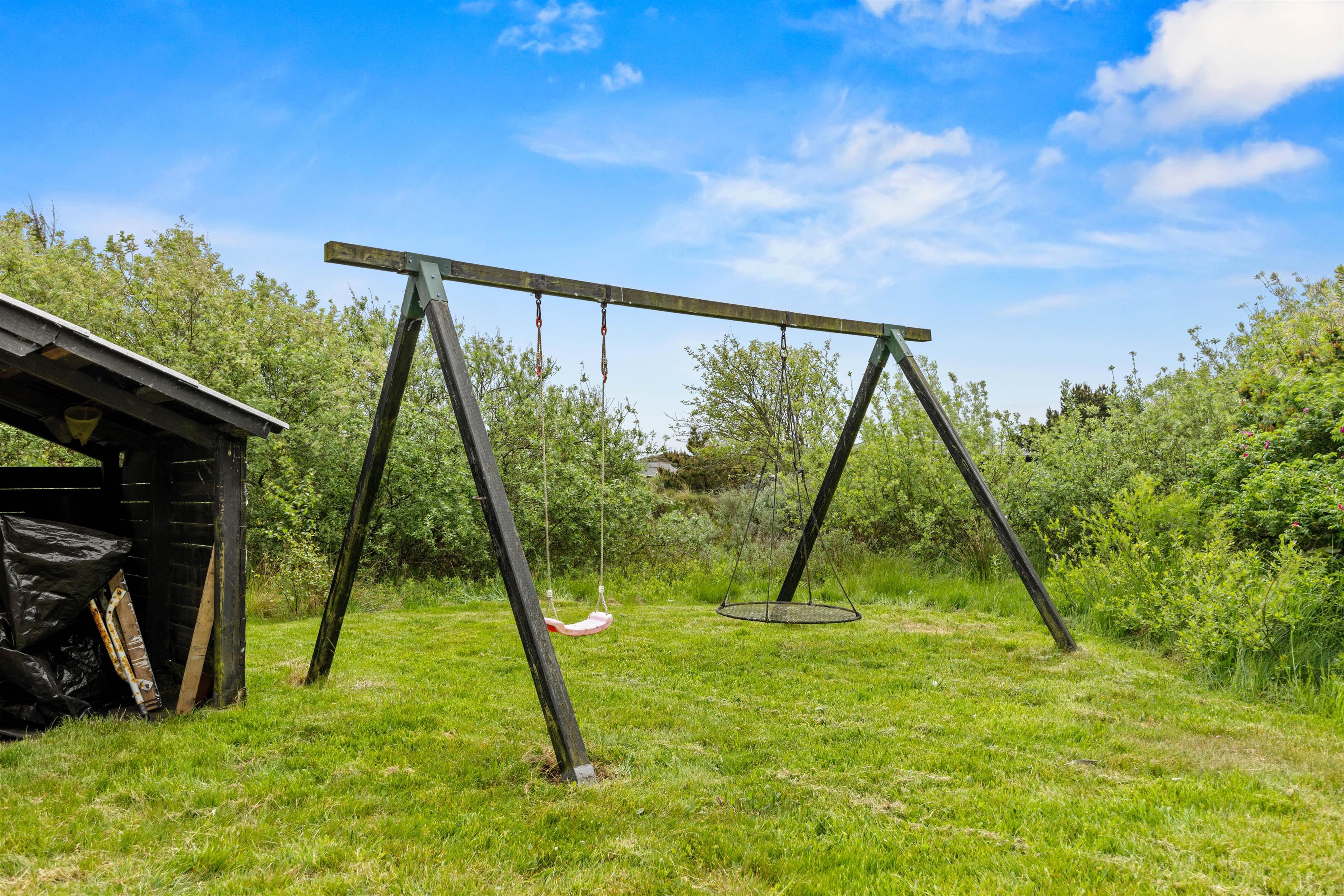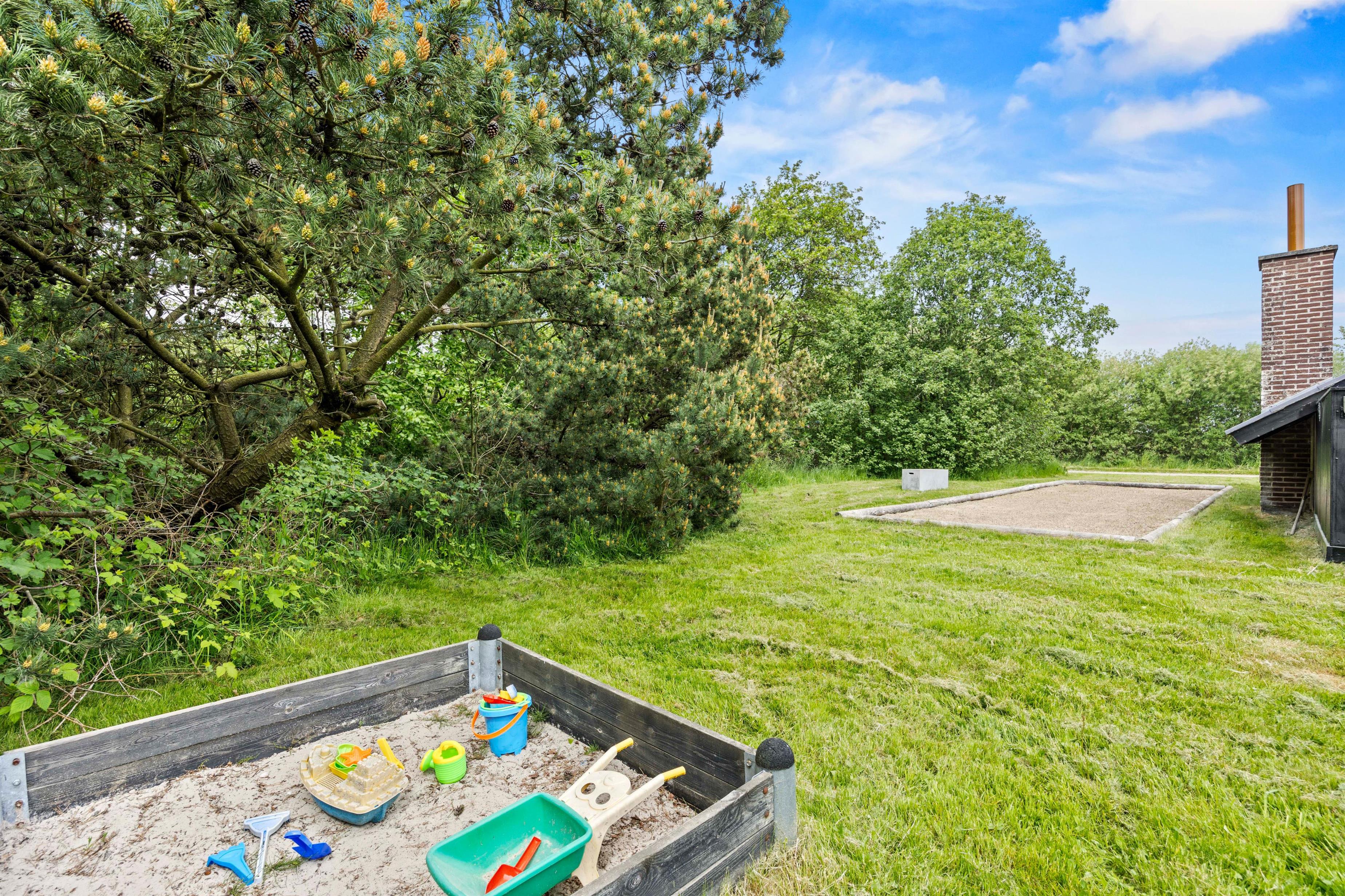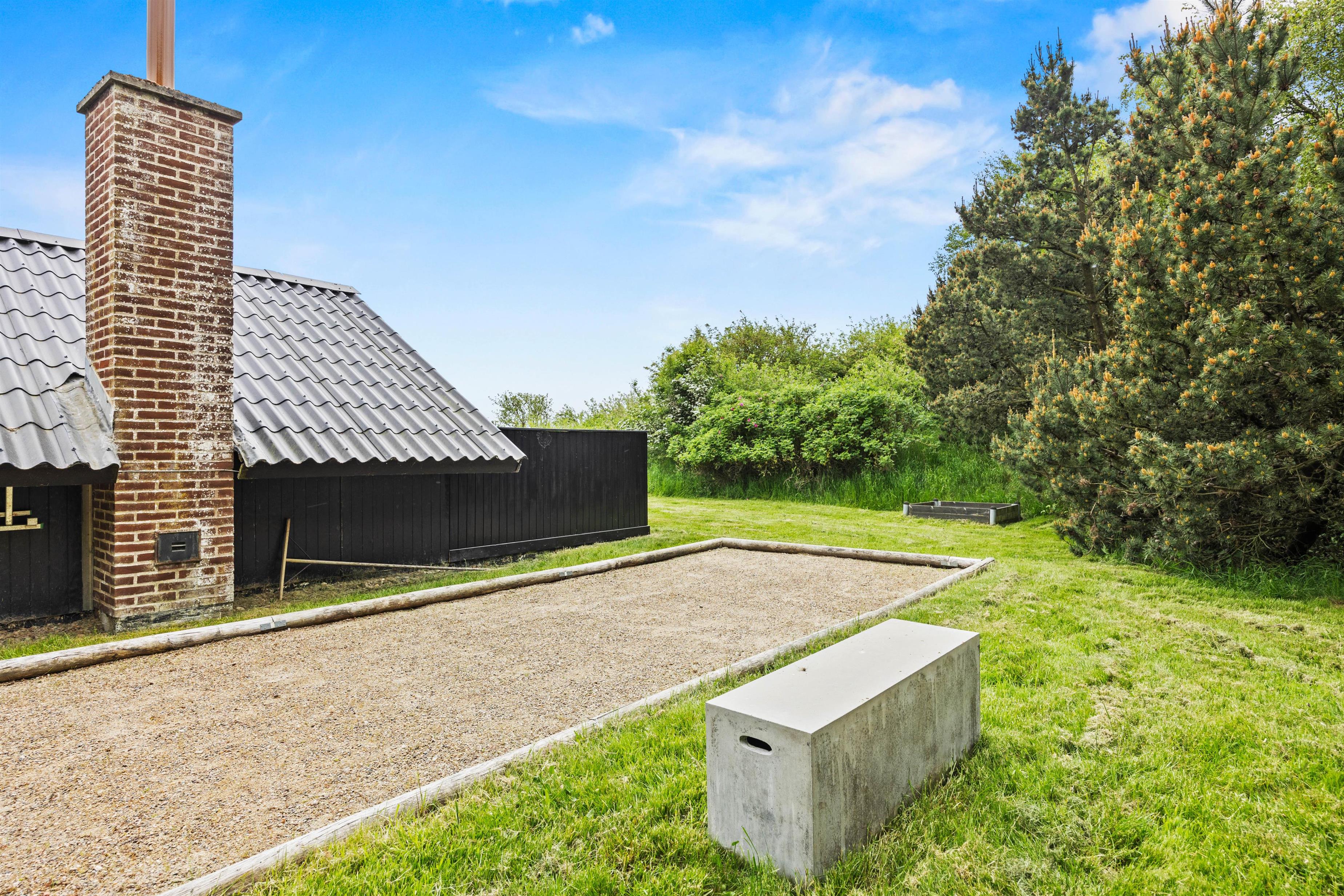 Sommerhuset på Gøgevej 37 indbyder til hyggelige stunder både ude og inde. Den lukkede terrasse er et oplagt sted at samles til morgenkaffen eller nyde en lækker grillmiddag, mens solen går ned. Der er tænkt på hele familien – børnene kan more sig med gynge og sandkasse i haven, mens de voksne slapper af i liggestolene eller spiller Petanque på banen ved huset.
