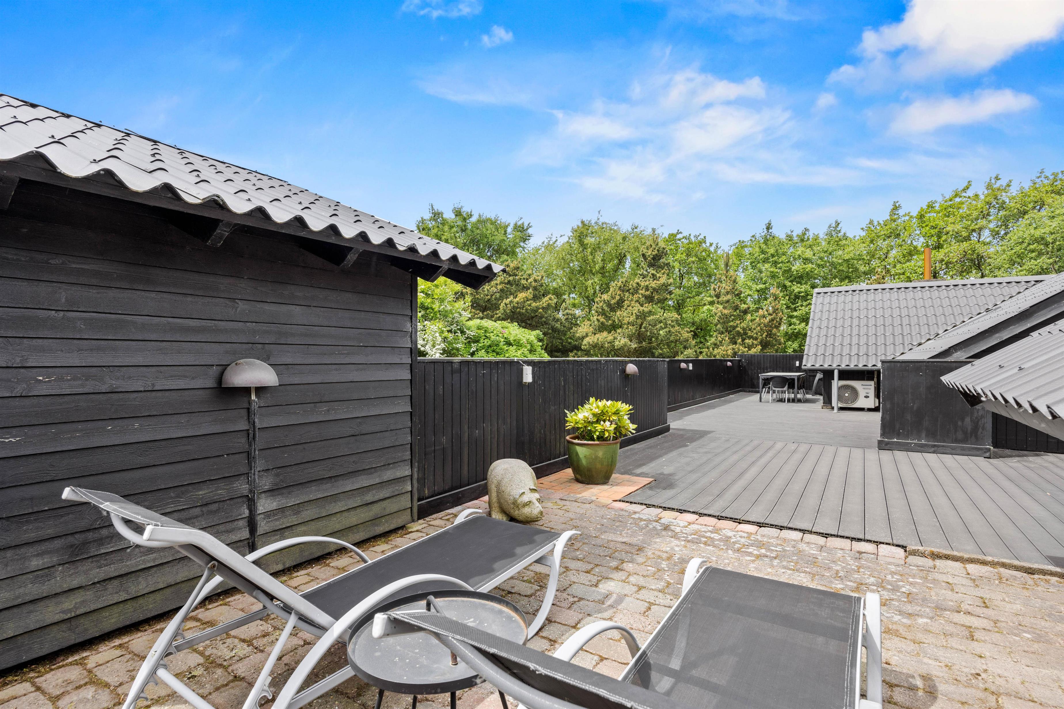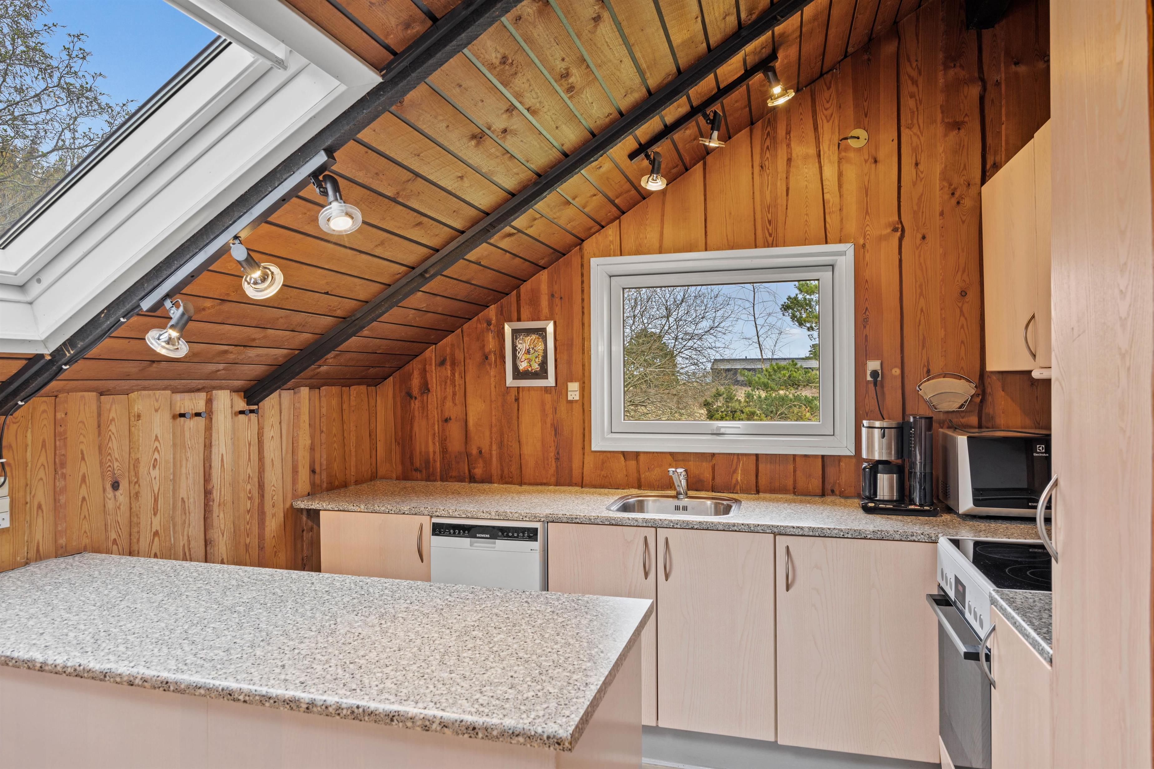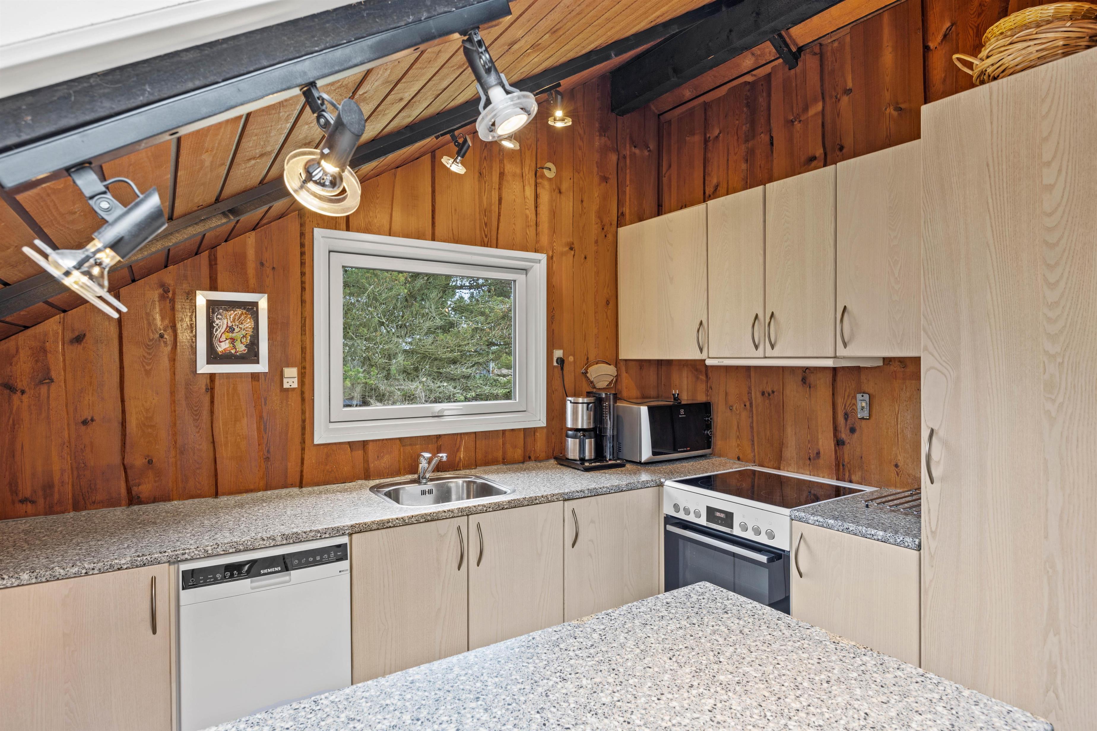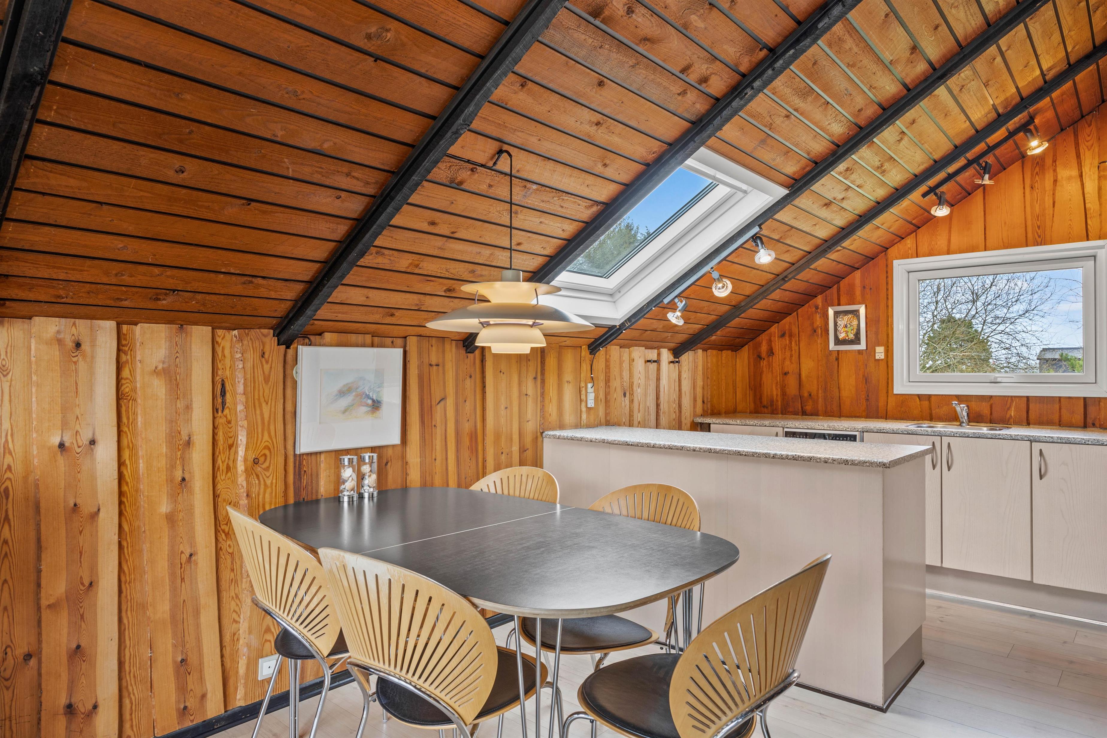 I opholdsrummet finder I en brændeovn, der skaber en varm og hyggelig atmosfære – især på kølige aftener eller i vinterhalvåret. Det knitrende ildsted bliver hurtigt samlingspunktet for hele familien, hvor I kan slappe af med en god bog, spille spil eller bare nyde roen efter en dag med strand, natur og oplevelser. Brændeovnen suppleres af en varmepumpe, der sikrer et behageligt indeklima året rundt.