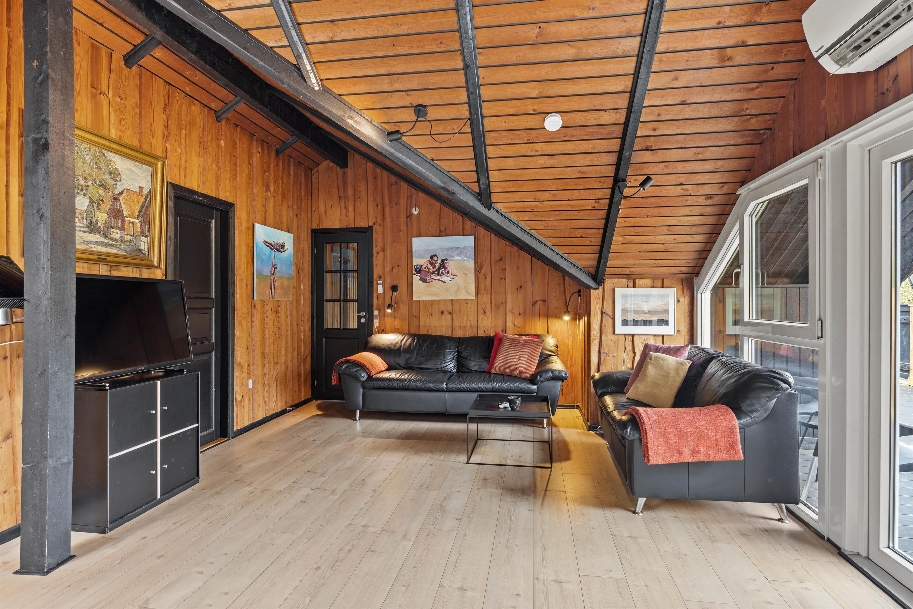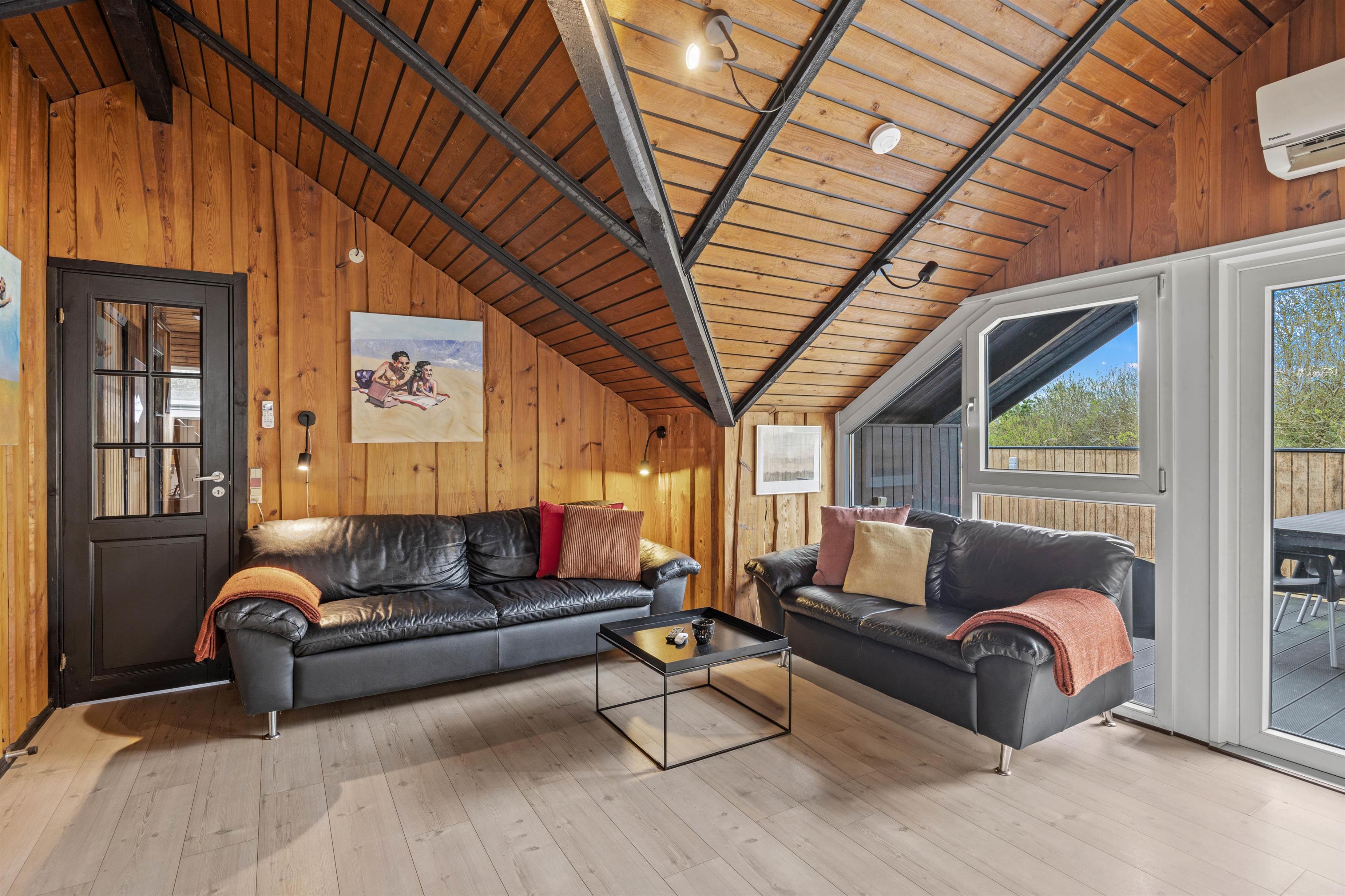 I sommerhuset er der plads til både afslapning og samvær, og de praktiske rammer gør det let at nyde ferien fuldt ud. Der er trægulve og trælofter, konfortable møbler i opholdsrummet, både sofaer og spisestuestole afslapning, TV eller spil og også til at indtage jeres måltider fra det veludstyrede køkken, hvi I da ikke spiser på terrassen.