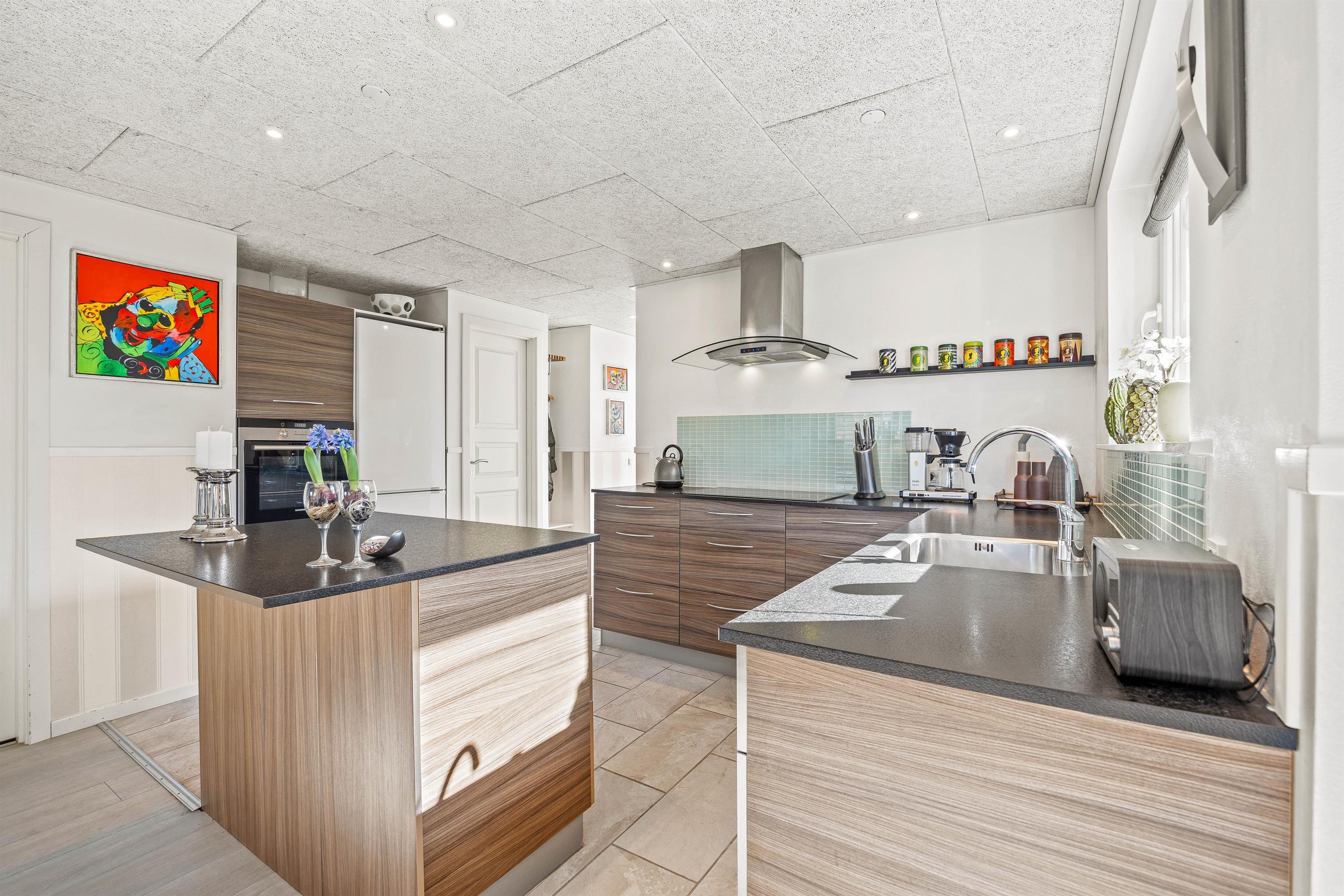 Den store indbydende træterrasse er det ideelle sted at nyde solrige dage på. Terrassen er sydvestvendt, og I kan derfor nyde solen hele dagen. Foretrækker I et skyggefuldt sted, er en del af terrassen overdækket, så I altid kan finde et godt sted at sidde uanset behov.