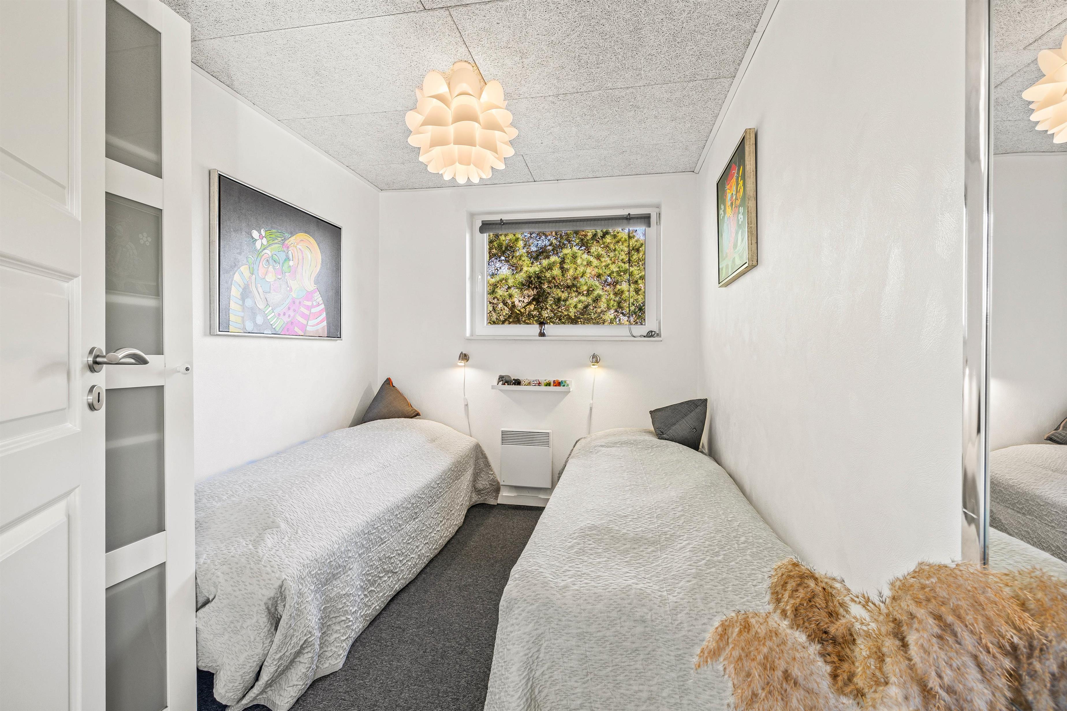 Den røde tråd i indretningen fortsætter ud på sommerhusets 2 badeværelser – begge med gulvvarme. Her har I altså ingen trængsel om morgenen, når alle skal gøre sig klar. De 3 soverum, hvoraf 2 er med dobbeltsenge og 1 med enkeltsenge, er alle lyse og komfortabelt indrettet med gode senge og skabe.