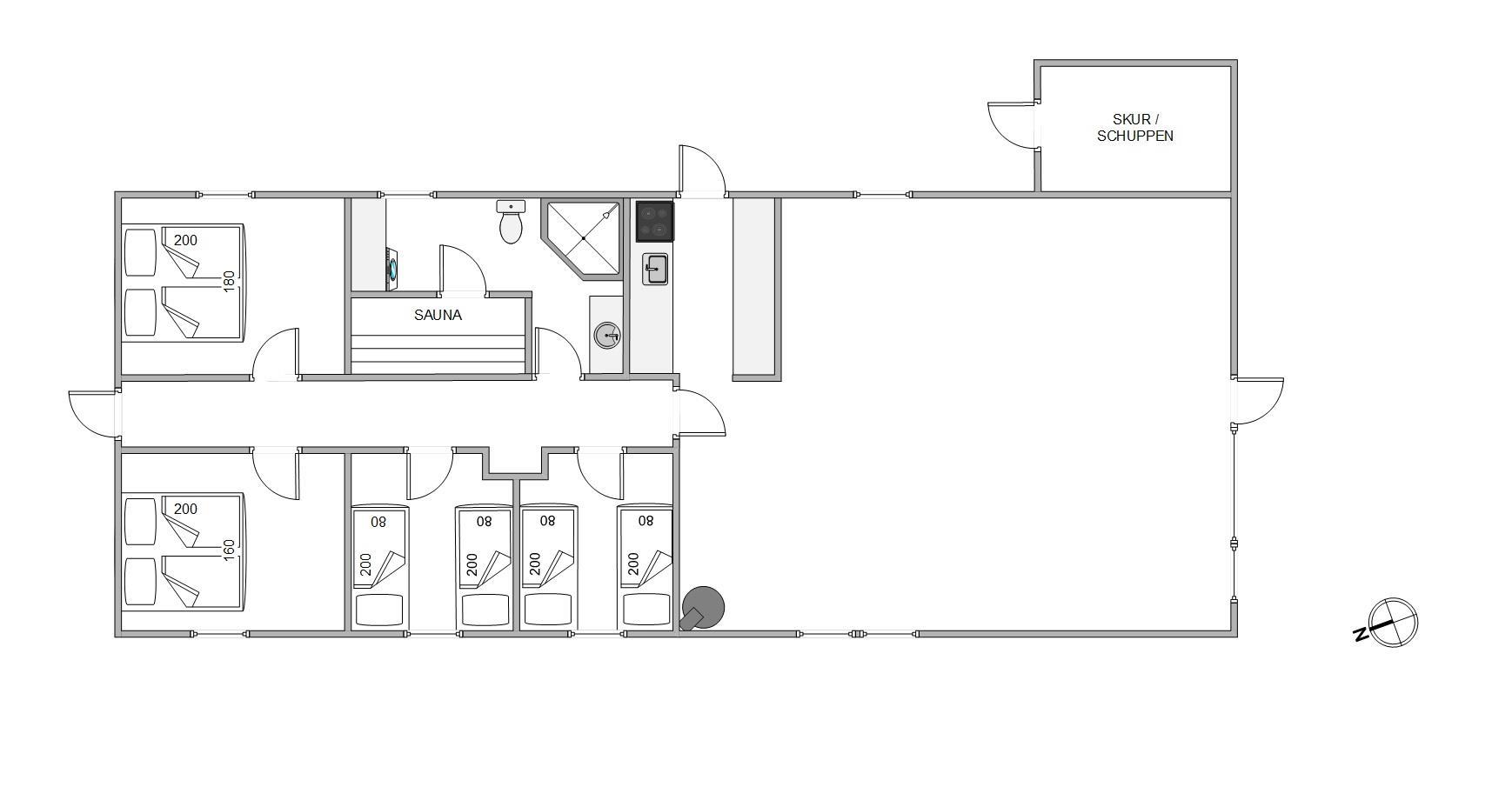 Når feriedagen så småt lakker mod enden, er det sommerhusets 3 soveværelser I skal søge mod. De 3 soveværelser er indrettet med i alt 2 dobbeltsenge og 2 enkeltsenge, som I kan få jeres skønhedssøvn i, så I kan få samlet ny energi til resten af ferien.