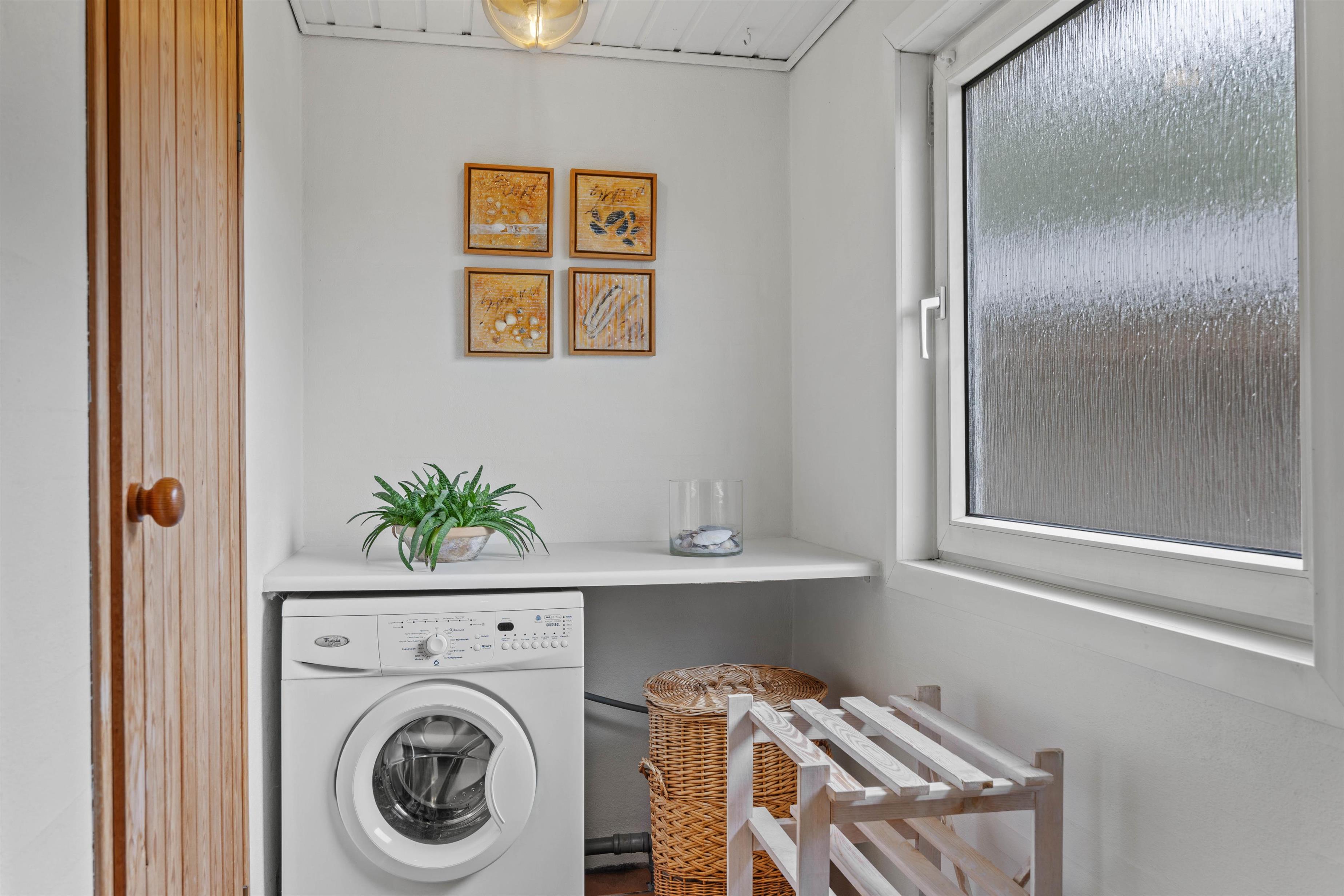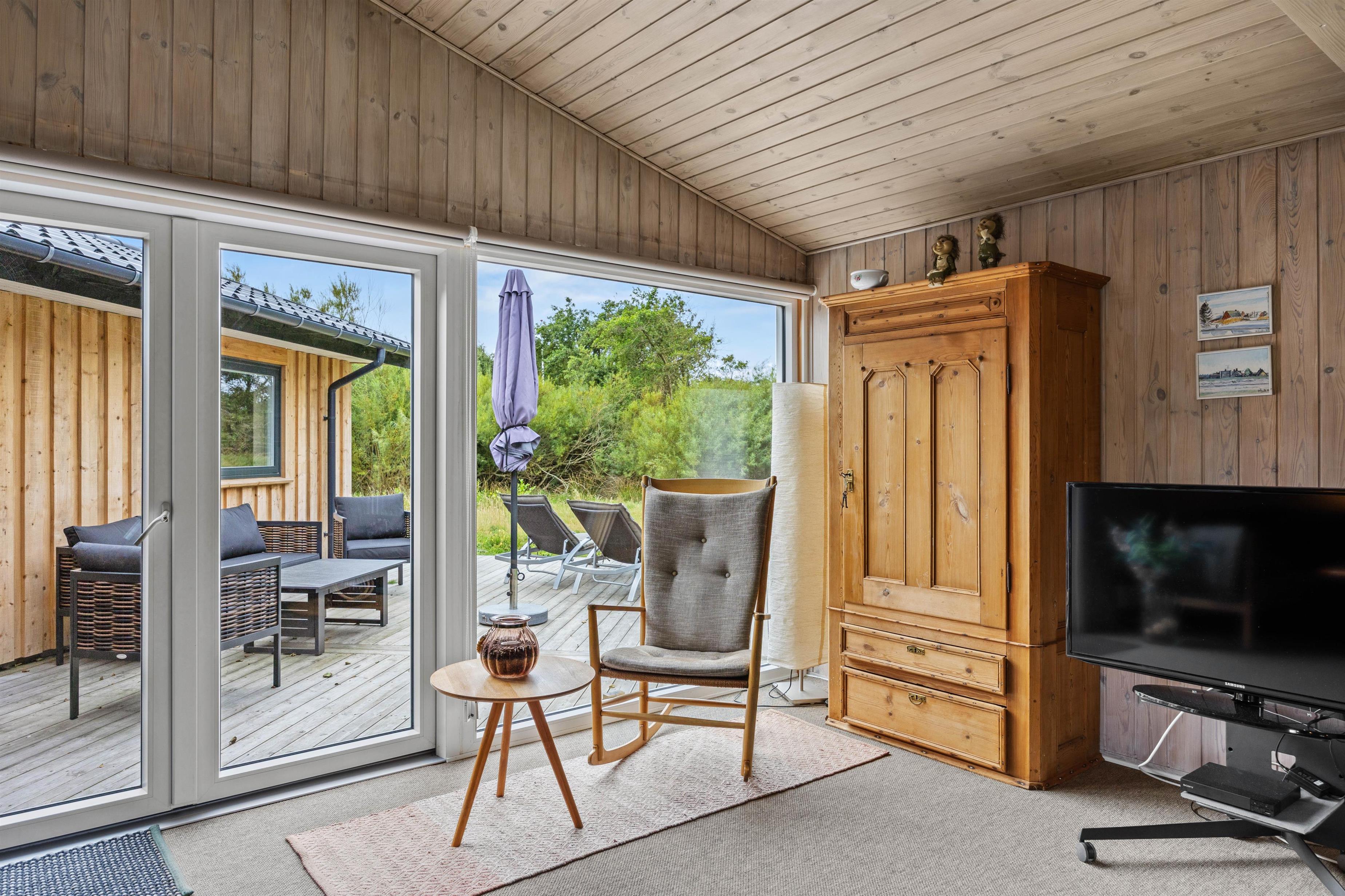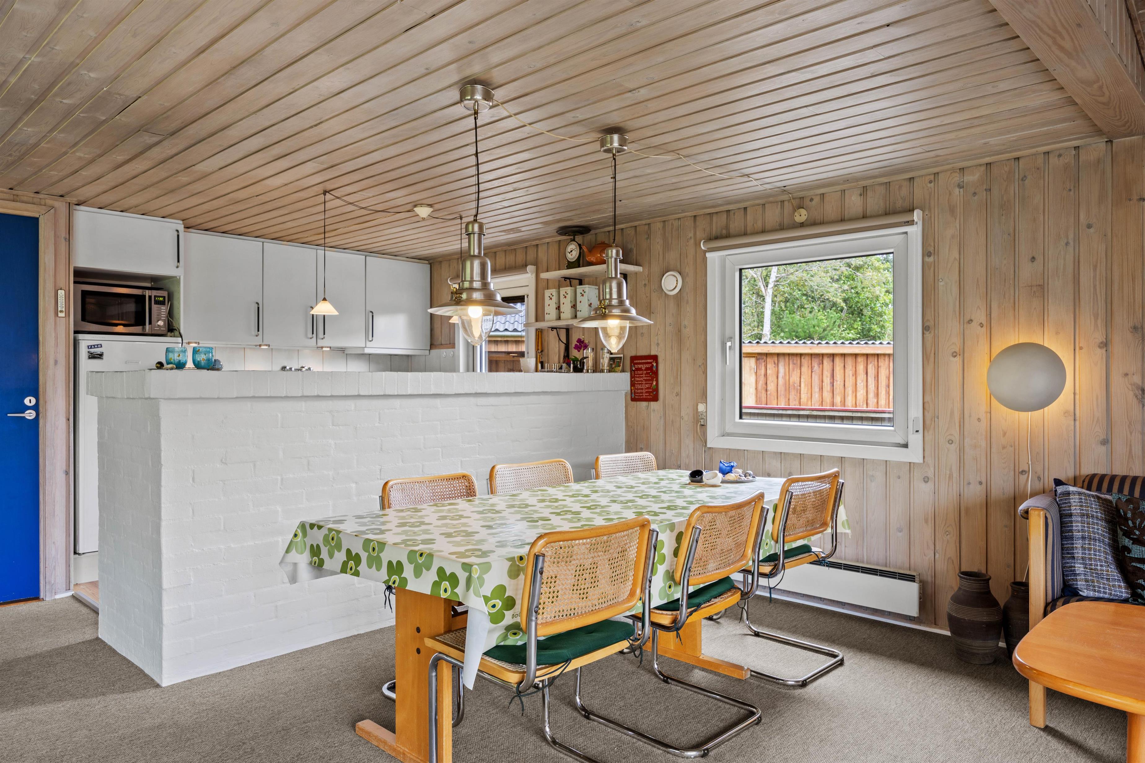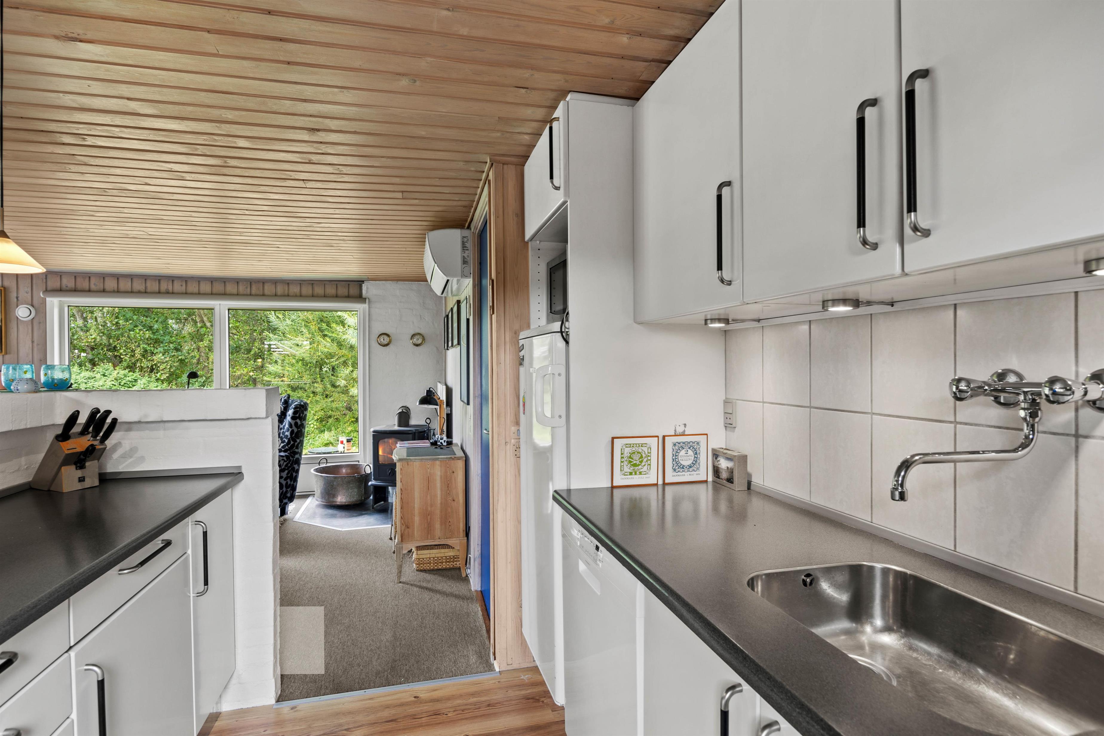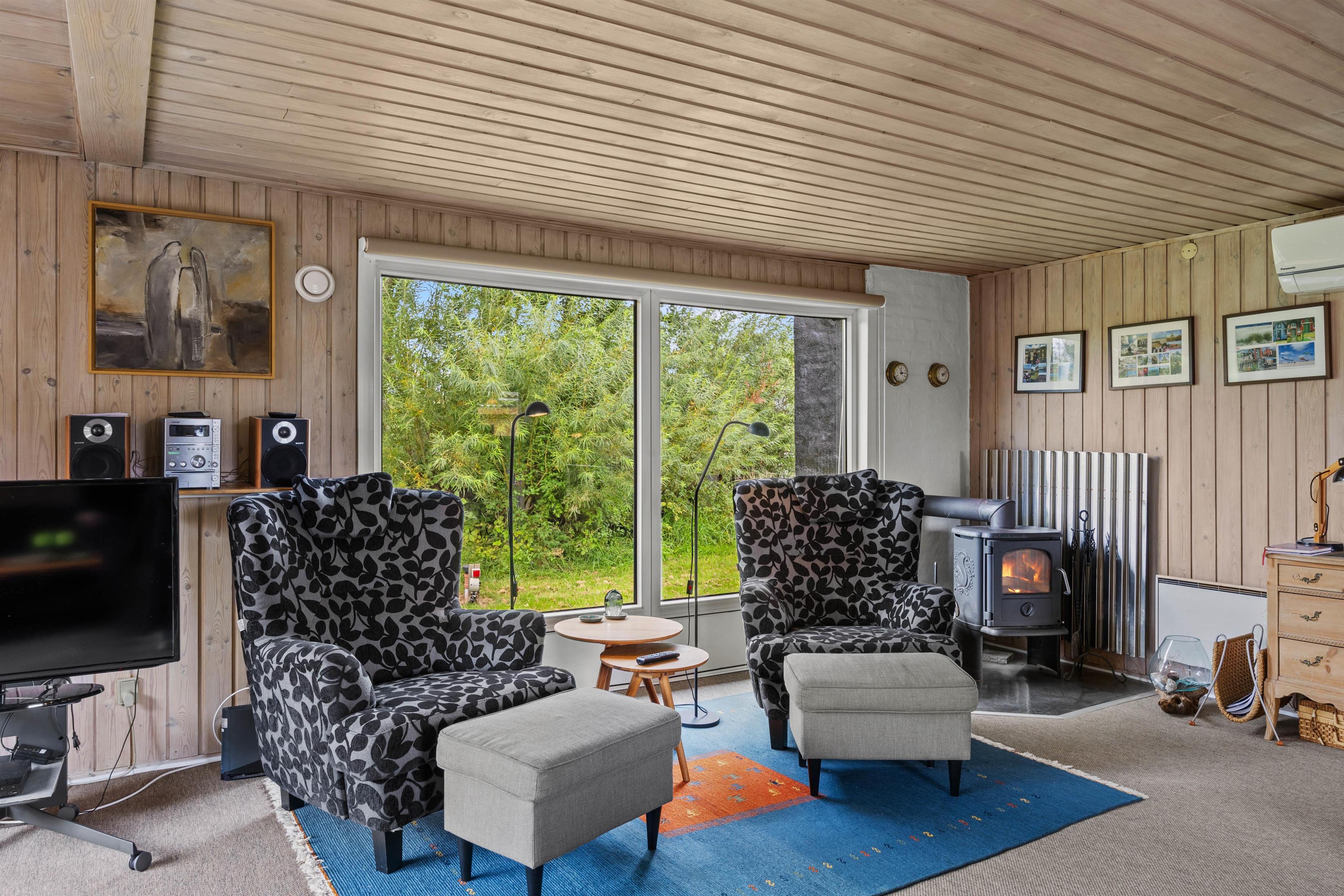 I alrummet har I desuden en brændeovn, der fuldender feriestemningen og samtidig spreder dejlig varme. Derudover har I en energivenlig varmepumpe, der sørger for, at I har behagelige temperaturer og et godt indeklima i feriehuset.