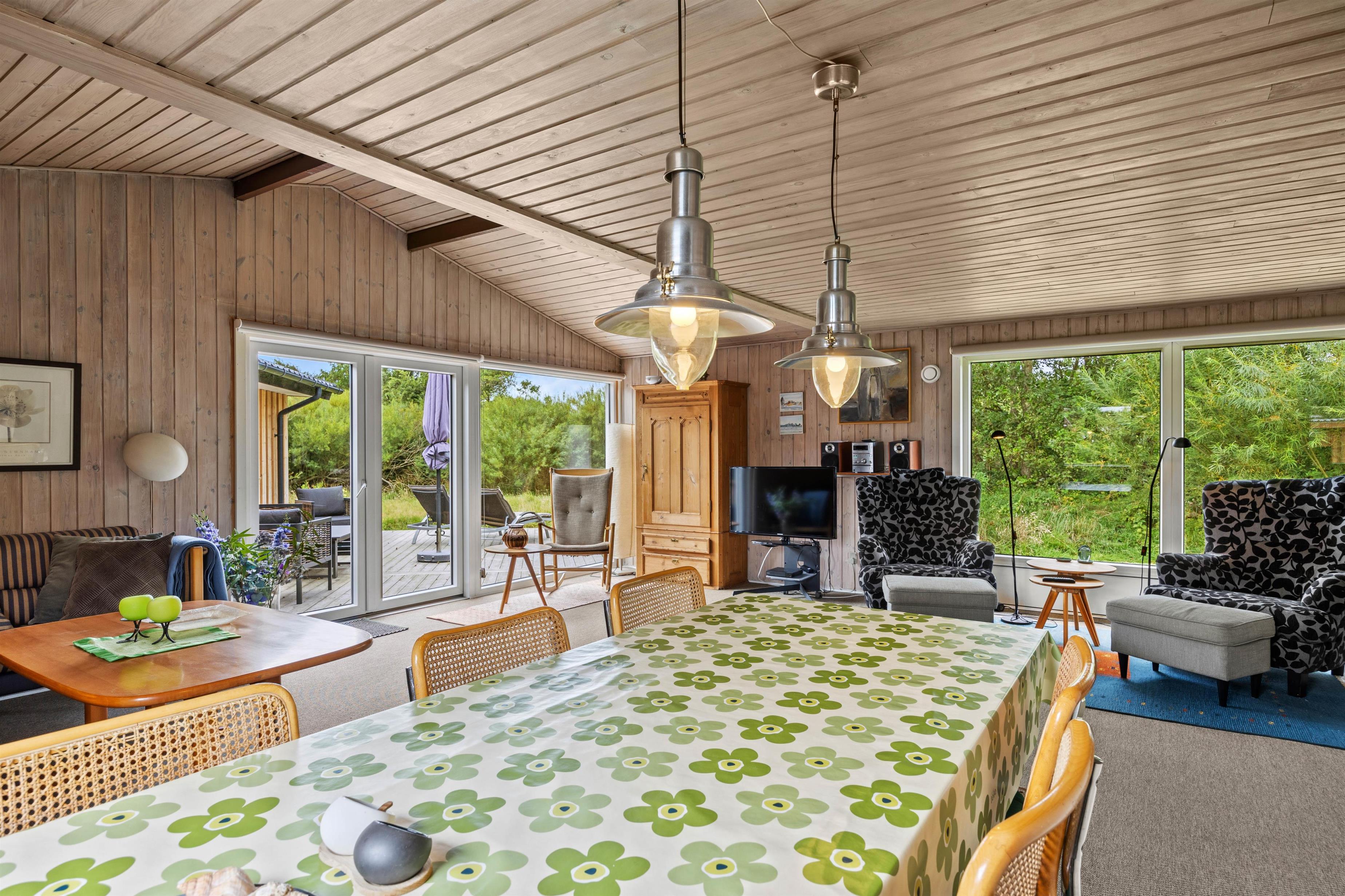 Også i feriehusets alrum kan I slappe af og nyde mange hyggelige feriestunder med hele ferieflokken. Alrummet forener køkken, spiseplads og stue, så her kan I sammen lave mad, spille spil og se film – og hvis I hver især laver noget i alrummet, kan I stadig nyde hinandens selskab.
