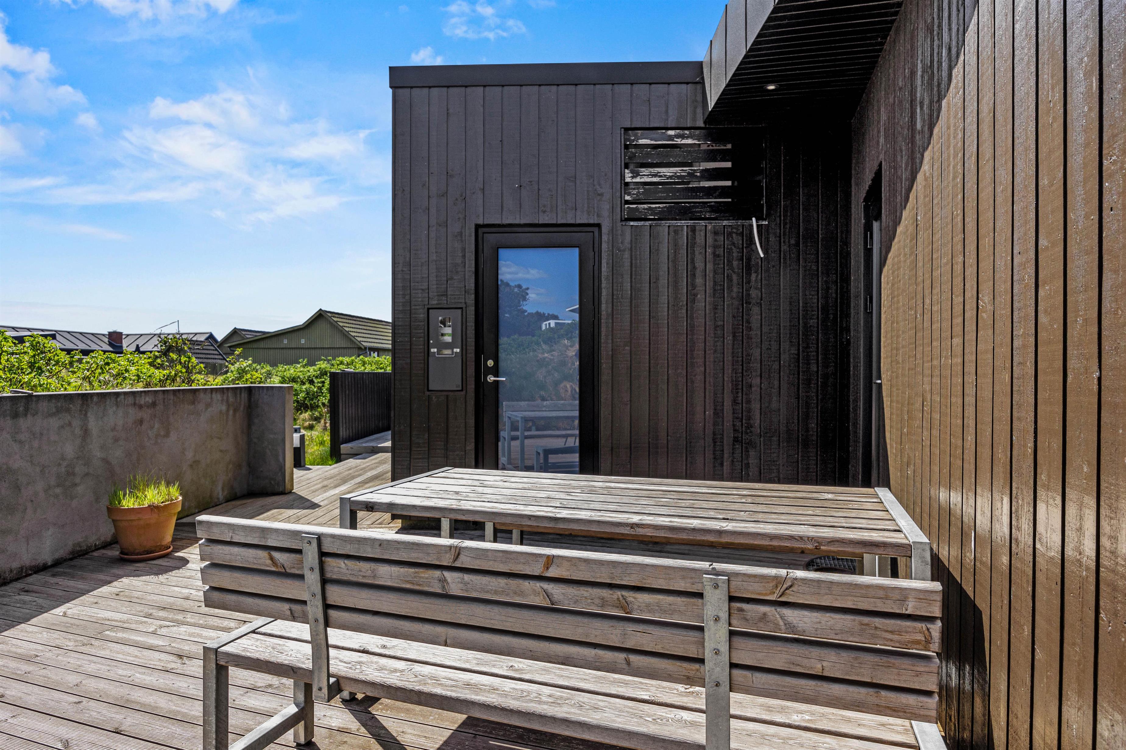 Derudover byder terrassen på en udebruser, hvor I kan blive frisket op efter solbadning i liggestole eller en god strandtur. Denne kan benyttes fra april til november
