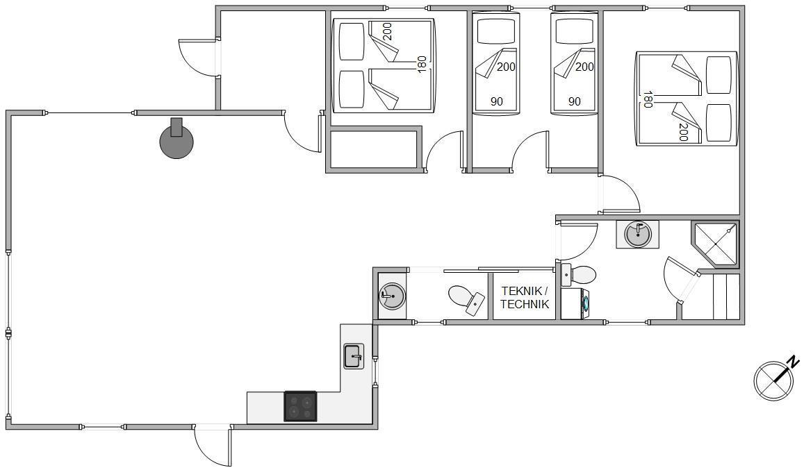 Sovepladserne er fordelagtigt fordelt på 2 soveværelser med dobbeltsenge og ét soveværelse med 2 enkeltsenge – ideelt til både familier og vennegrupper.