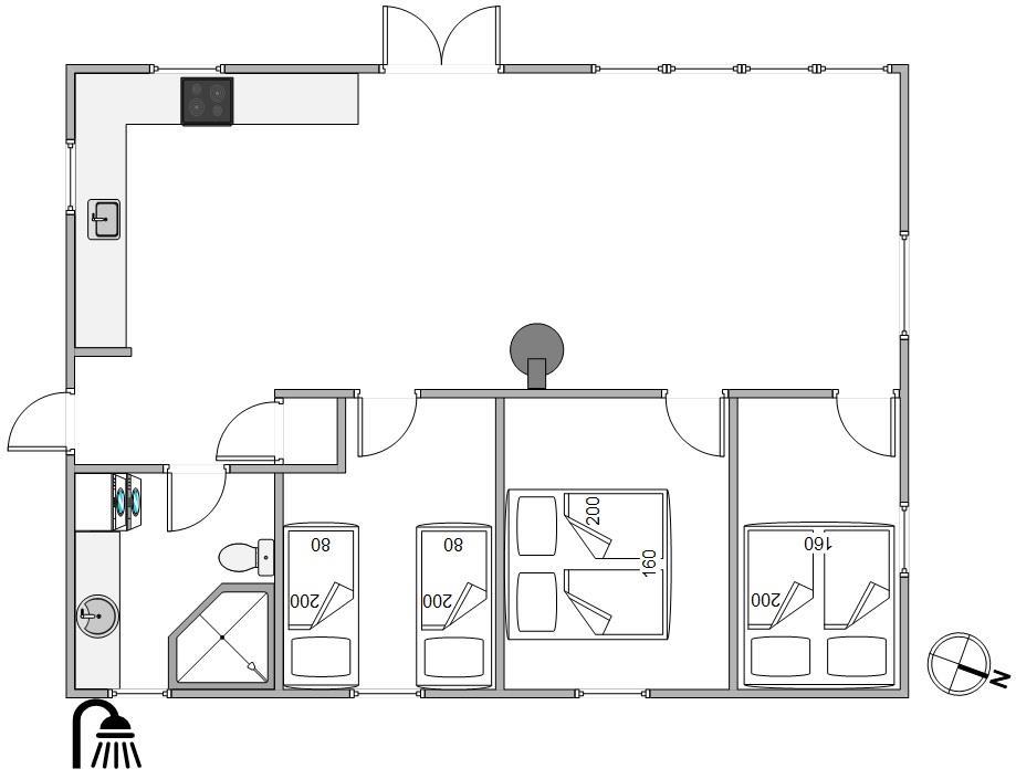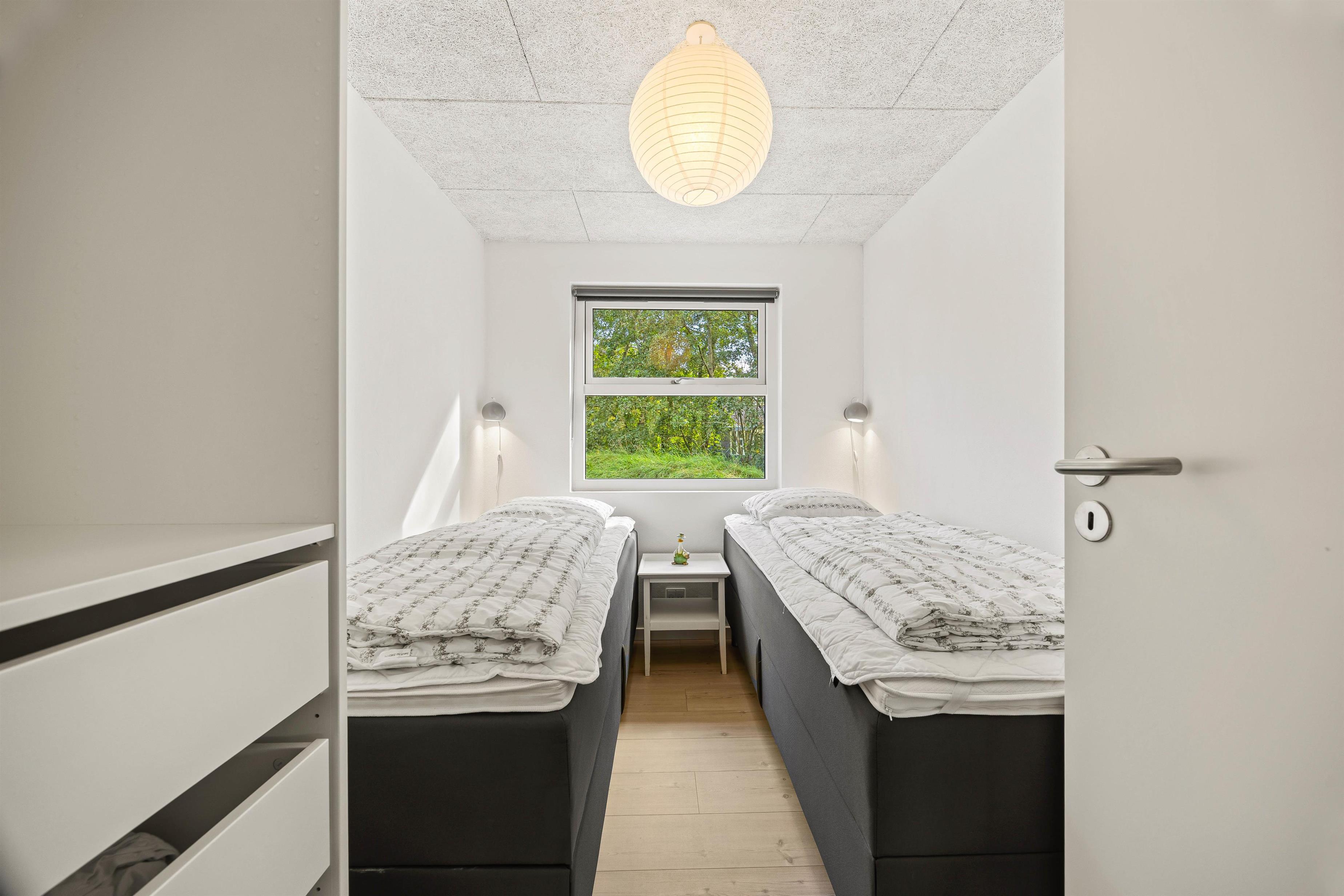 Sommerhuset på Larses Toft 38 er udstyret med 2 dobbeltsenge og 2 enkeltsenge, så I kan fordele sengepladserne efter individuelle behov. Badeværelset er velindrettet og har gulvvarme – og til de varme sommerdage er der en udebruser ved sommerhuset til en hurtig opfriskning, eller hvis I skal skylle sand af tæerne. Denne kan benyttes fra april til november.