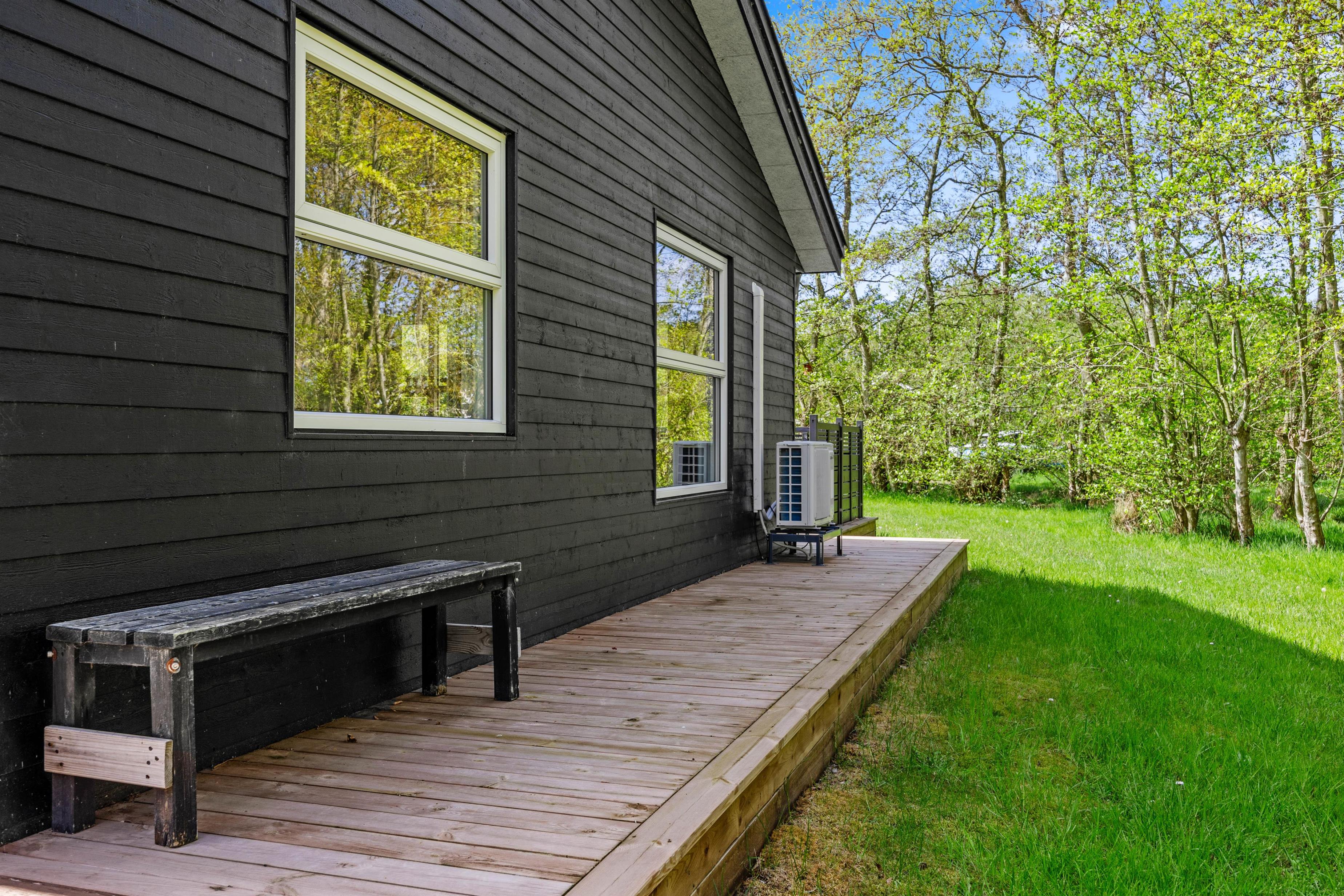 Brændeovnen sætter prikken over i’et i feriestemningen, og varmepumpen sikrer, at sommerhuset er varmt og hyggeligt, selv på kølige dage. Desuden er der installeret gulvvarme i badeværelset for ekstra komfort.