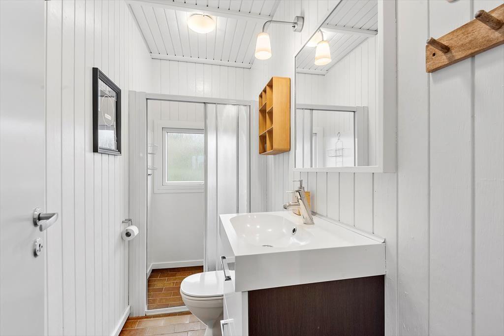 Sommerhuset ligger højt placeret på en klitgrund, så fra køkkenvinduet kan du se langt ud over Rindby, når du står og skræller kartofler eller laver kaffe. Du kan sågar slå dig ned ved køkkenøen og nyde kaffen her – hvis ikke det er tid til at læne sig tilbage i stuens sofaafdeling nær den knitrende brændeovn. Under alle omstændigheder er den hyggelige stue et skønt sted at slappe af, og efter seneste modernisering fremstår husets tre soveværelser samt bryggerset og badeværelset lige så pæne og velindrettede. Alt i alt får du og dine kære altså rig mulighed for at koble helt af og komme hinanden ved.