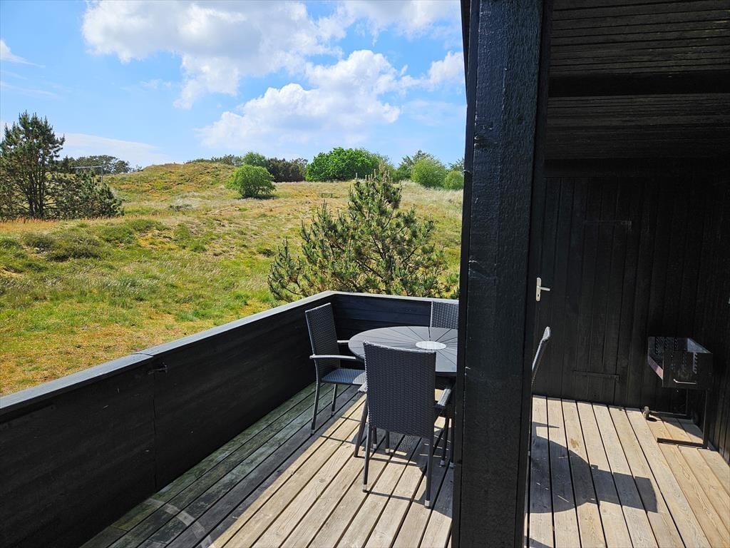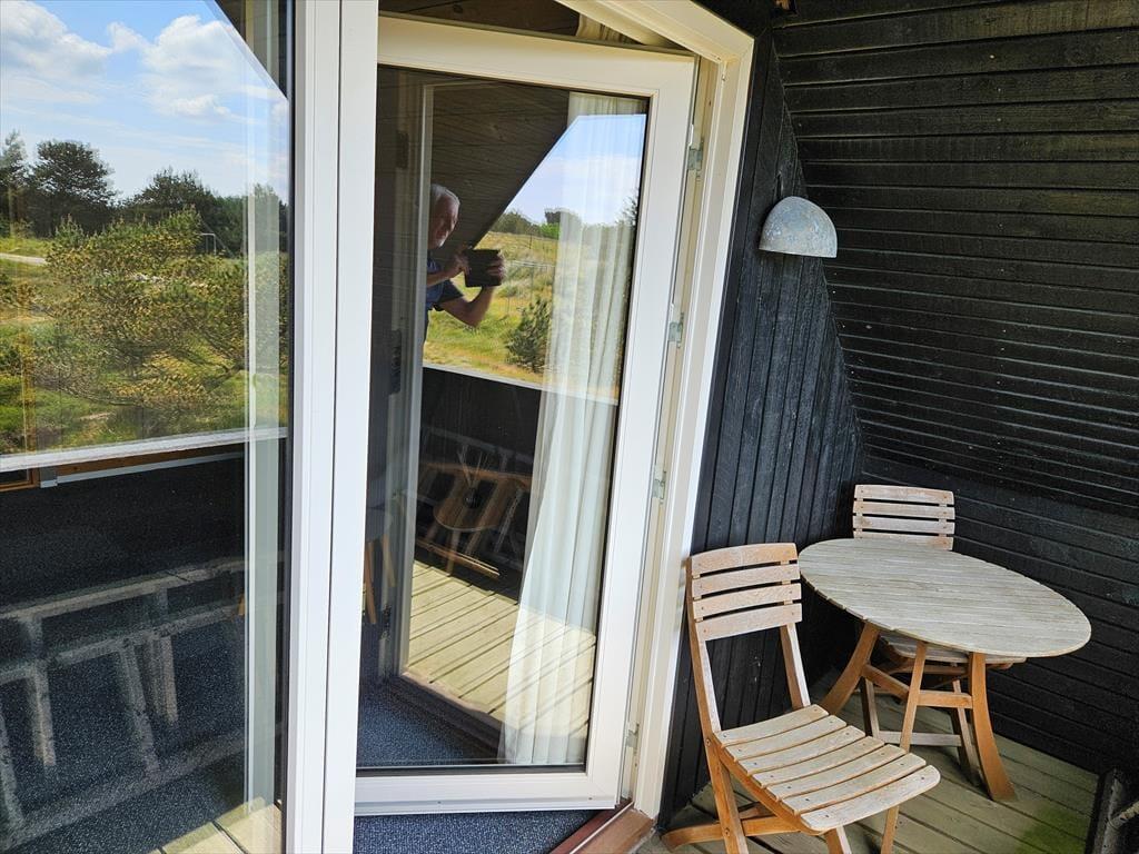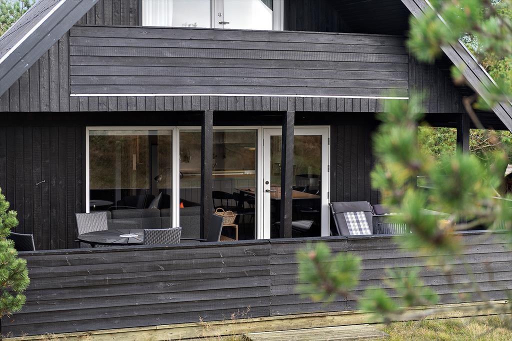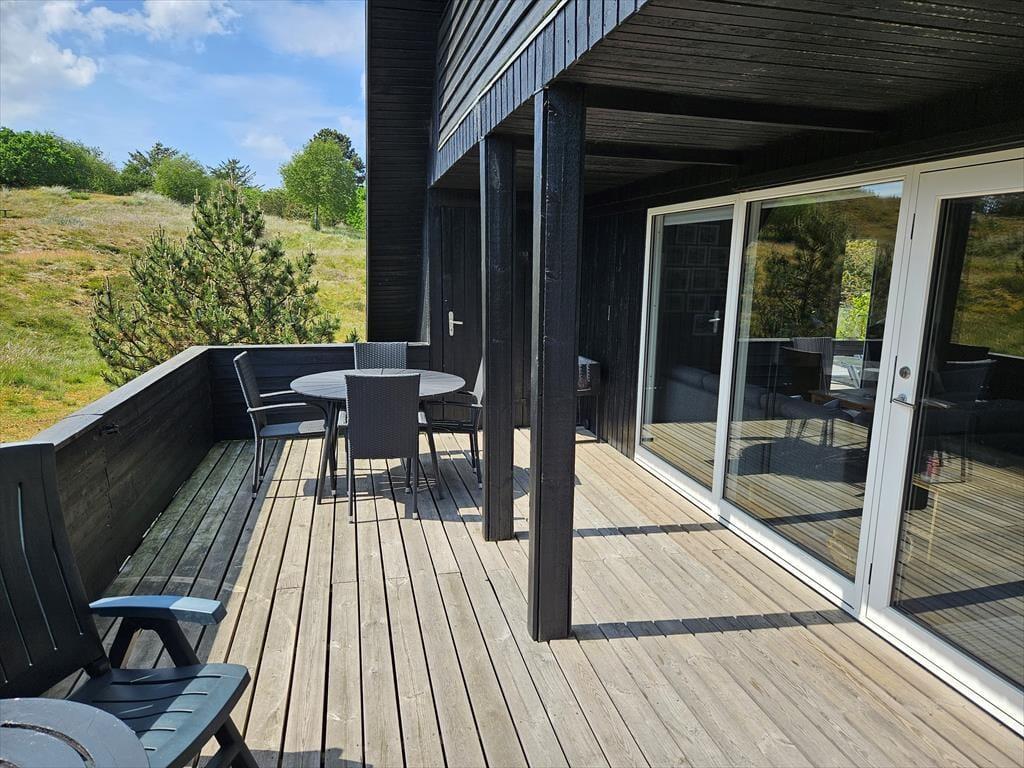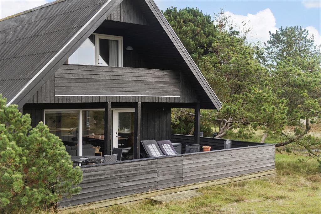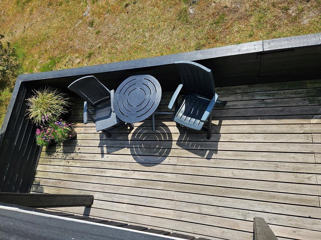 Når solen lokker dig ud på terrassen, har du flere skønne opholdspladser at vælge imellem. En delvist overdækket og helt aflukket terrasse ligger i forlængelse af stuen, og der er derudover helt åbne terrasser på begge sider af huset – og fra førstesalens soveværelse har du sågar adgang til en overdækket altan, så du kan først tage bestik af vindretningen, inden du tager en beslutning og slår dig ned. Sommerhuset ligger på en stor naturgrund, og de smukke omgivelser er selvfølgelig med til at pynte endnu mere på det tilbagelænede driverliv og på de friskgrillede aftensmåltider under åben himmel.