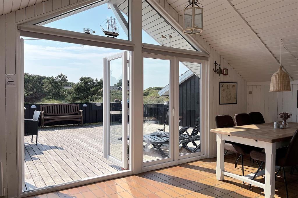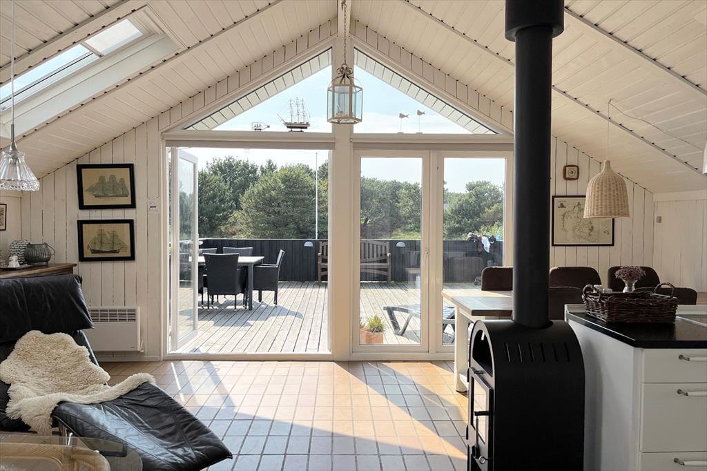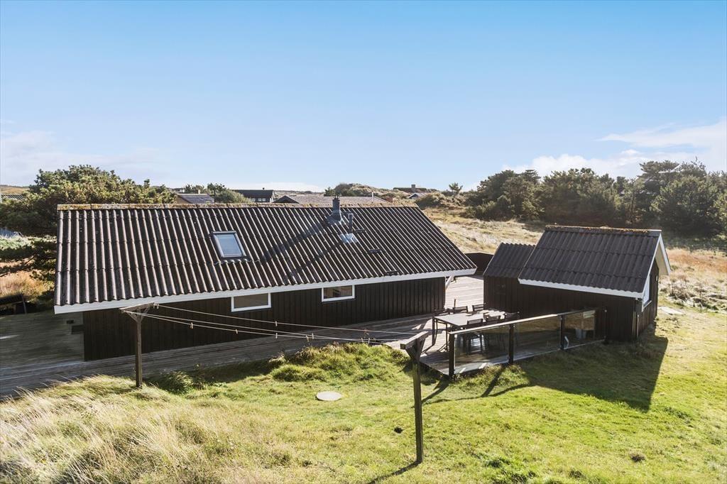 Sommerhuset ligger for enden af en lukket sidevej til Bekkasinvej og derudover på en stor naturgrund, så du har fred og ro omkring dig, mens du nyder udelivet. Der er flere terrasseområder at vælge imellem, når du vil slappe af i solen eller fordybe dig i en god bog i skyggen, og når sommeren er på sit højeste, er det selvfølgelig også oplagt at spise alle feriens måltider herude i det fri. Om aftenen kan du og familien lade duften af grillmad fylde luften, mens solen gør sig klar til at gå ned – og når måltidet er veloverstået, og hvis solnedgangen ser ud til at blive særligt flot, kan du smutte op på den nærmeste klittop eller gå ned til stranden, der venter få hundrede meter væk.