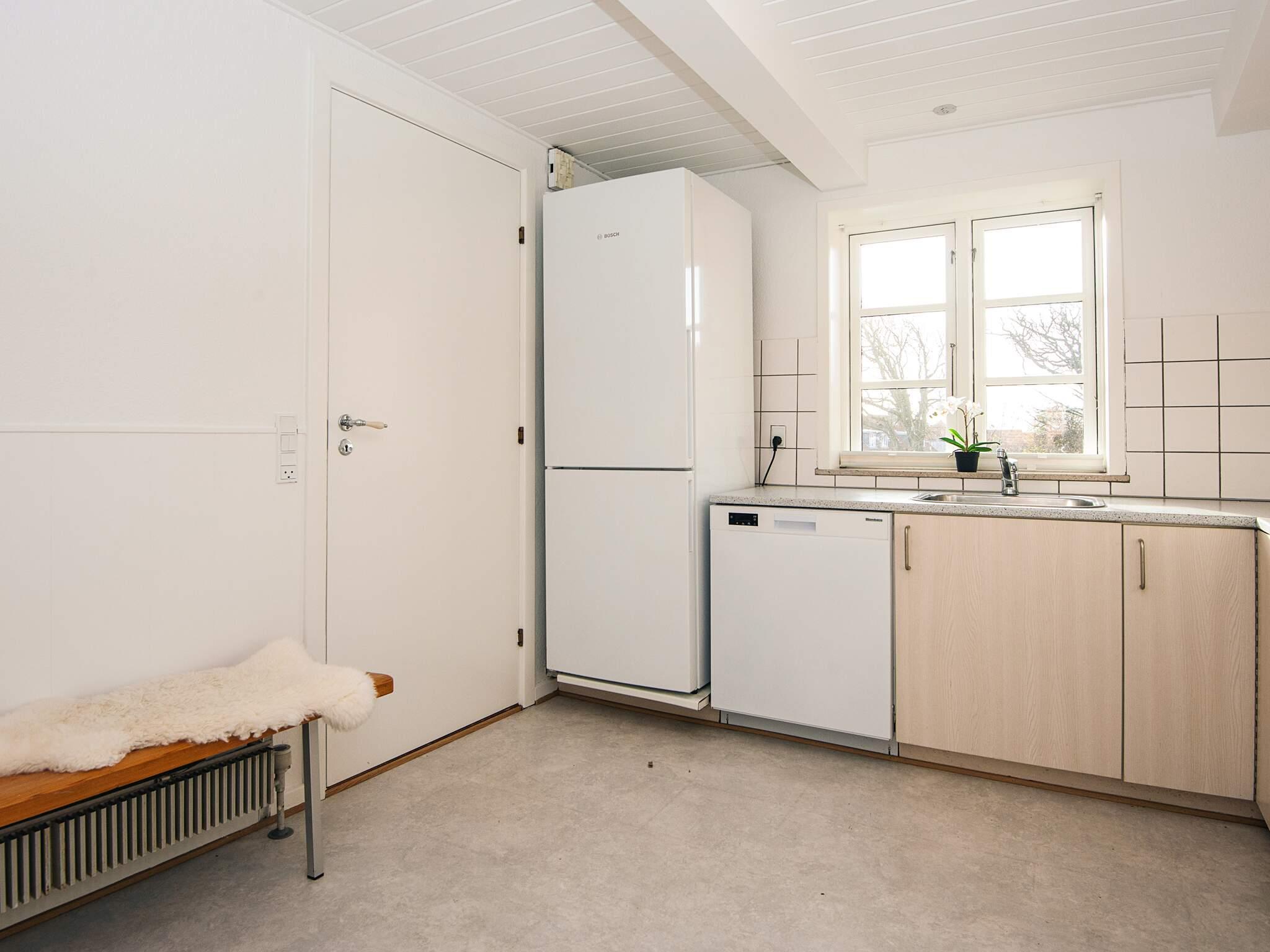 Køkken: El-komfur, køle-frys, opvaskemask.