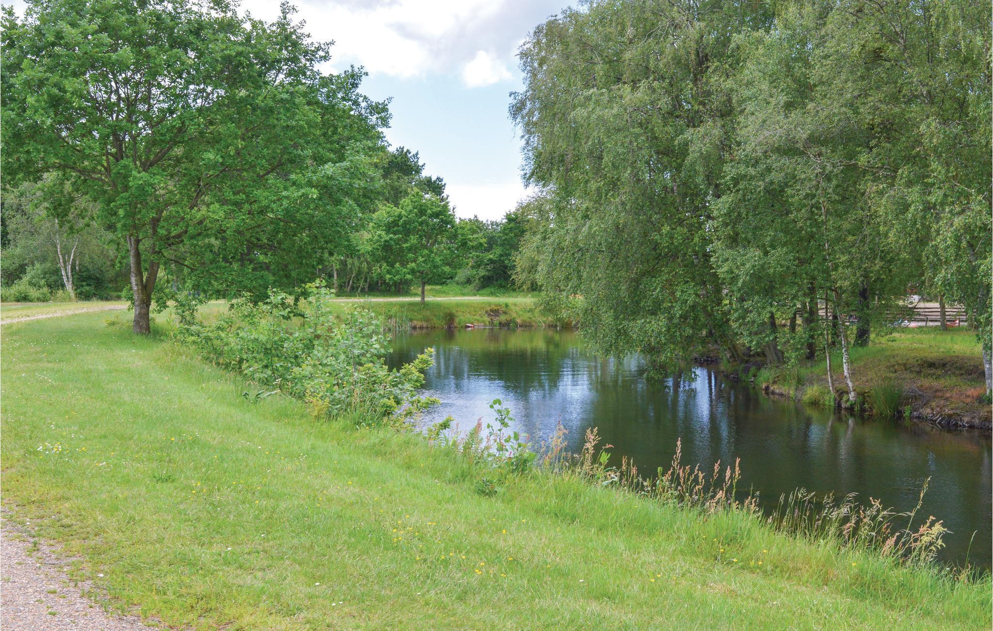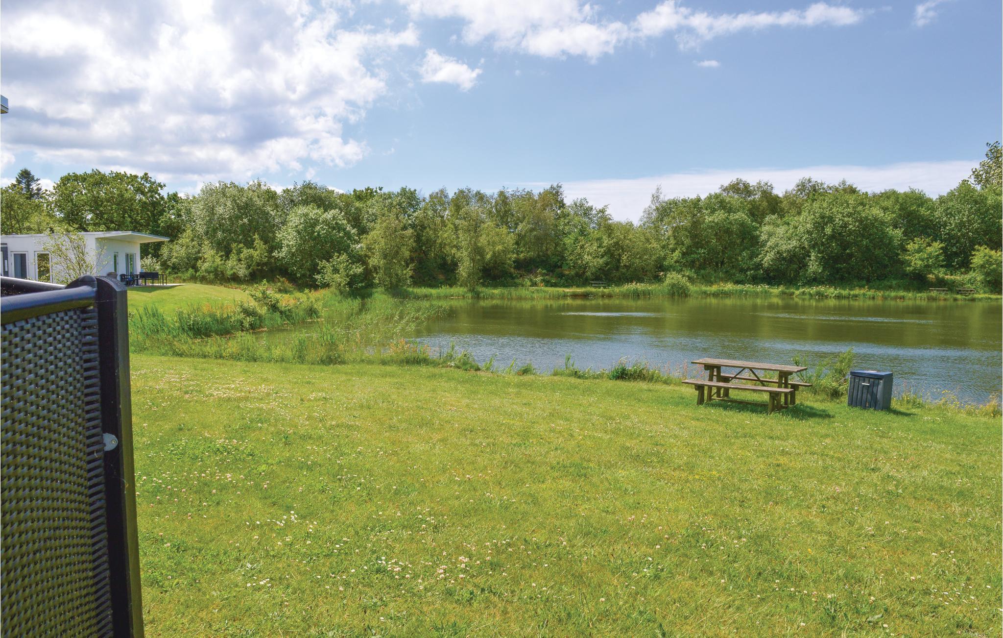 Dette hyggelige sommerhus ligger i Naturpark Vest i Hee og har direkte udsigt over en smuk fiskesø, der ligger lige ude foran terrassen.