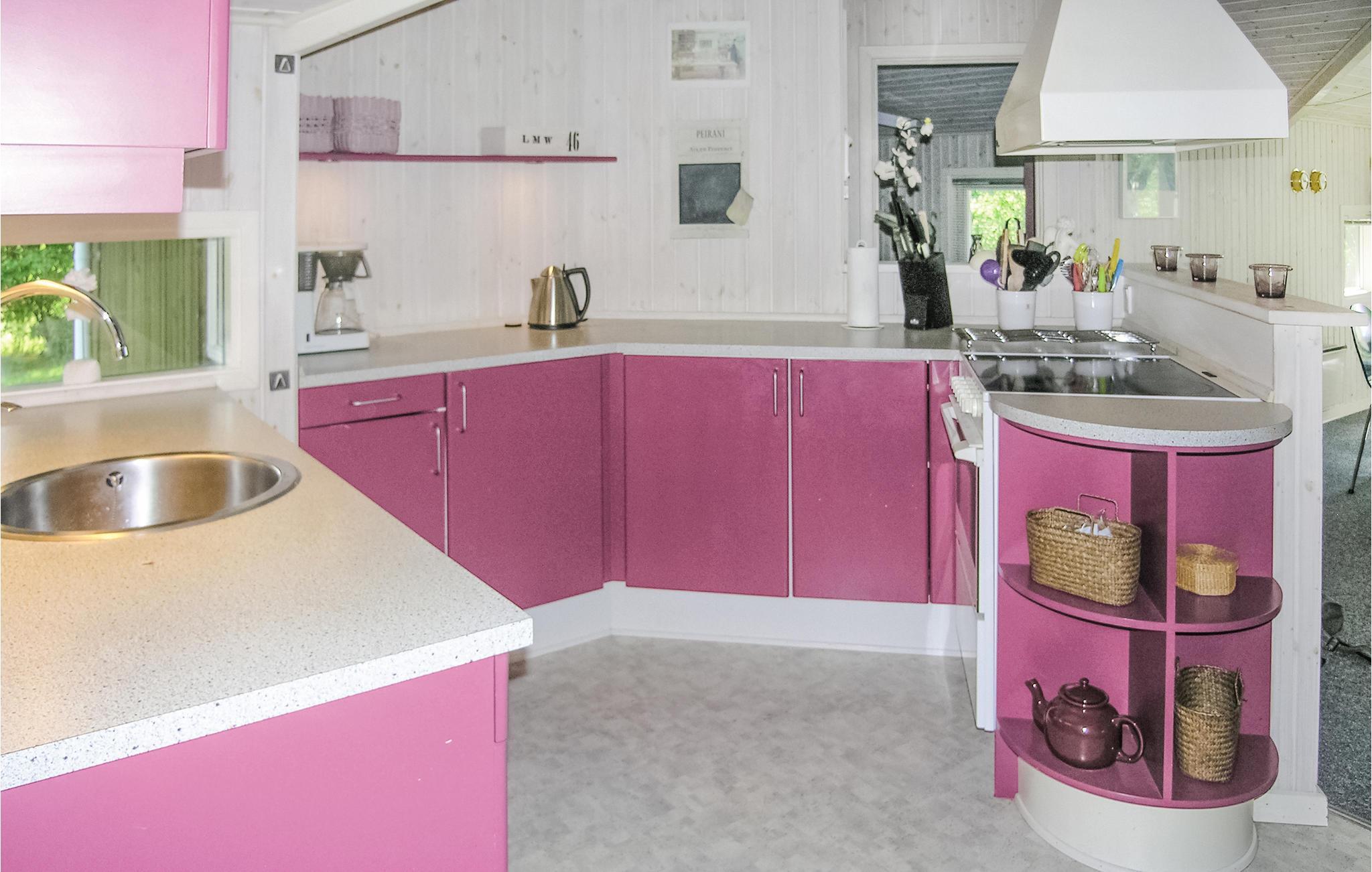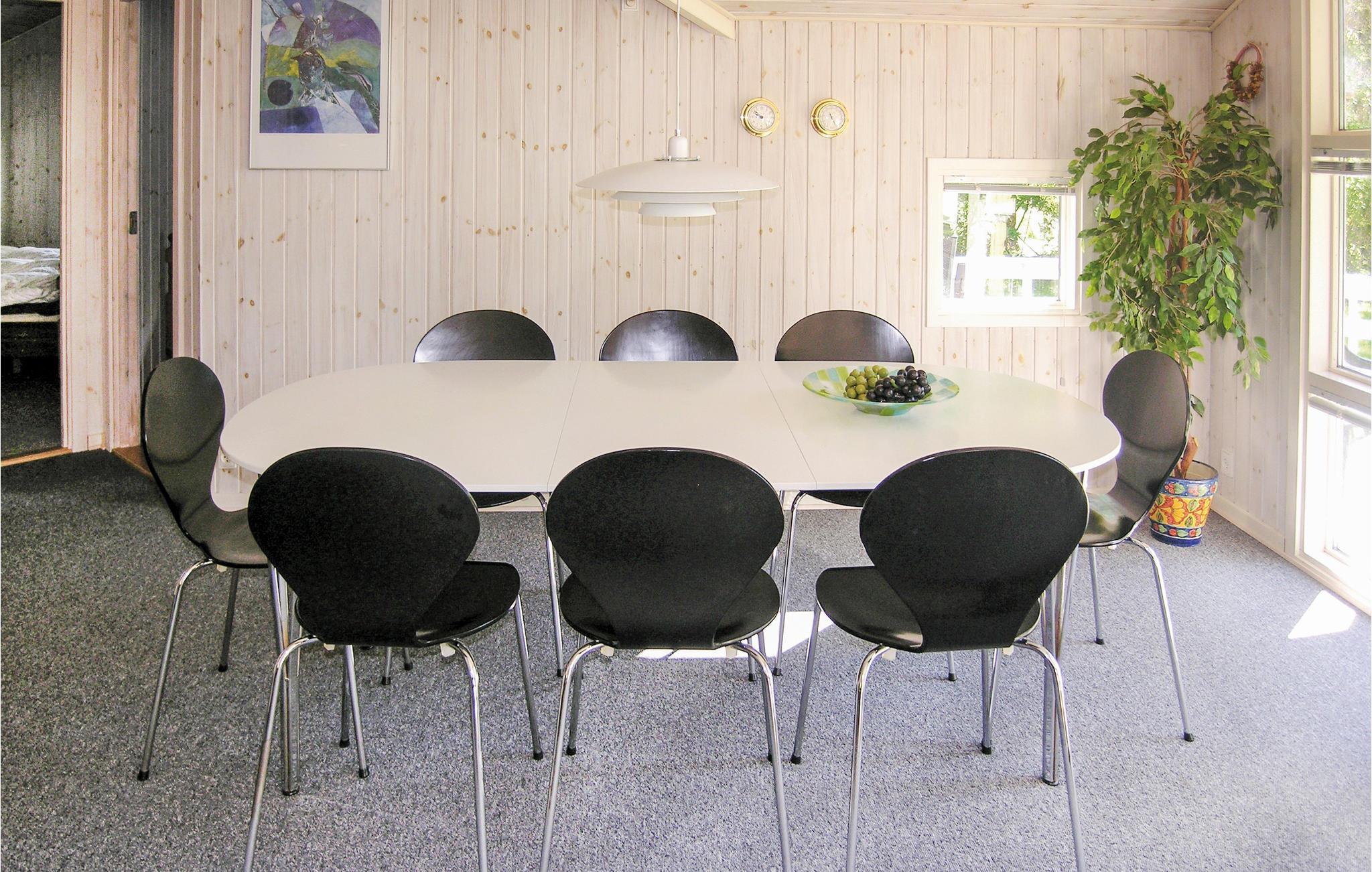 Dette feriehus opført i træ ligger i et af øens største sommerhusområder i en smuk plantage, hvor man kan få mange dejlige naturoplevelser og hvor der er adgang til den ca. 10 km lange sandstrand som tiltrækker både børnefamilier og naturelskere. Følger man den lille sti som går helt ud til *Ristinge Hale, kan man opleve den flotte udsigt over havet mod Marstal på Ærø - her ses også de små holme som findes mellem Langeland og Ærø. Især fugleinteresserede kan få sig nogle fantastiske oplevelser, hvis man kører sydpå fra Ristinge mod Tryggelev Nor. Sammen med Nørreballe Nor og udgør disse to nor et af Danmarks naturreservater, hvor man i de senere år har observeret ynglende havørene - nogle som ikke er blevet set i Danmark i en periode på over 100 år. 2 af husets i alt 8 sovepladser findes i en alkove i et hjørne af stuen.